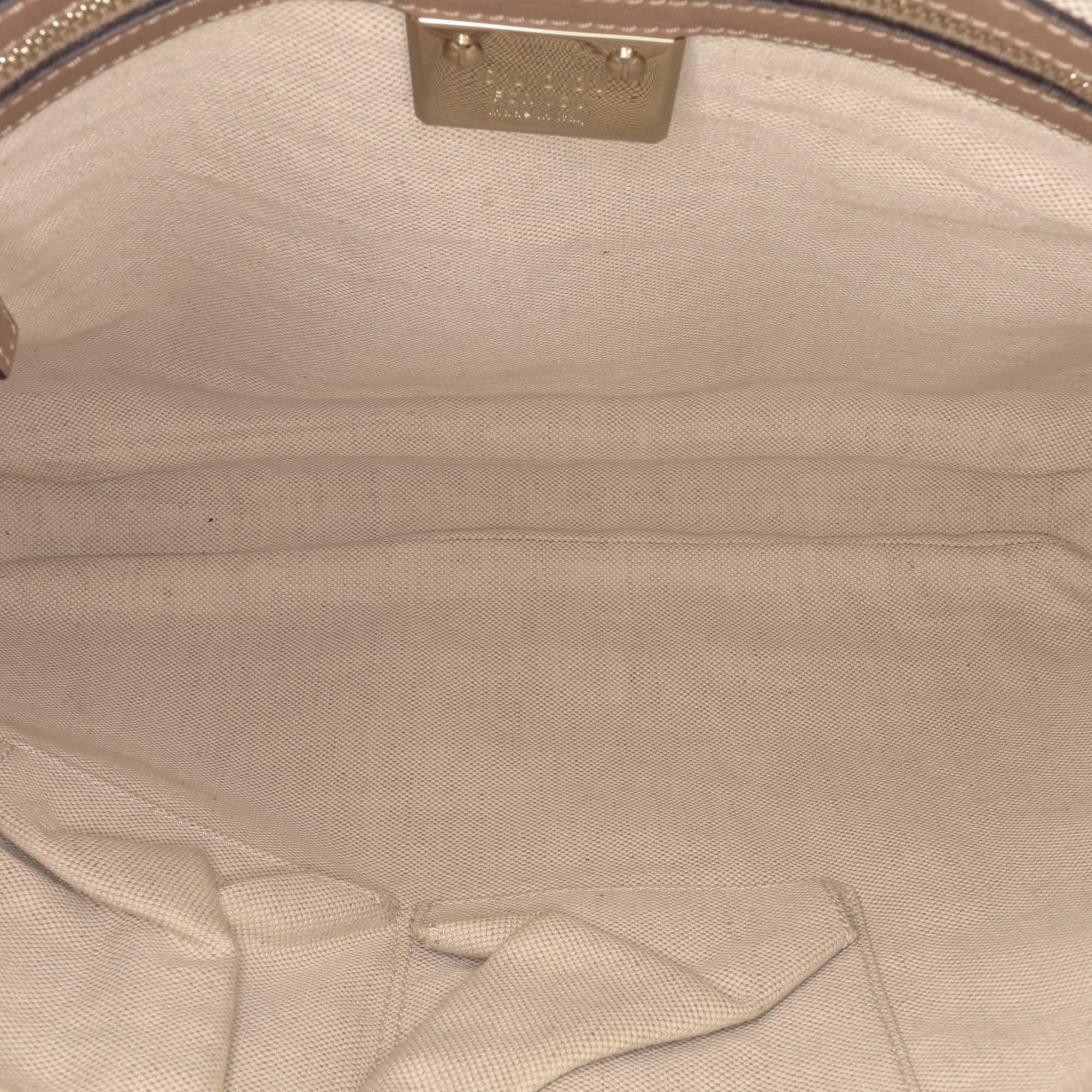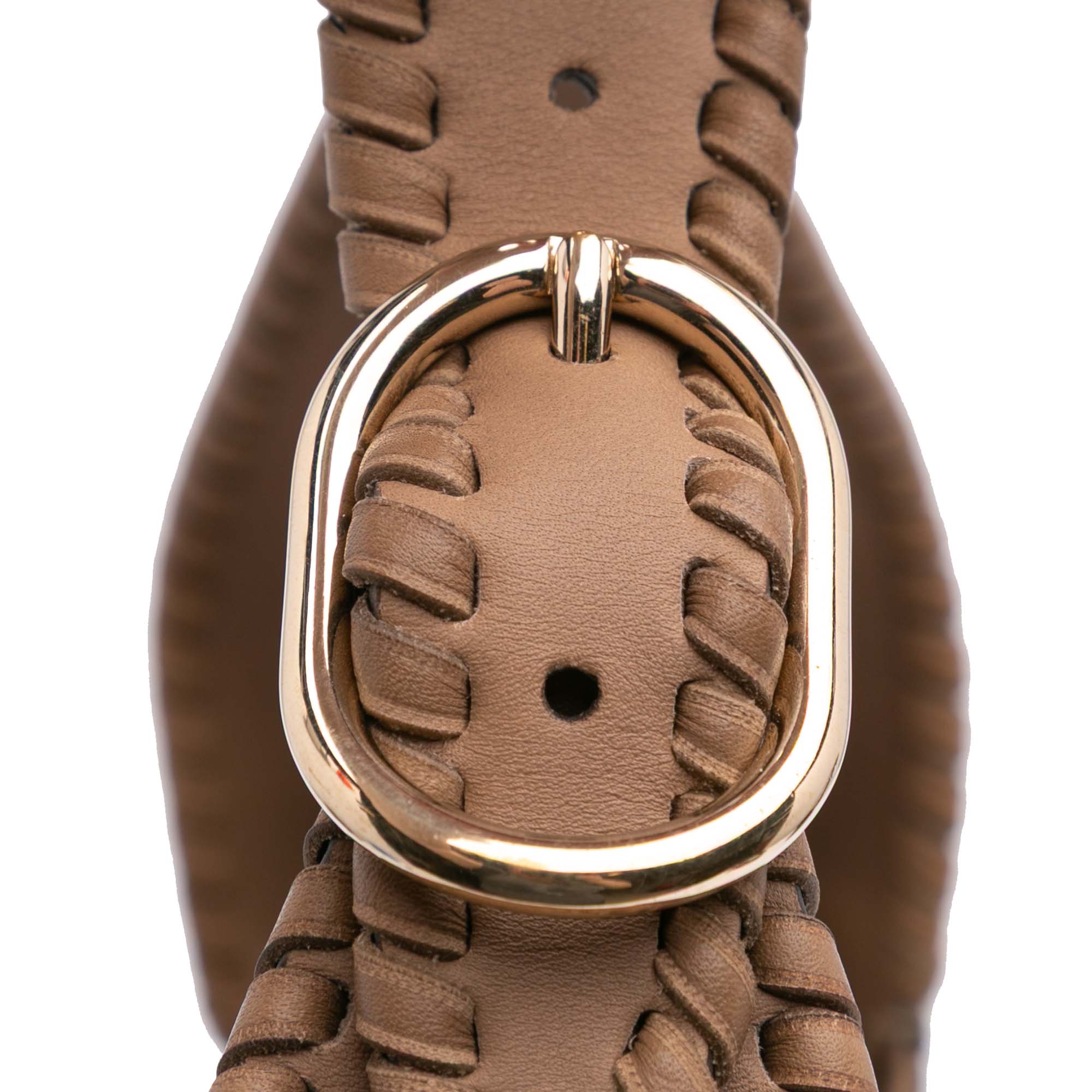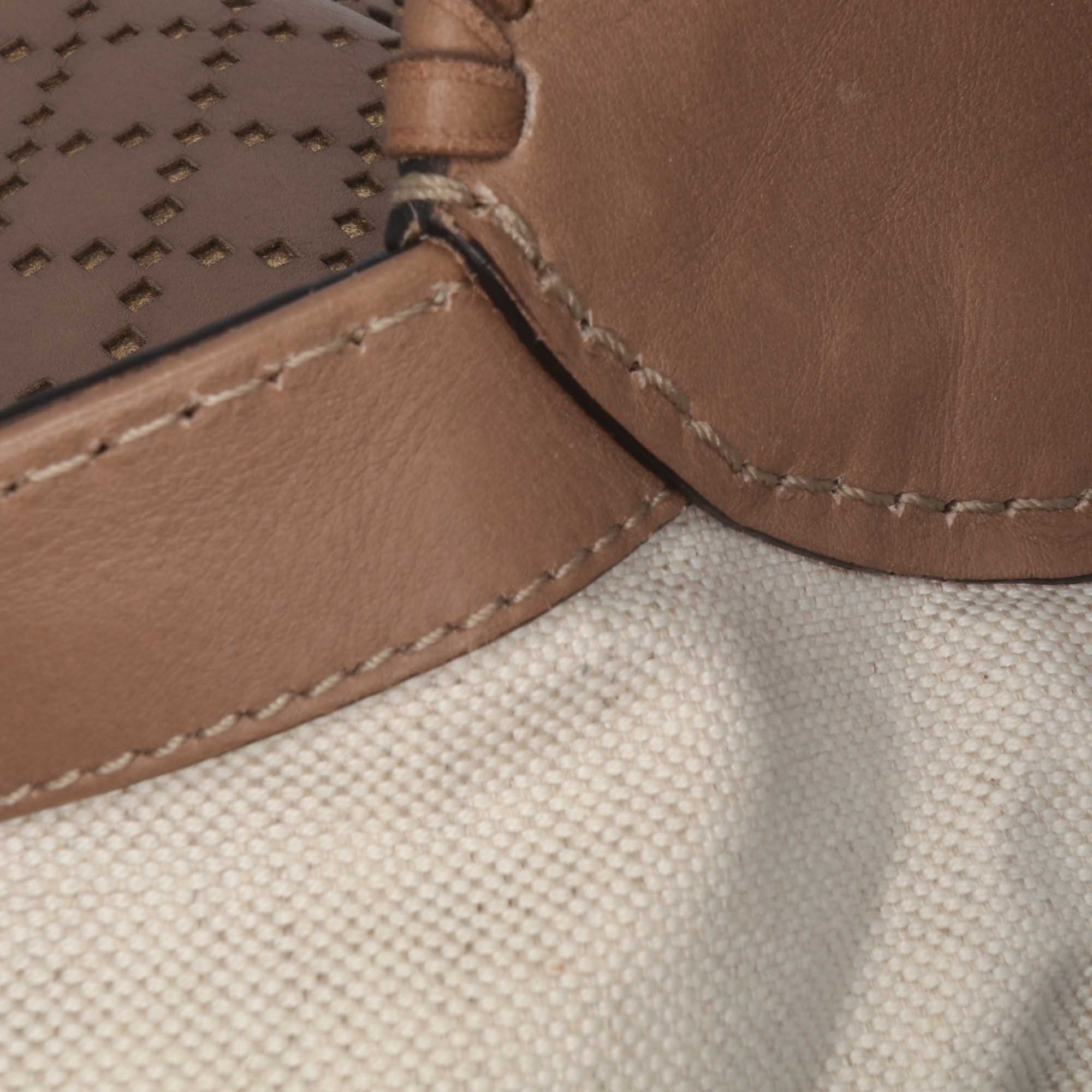 The New Jackie satchel features a perforated calf leather body with leather trim, bamboo and tassel details, a flat leather strap, a detachable flat leather strap, an open top with a front piston lock closure, and interior zip and slip pockets. Retail Price: 1340.00