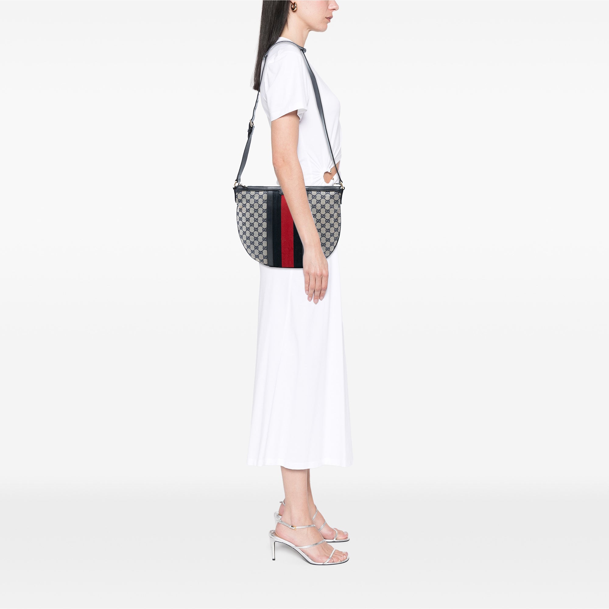 Gucci Medium GG Canvas Web Half Moon Crossbody