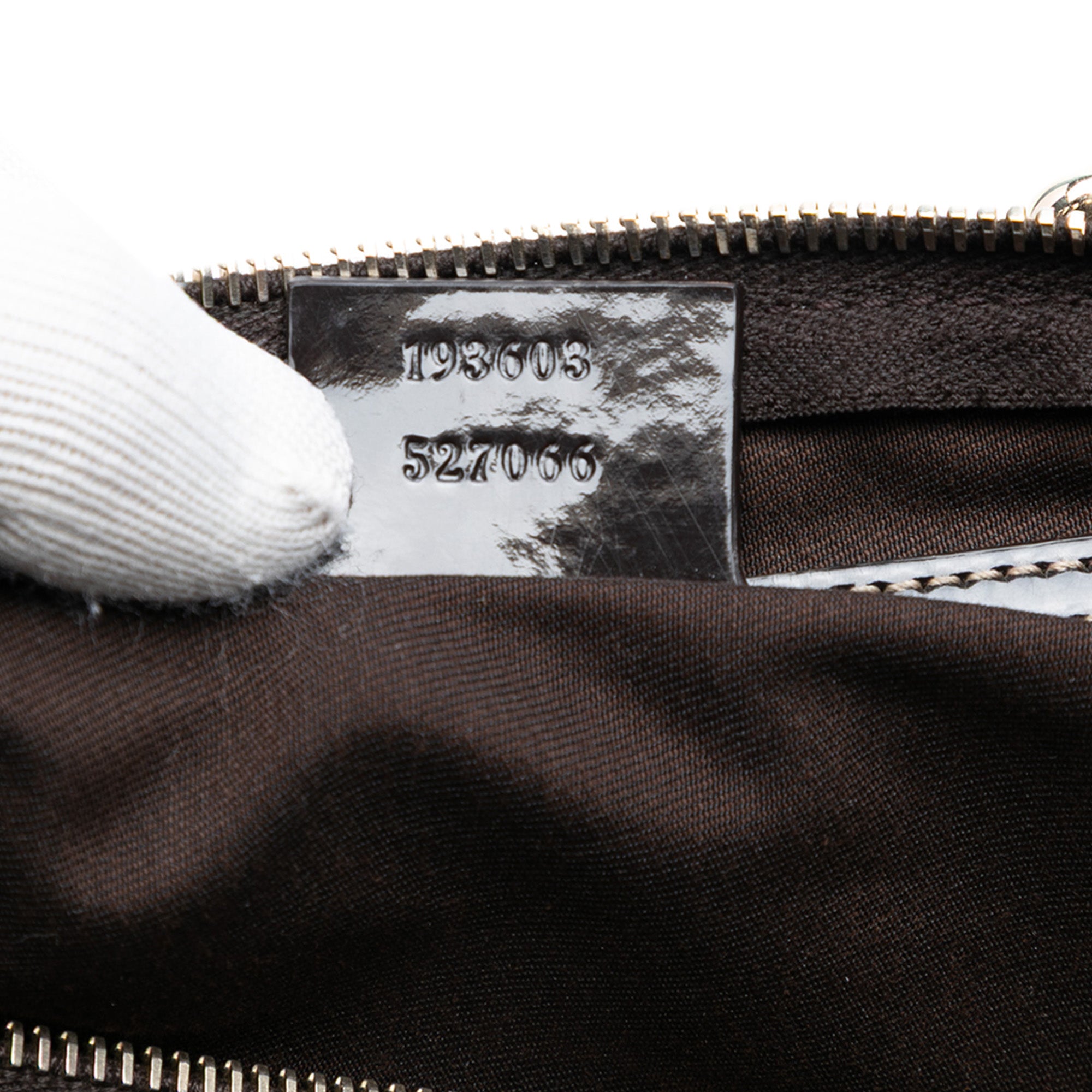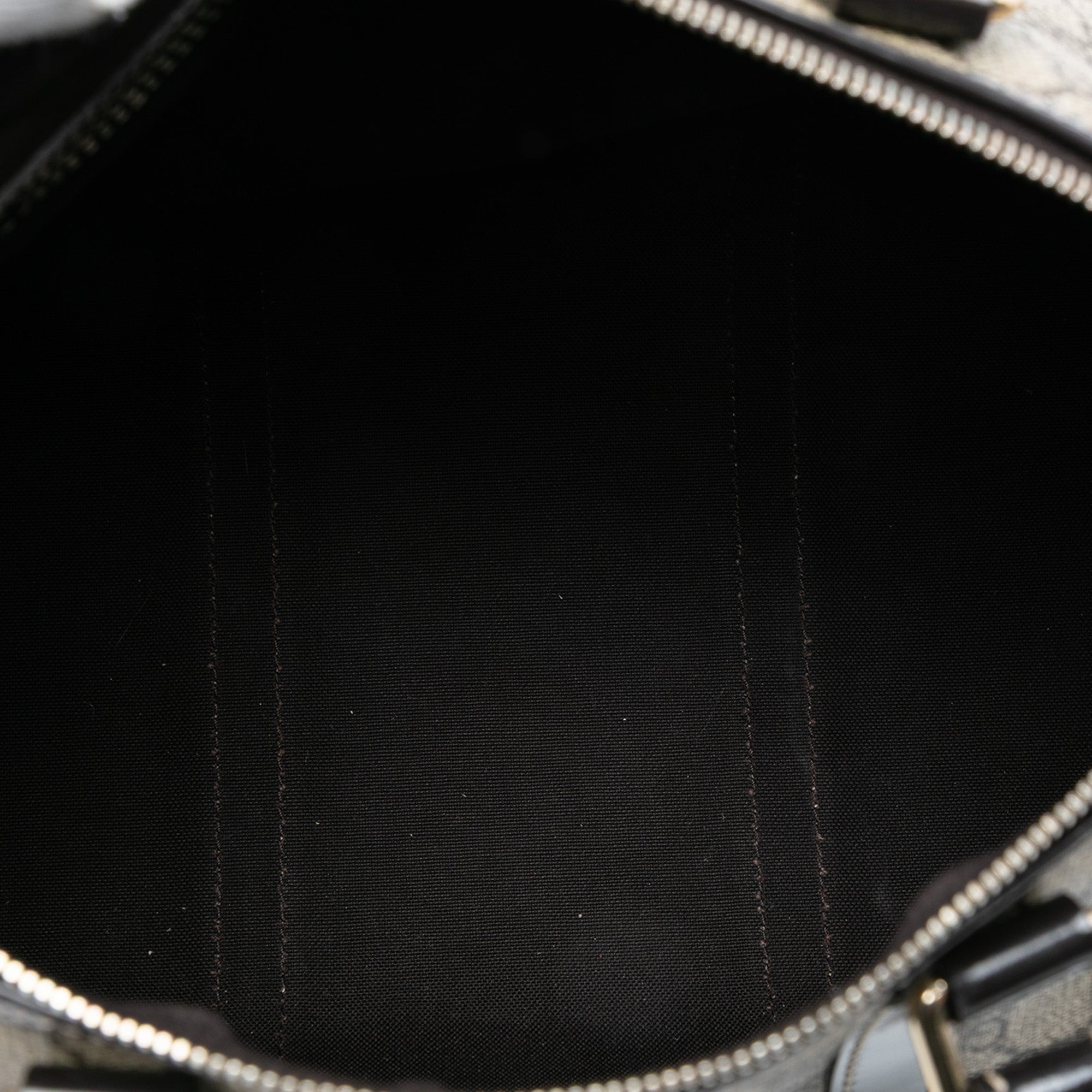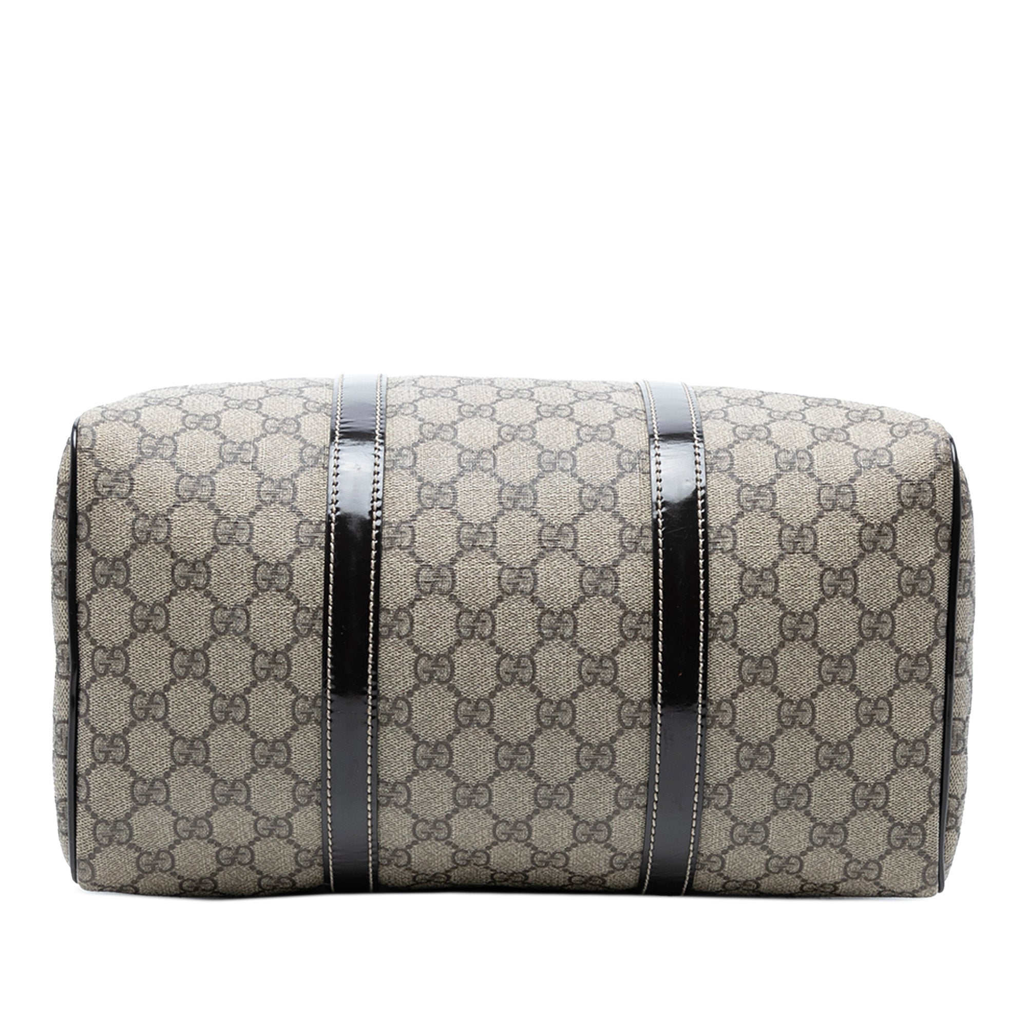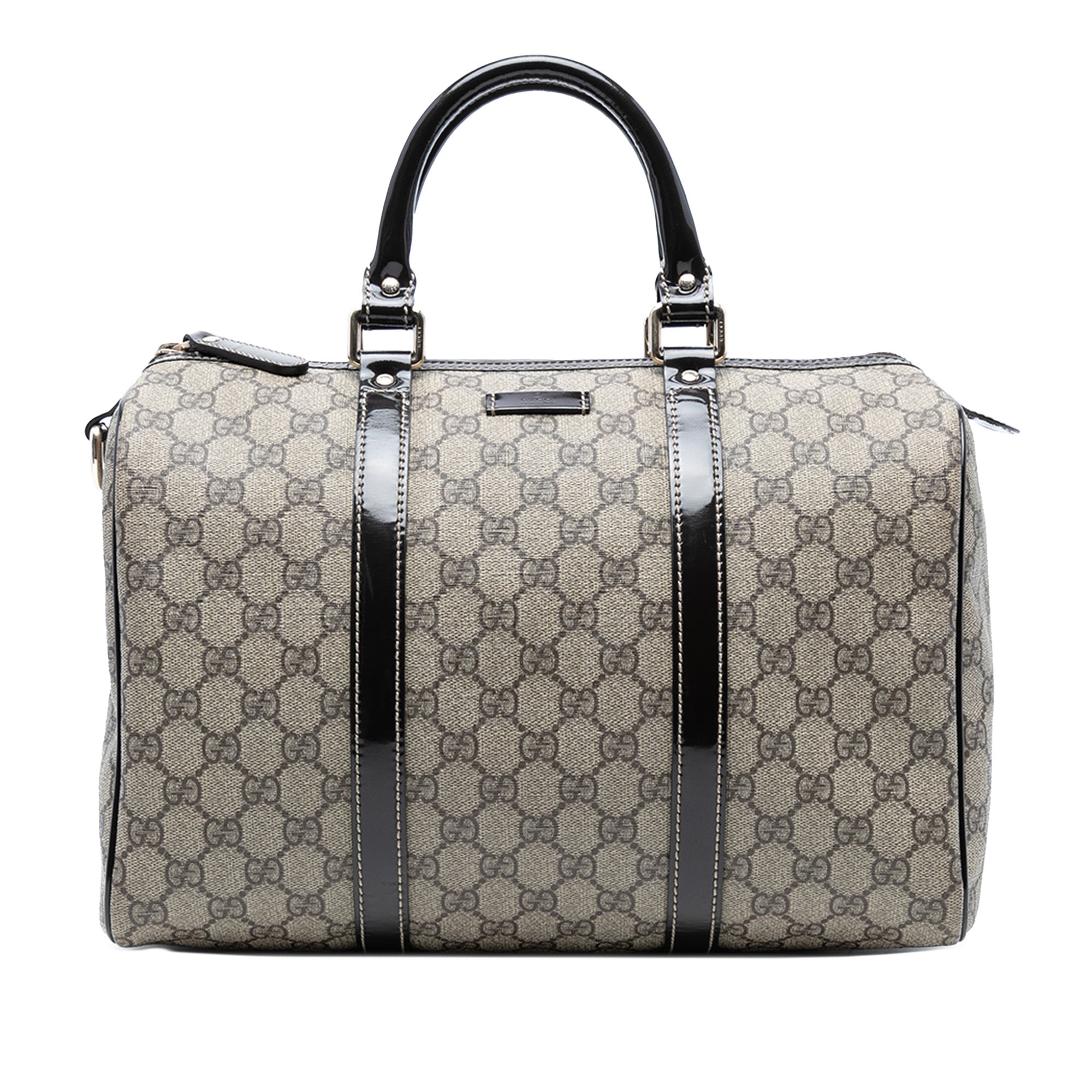 This boston features a coated canvas body with leather trim, rolled leather handles, a top zip closure, and an interior slip pocket. Inclusion: Dust bag. Retail Price: 1050.00