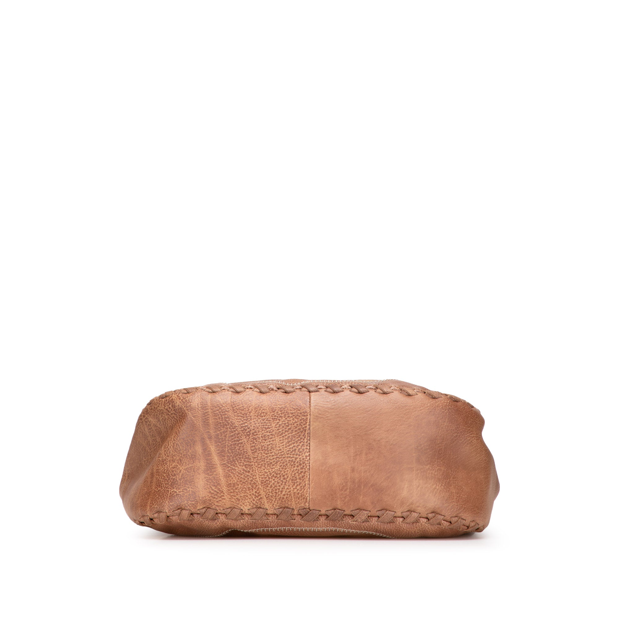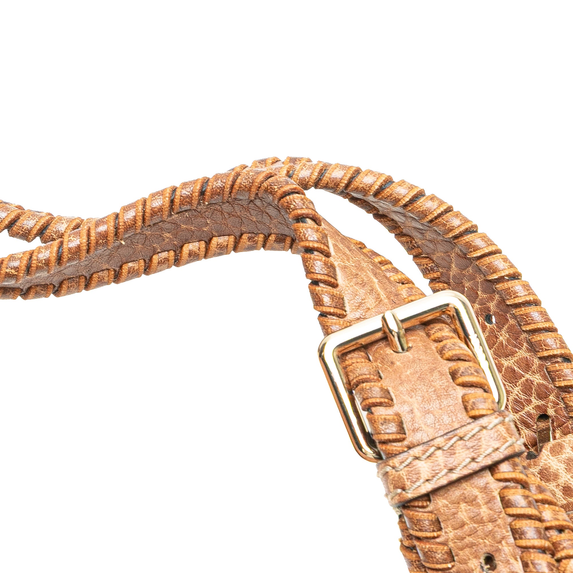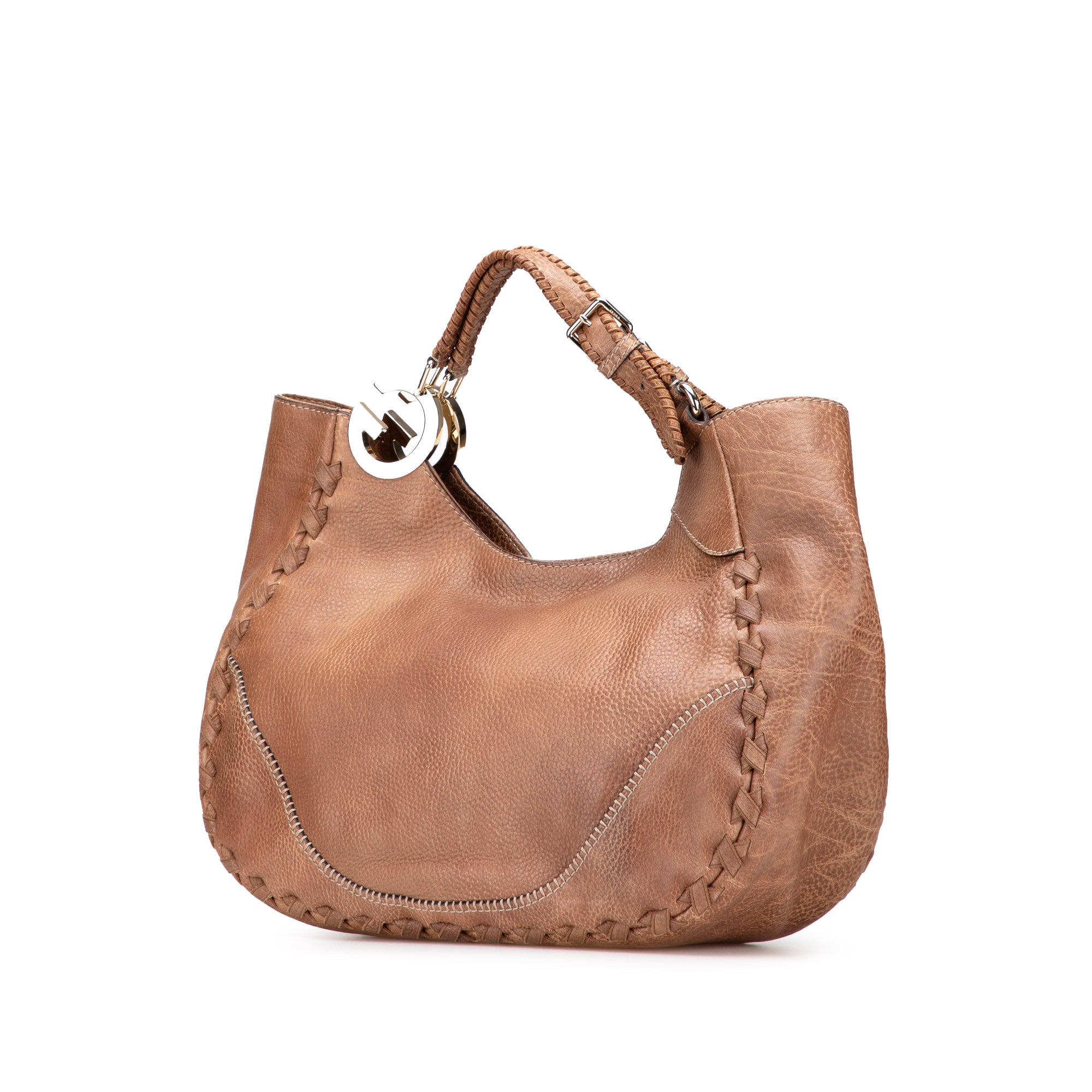 The Charlotte hobo bag features a leather body with braid details, flat leather straps with gold-tone G hardware, an open top, and interior zip and slip pockets. Retail Price: 995.00