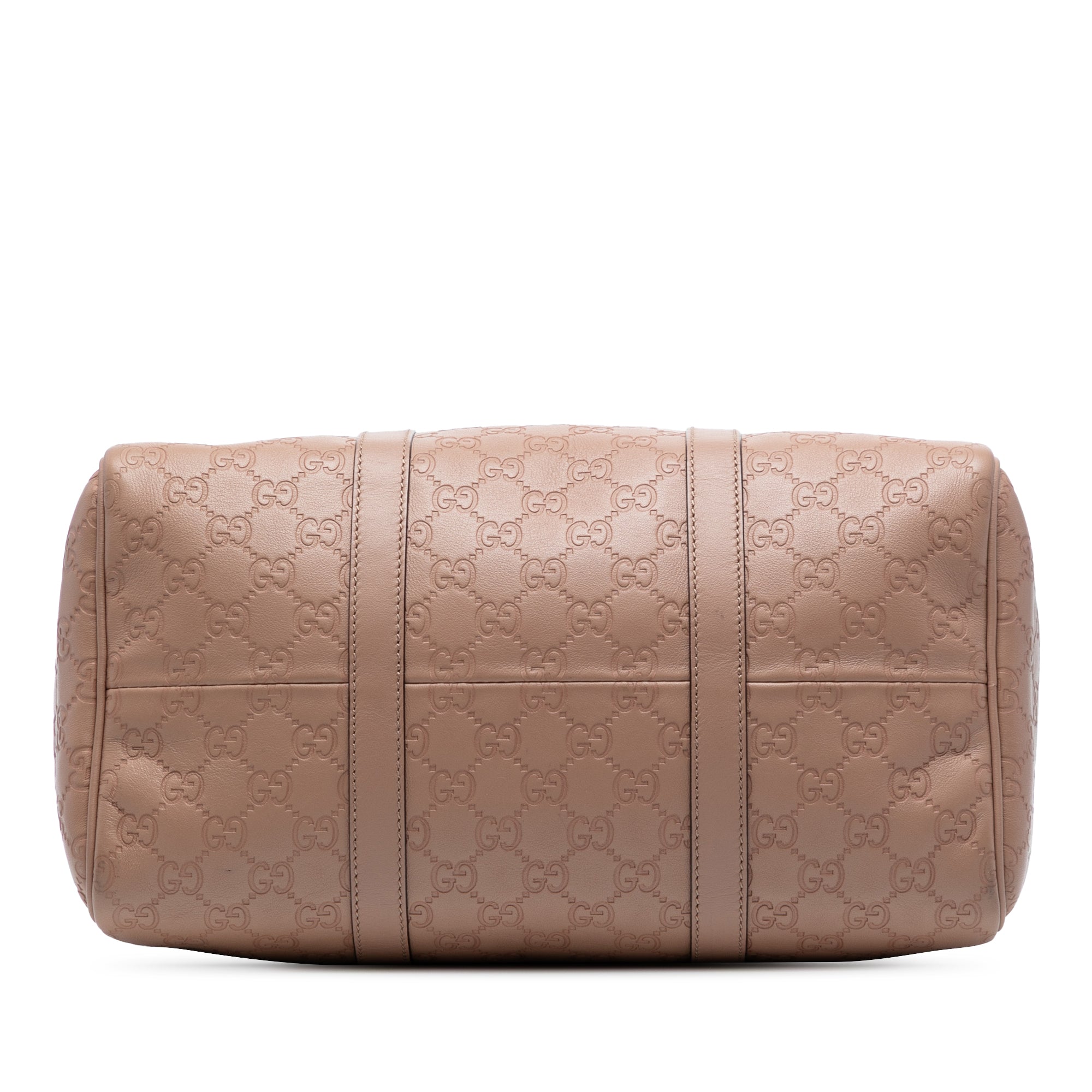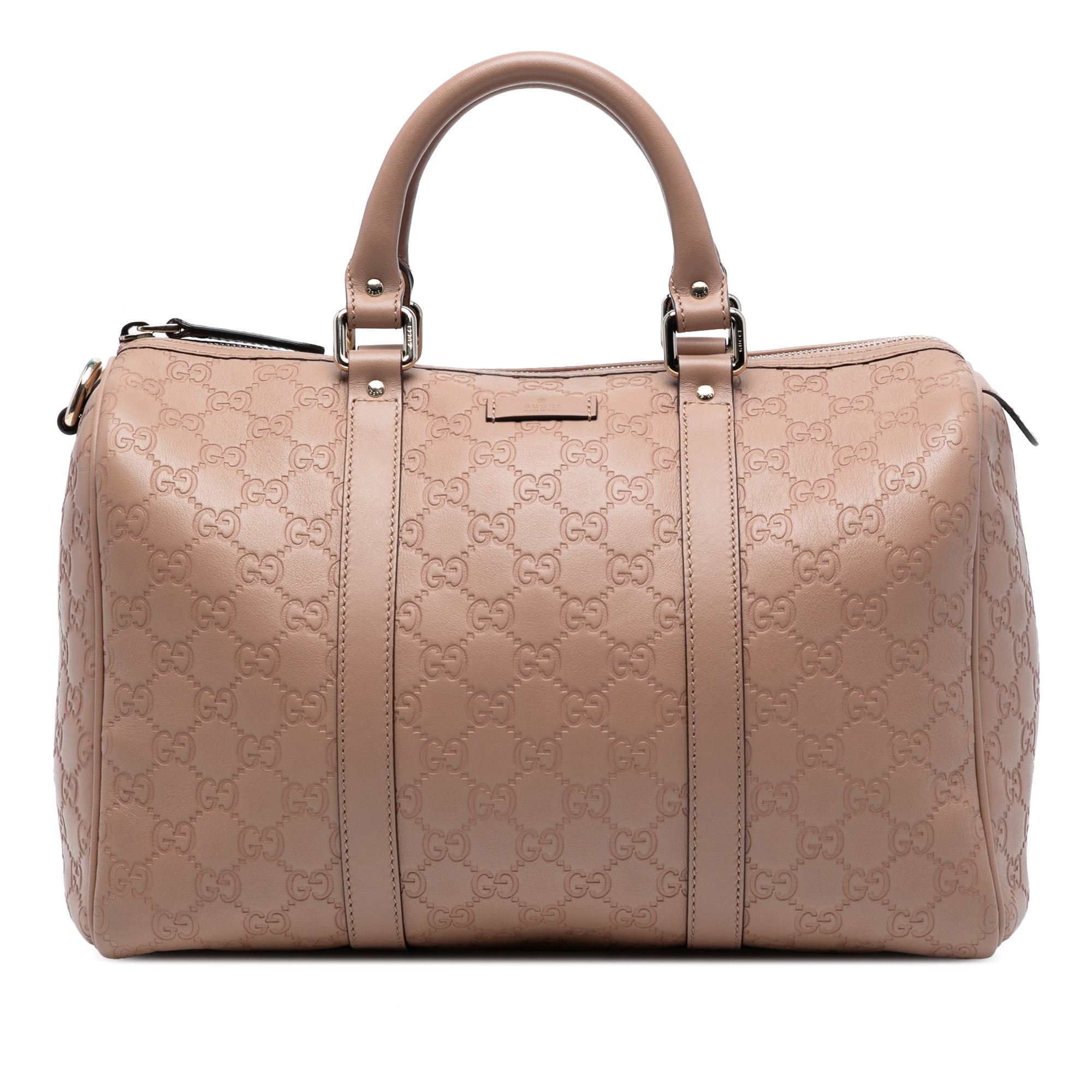 The Joy boston bag features an embossed leather body, rolled leather handles, a top zip closure, and an interior zip pocket. Retail Price: 1200.00