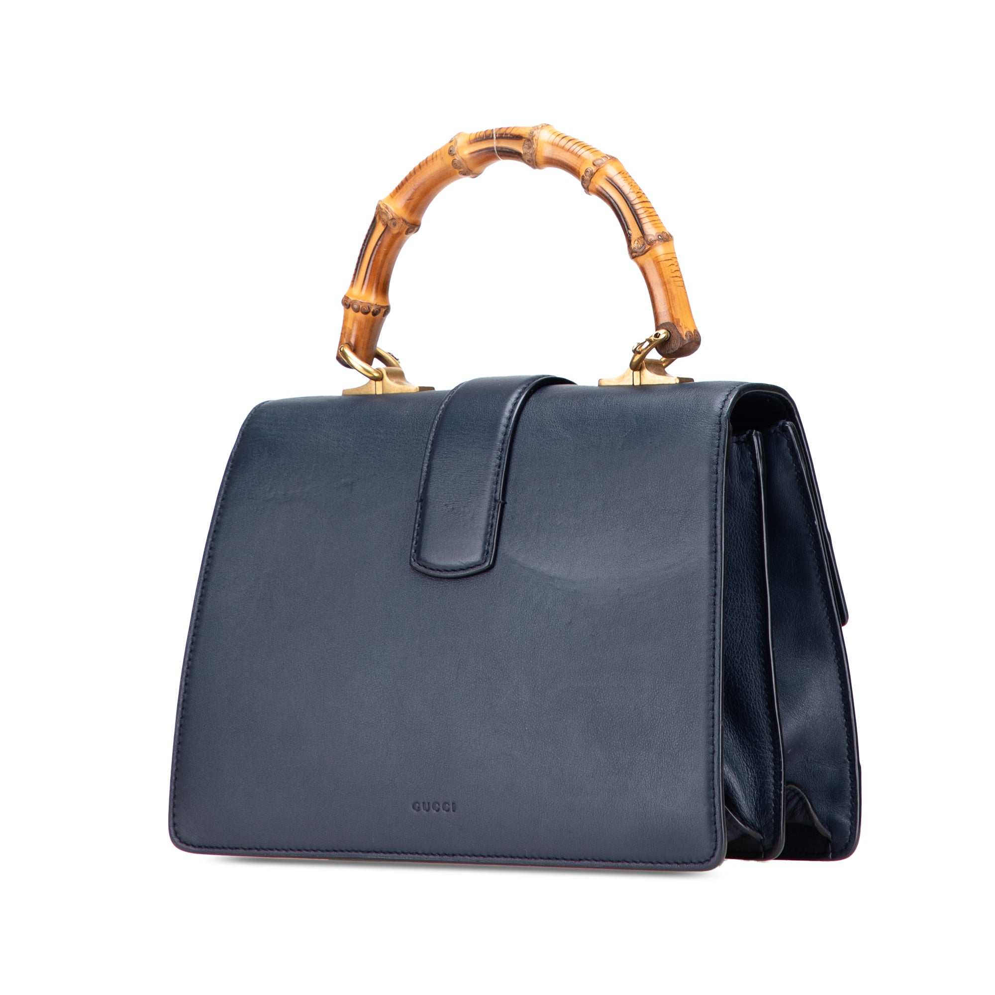 The Dionysus satchel features a leather body, a bamboo top handle, a detachable flat strap, a front flap with magnetic snap closure, and interior zip and slip pockets. Retail Price: 1750.00