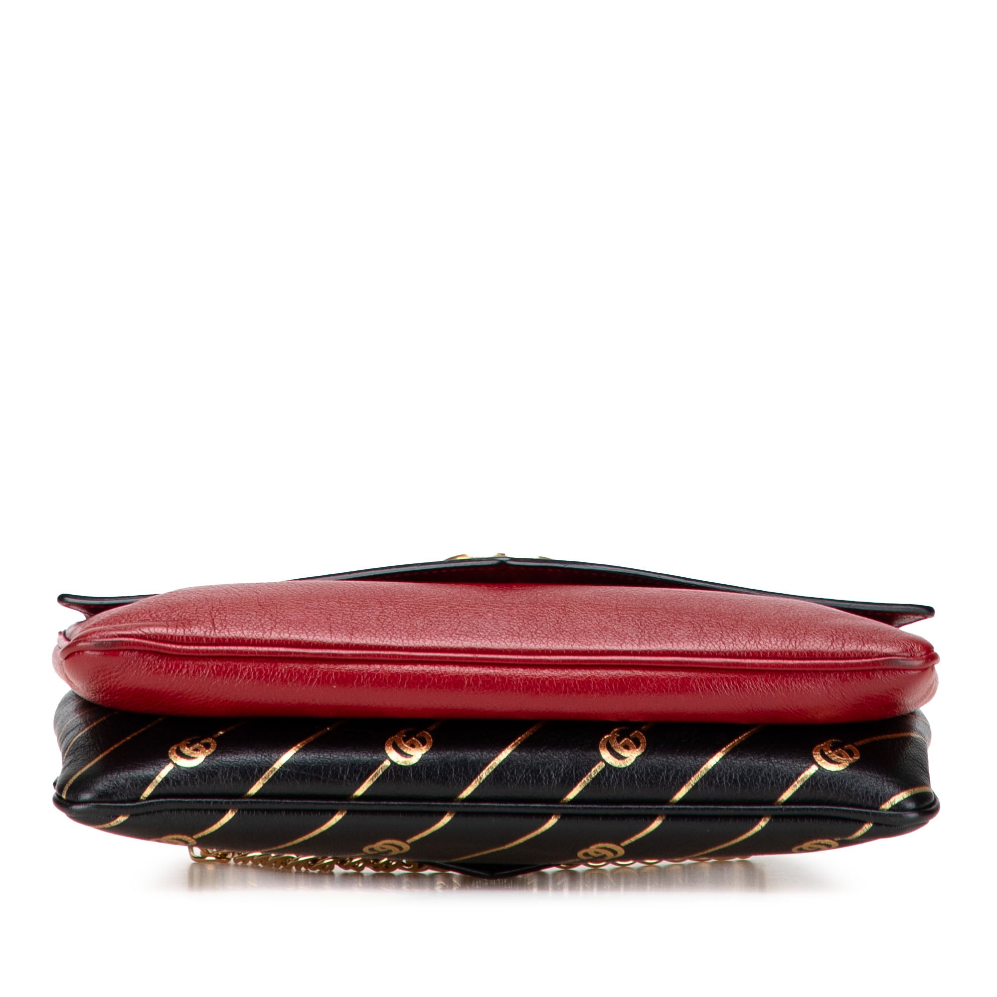 The Double Thiara features a leather body, a chain link handle, a detachable flat leather strap, front and back flaps with tiger head and GG details and magnetic snap button closures, and interior zip and slip pockets. Retail Price: 1345.00