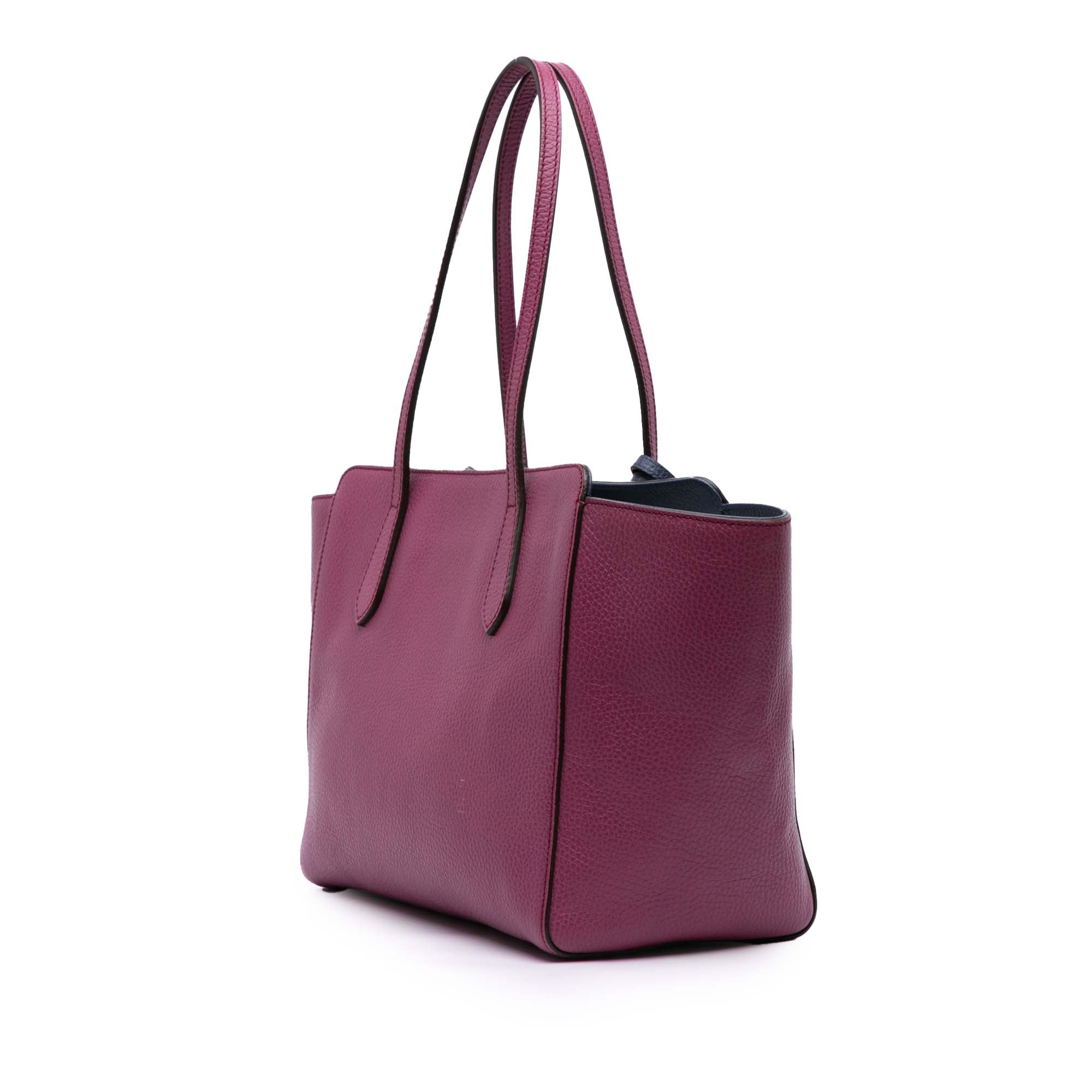 The Swing features a leather body, flat leather straps, an open top with magnetic closure, and interior zip and slip pockets. Retail Price: 675.00