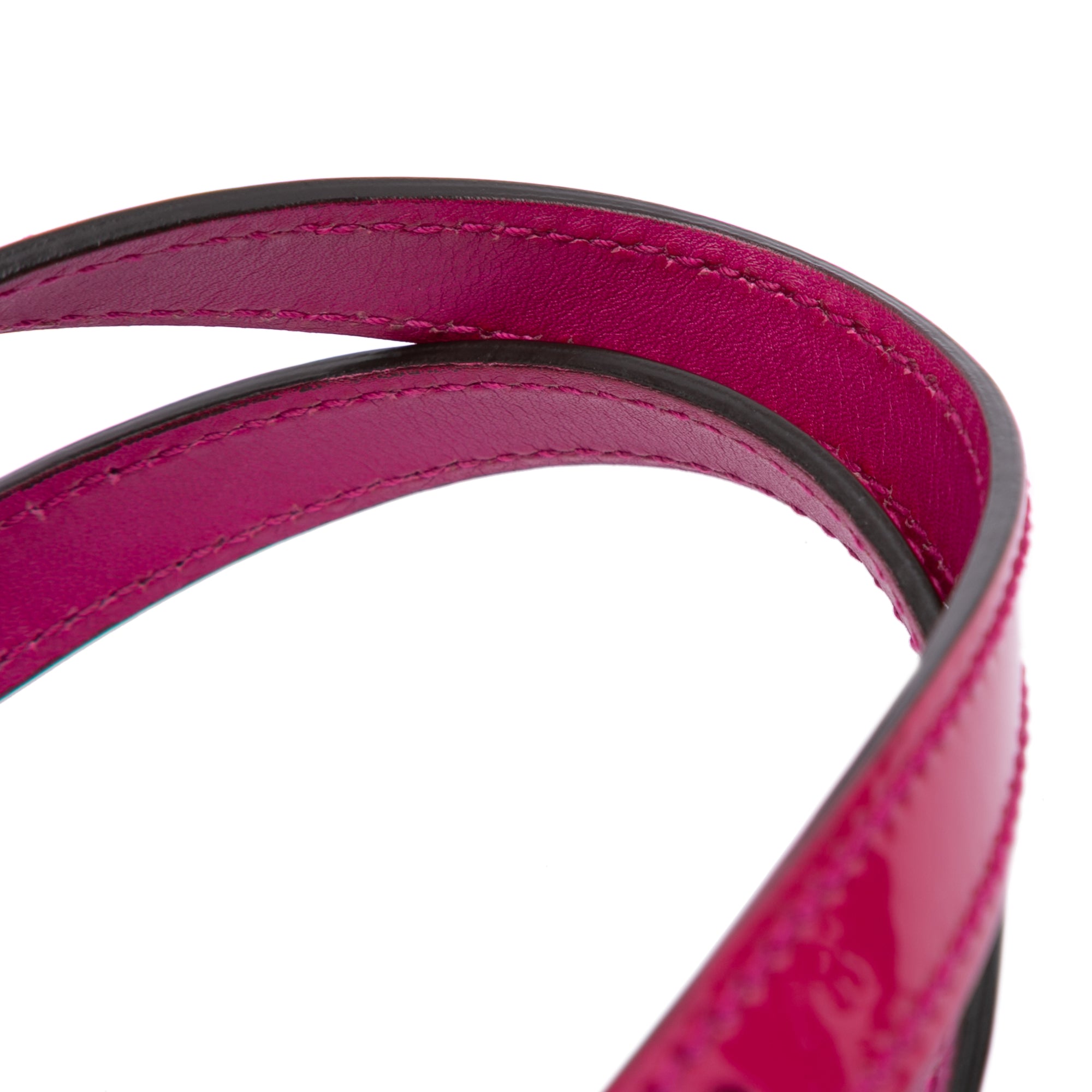 The Nice satchel features a patent leather body, flat leather handles, a detachable strap, a top zip closure, and interior slip and zip pockets. Retail Price: 1690.00