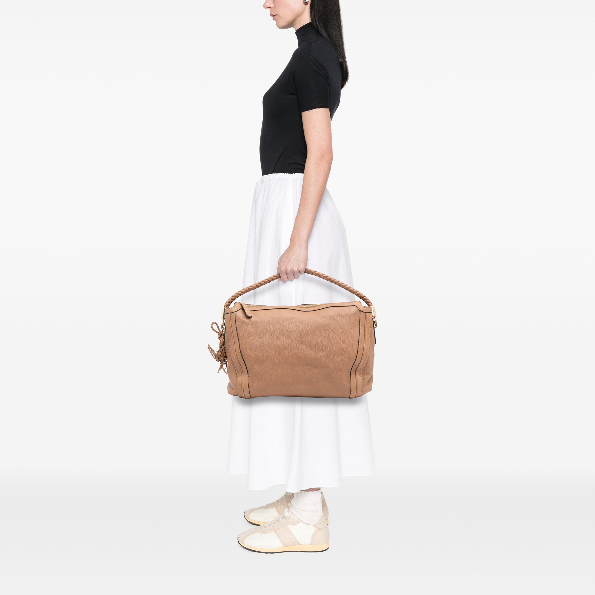 The Bella features a leather body, a leather braided handle, a top zip closure, and interior zip and slip pockets. Retail Price: 1290.00