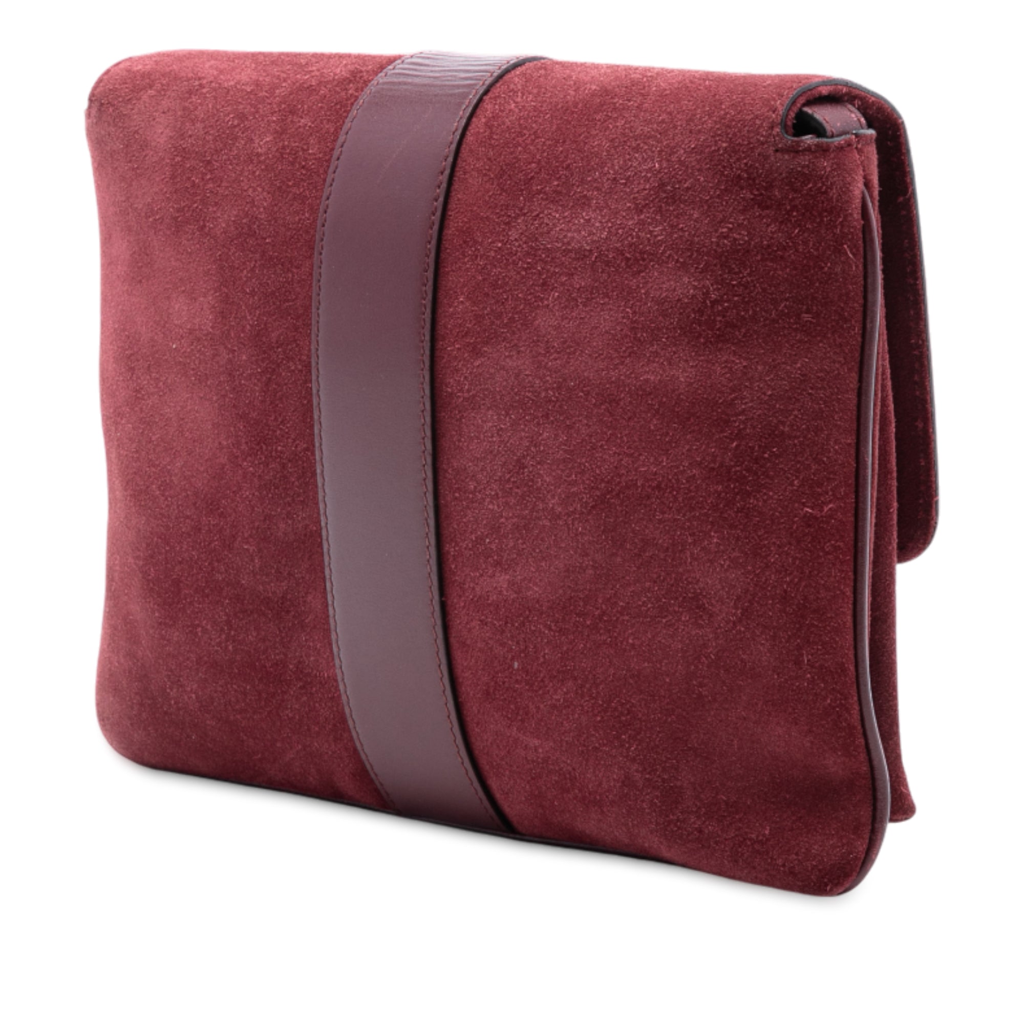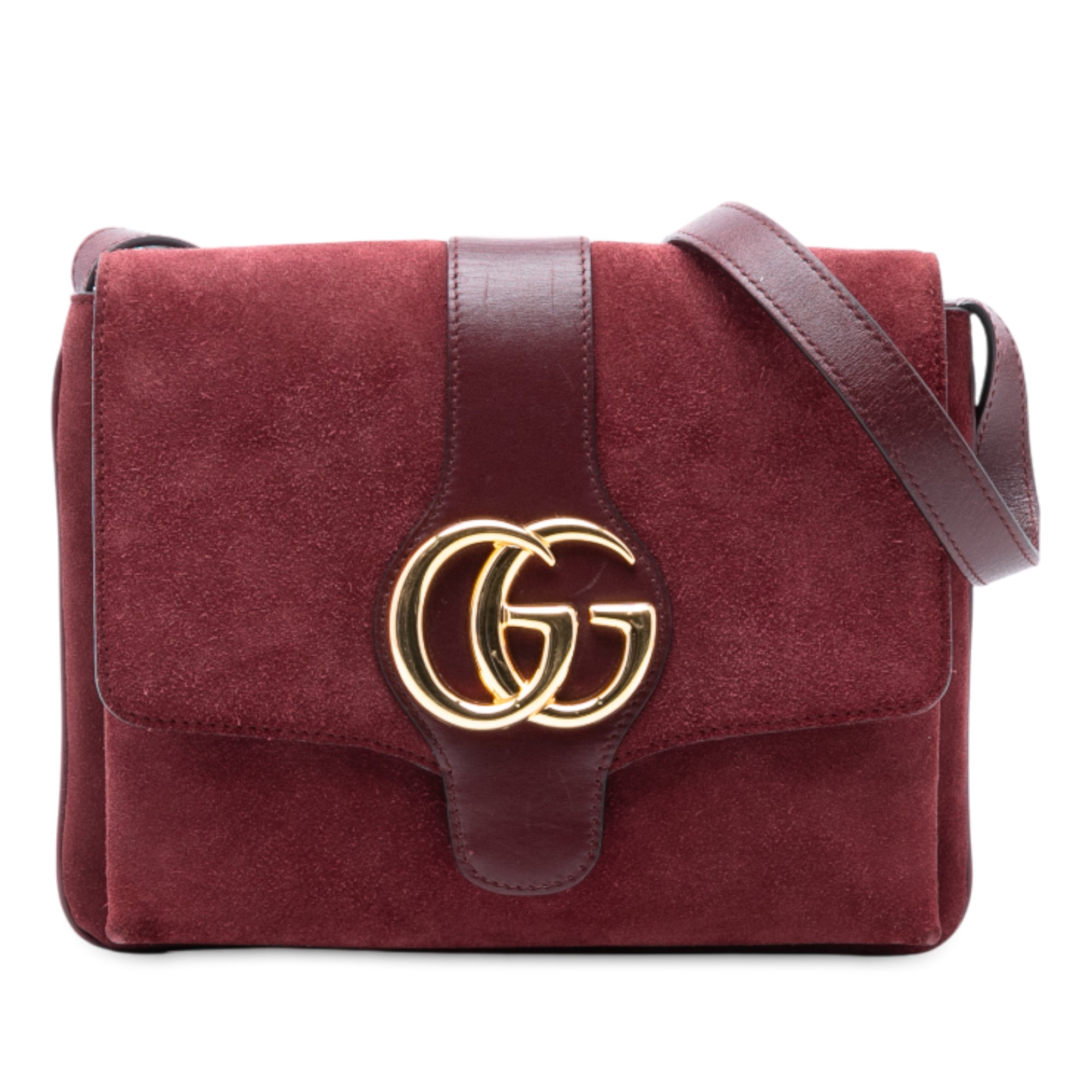 The Arli crossbody bag features a suede body with calf leather trim, an adjustable flat leather strap, a front flap with magnetic snap closure, and interior zip and slip pockets. Retail Price: 2850.00