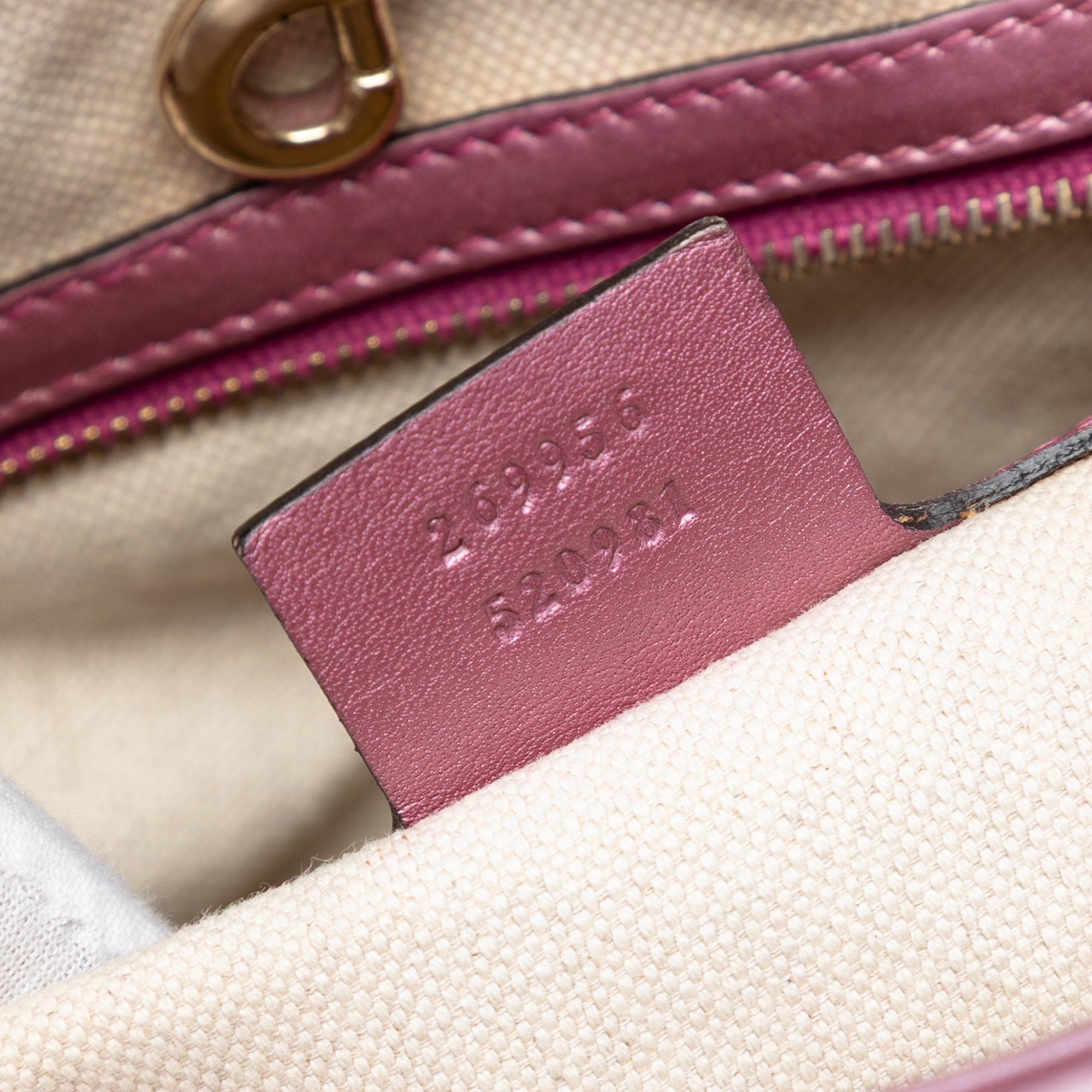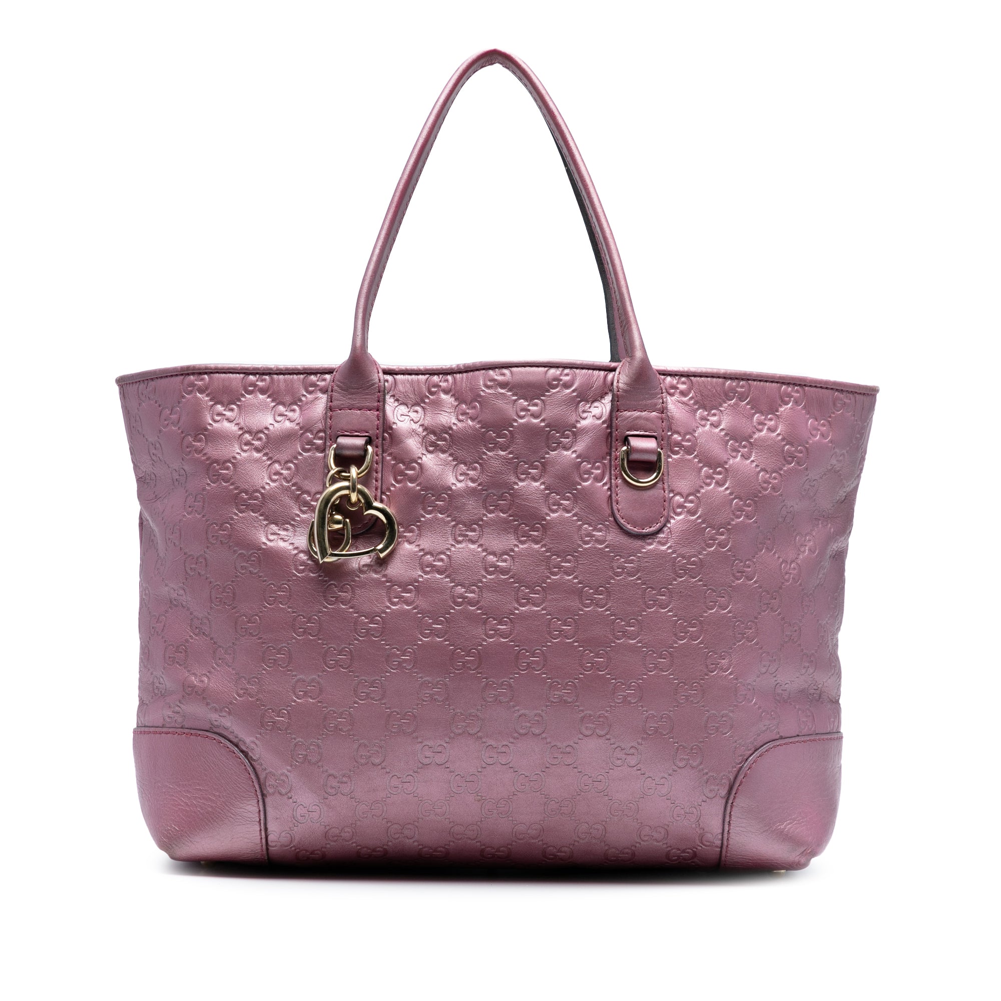 The Heart Bit tote bag features an embossed leather body, a metal and bamboo charm, flat shoulder straps, an open top with lobster claw clasp closure, and interior zip and slip pockets. Retail Price: 1390.00