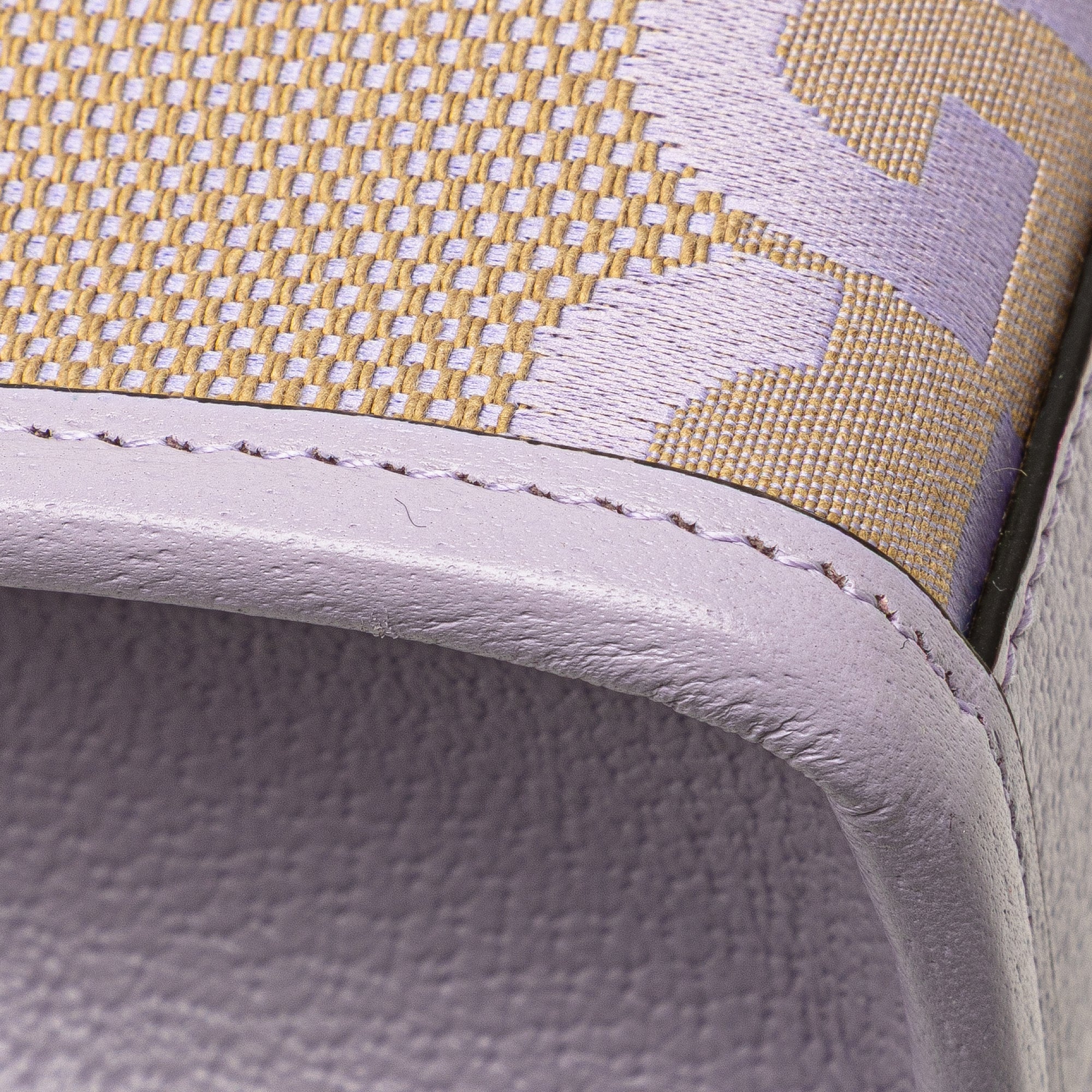 This satchel features a canvas body with leather trim, rolled leather handles, a detachable flat leather strap, an open top, and an interior slip pocket. Inclusion: Dust bag. Retail Price: 1690.00