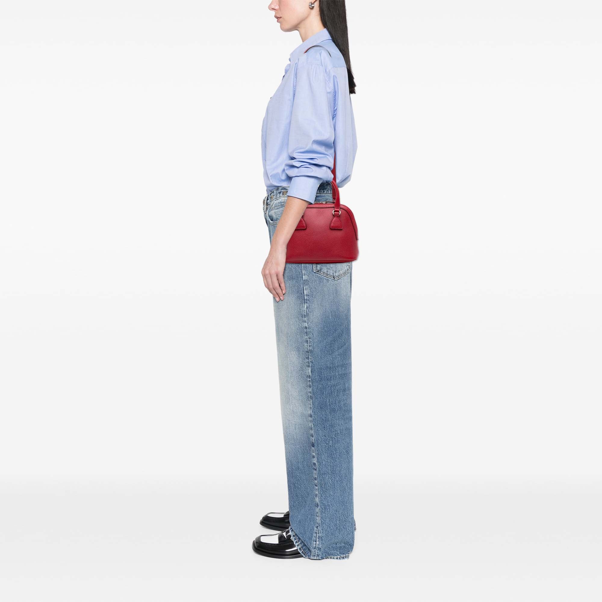This satchel features a leather body, rolled leather handles, a detachable and adjustable flat leather shoulder strap, dual zip around closure, and an interior slip pocket. Retail Price: 1495.00