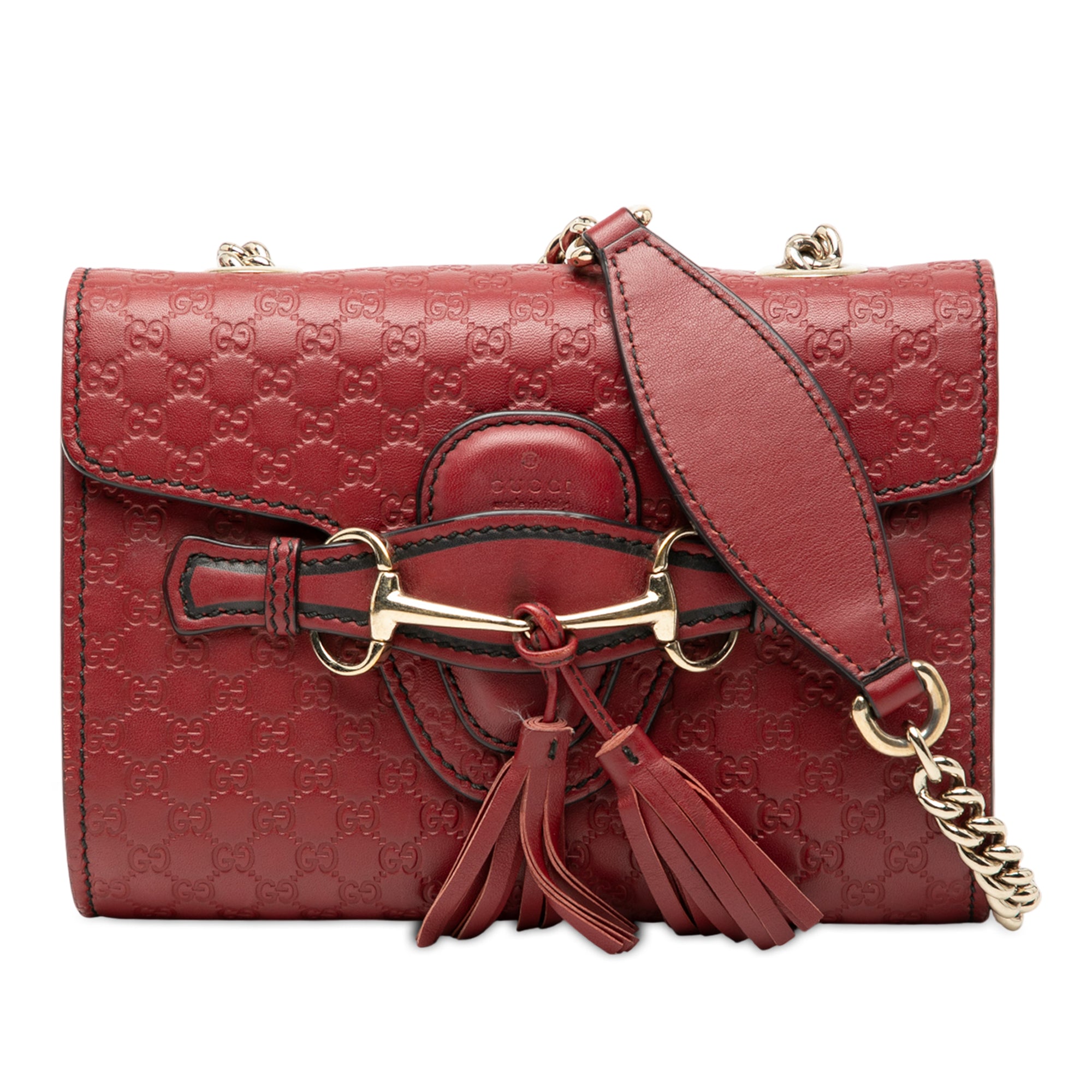 The Mini Emily features an embossed leather body, curb chain strap, a front flap with a slip through closure and a tassel detail, and an interior slip pocket. Retail Price: 1650.00