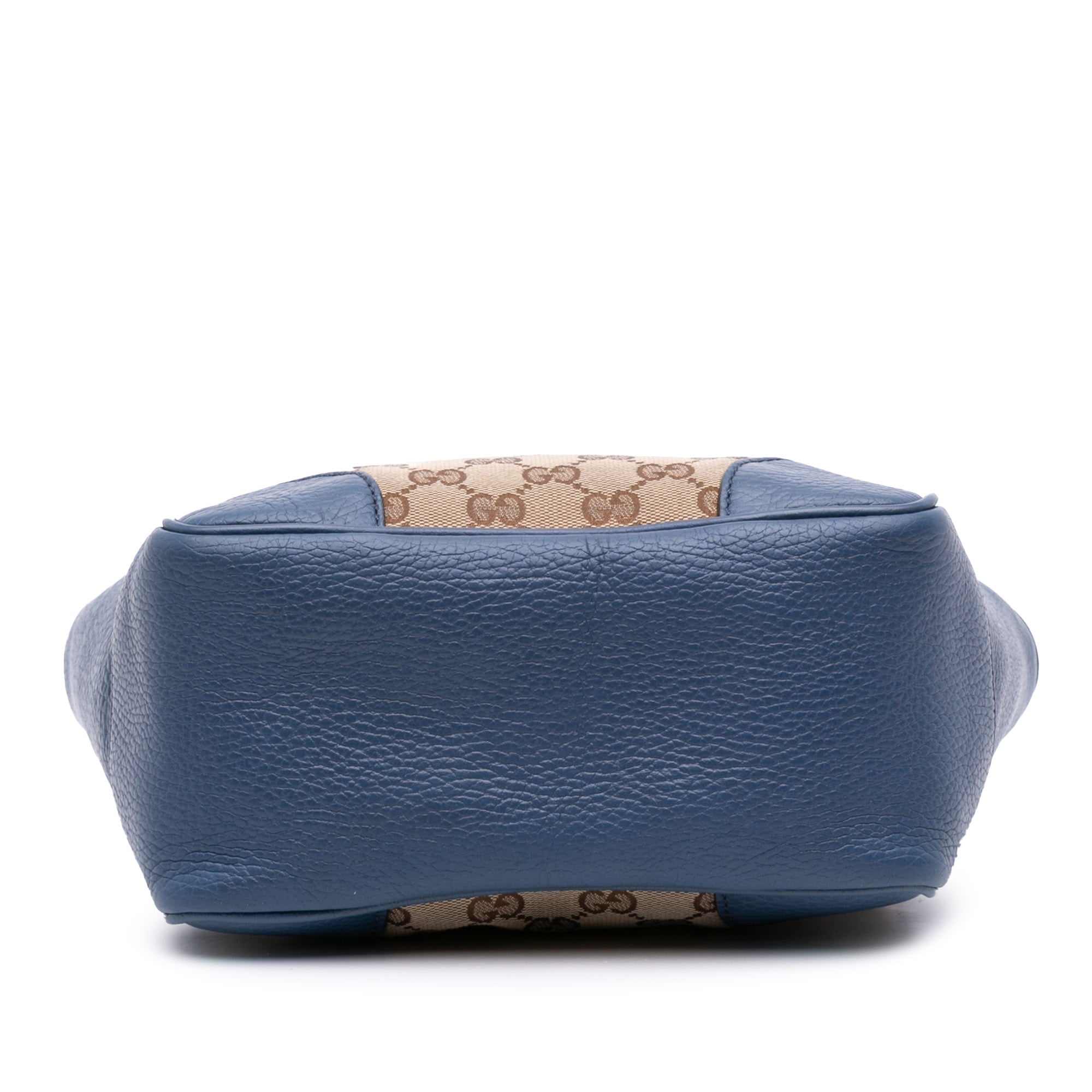 The Bree features a canvas body with leather trim, flat leather handles, a detachable flat leather shoulder strap, a top zip closure, and interior zip and slip pockets. Retail Price: 1450.00