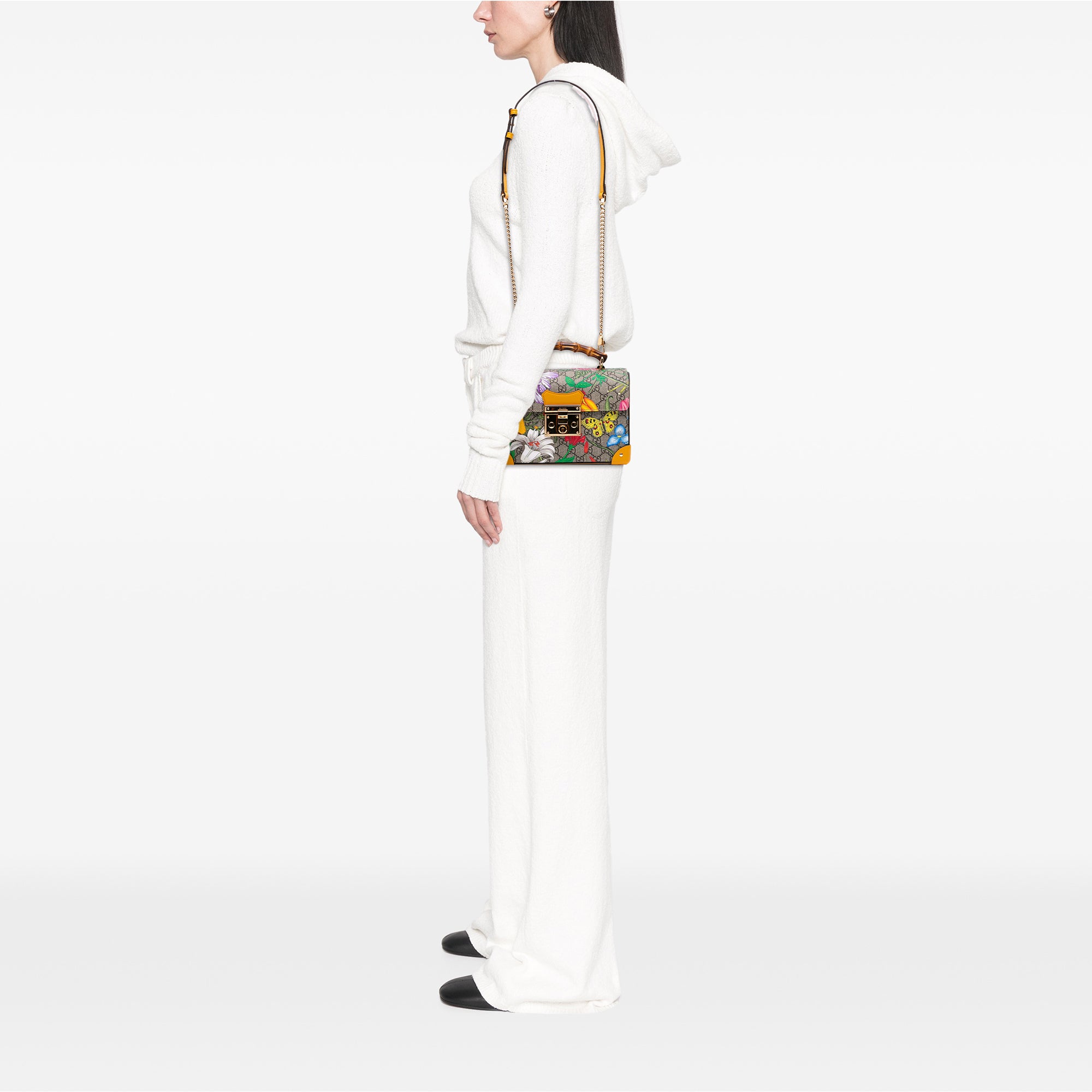 Gucci Small GG Supreme Flora Bamboo Padlock Satchel