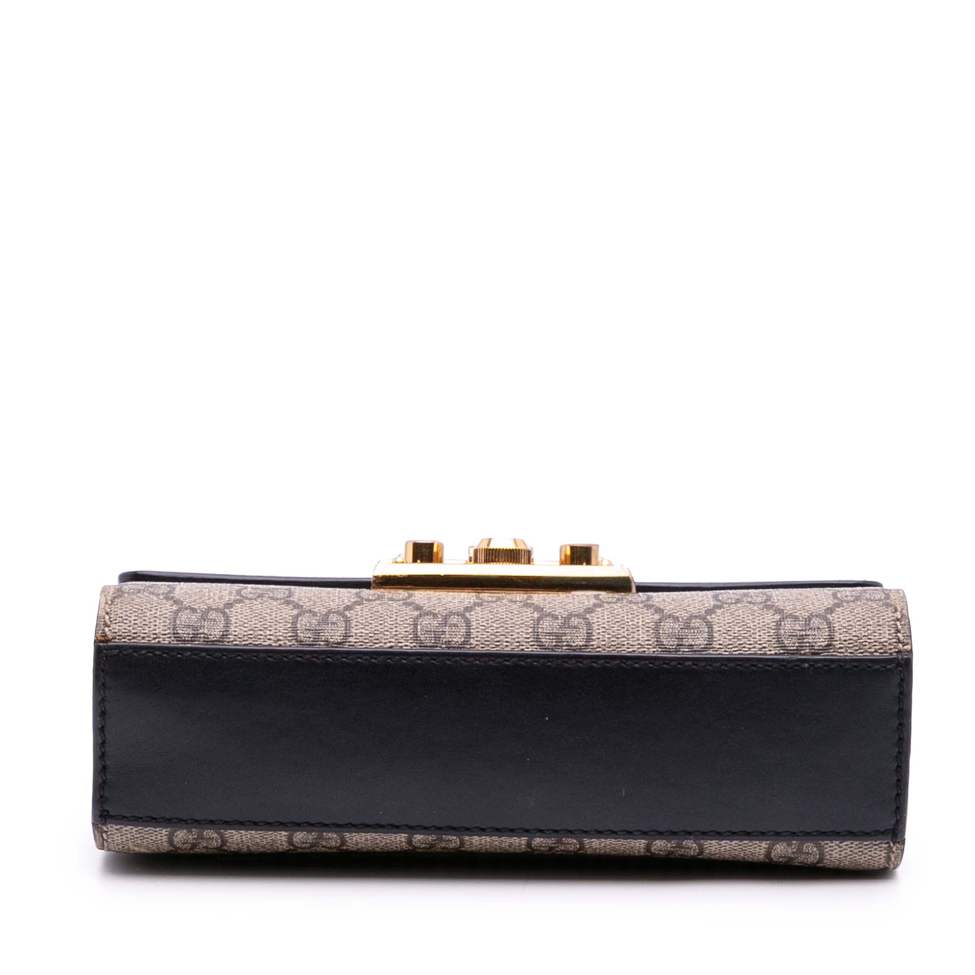 This crossbody bag features a coated canvas body, a chain link strap, a front flap with a S-lock closure, an exterior slip pocket, and an interior slip pocket. Retail Price: 2300.00