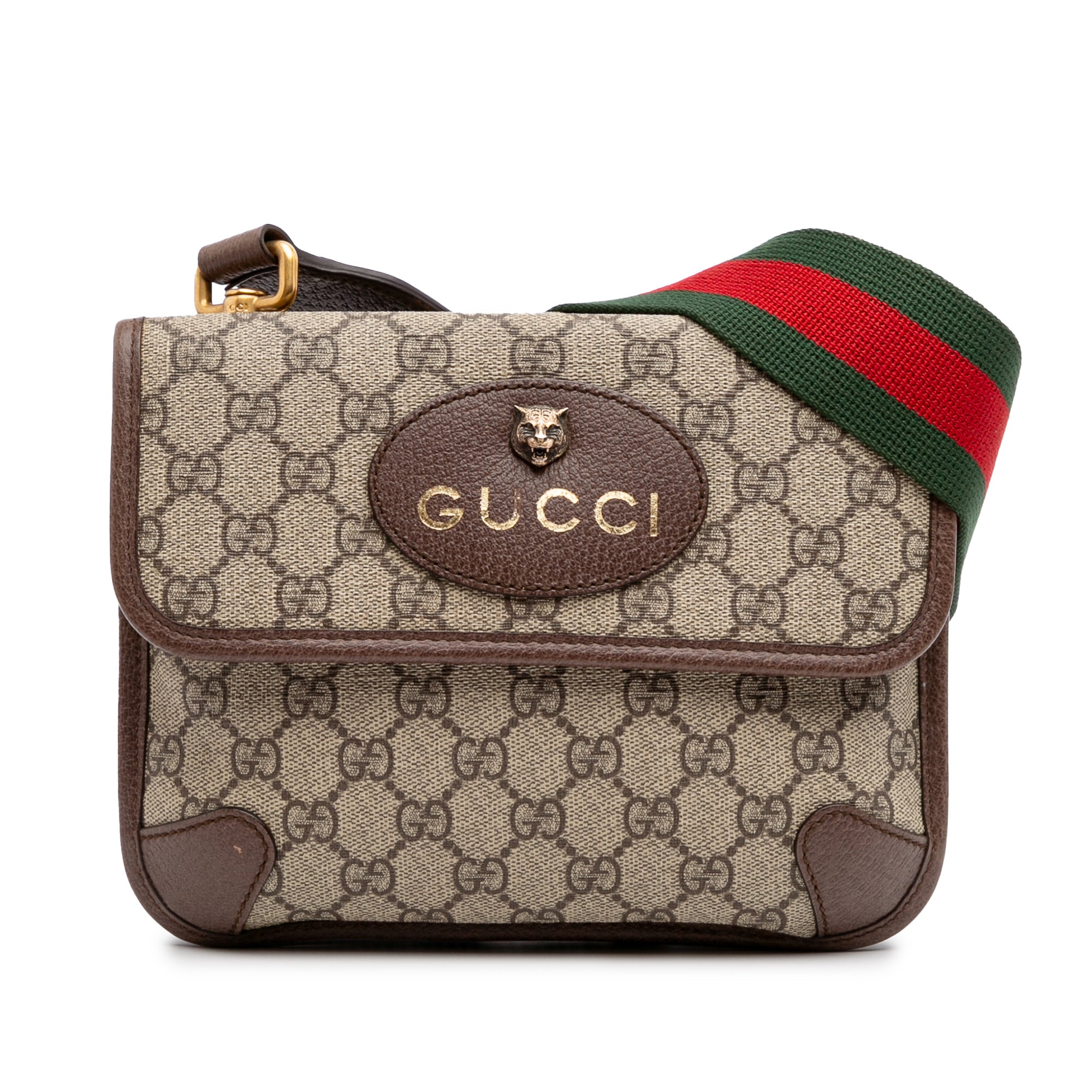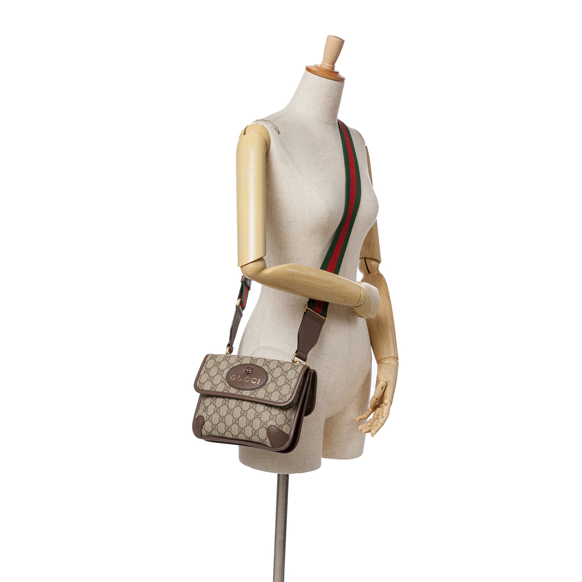 Gucci Small GG Supreme Web Neo Vintage Double Flap Messenger Bag