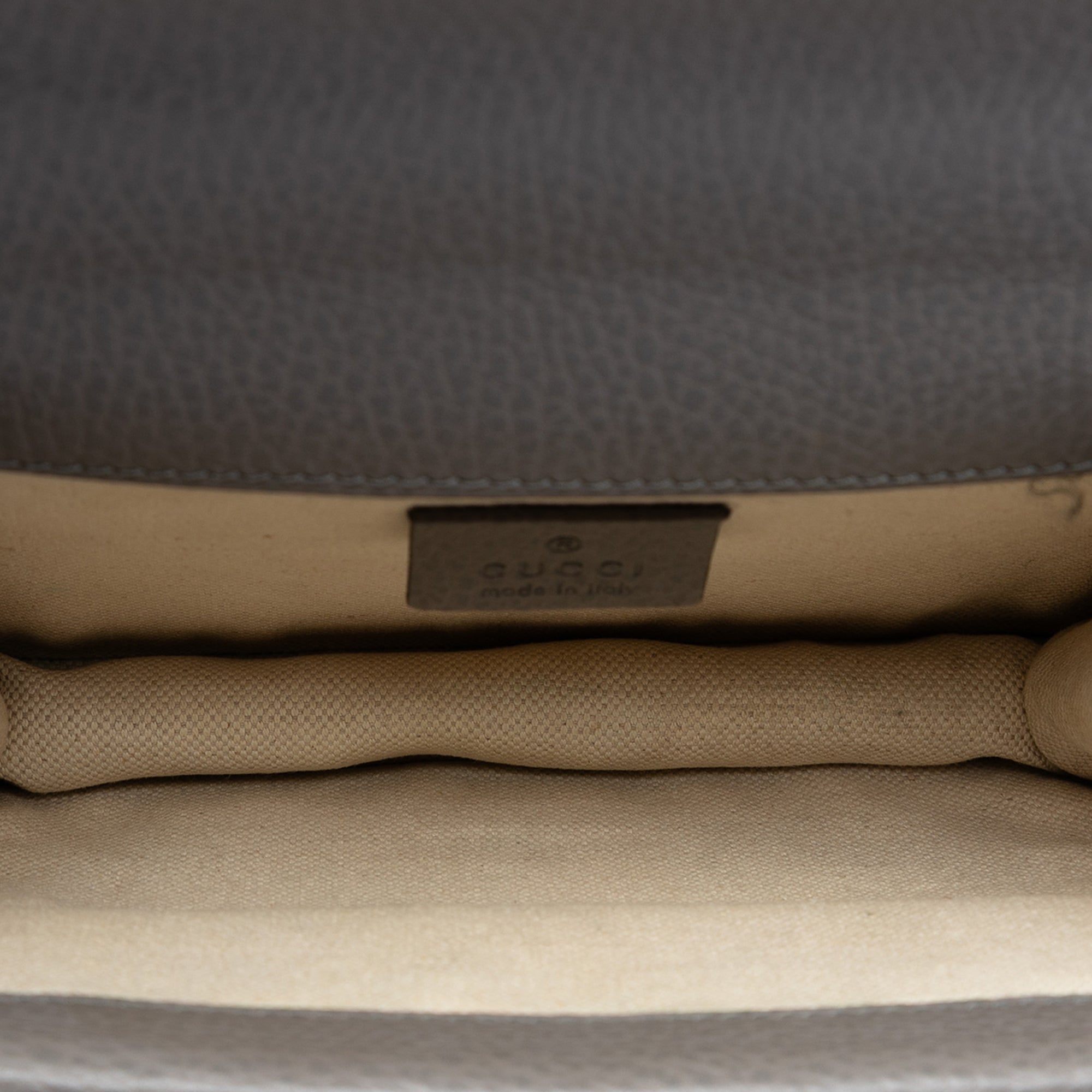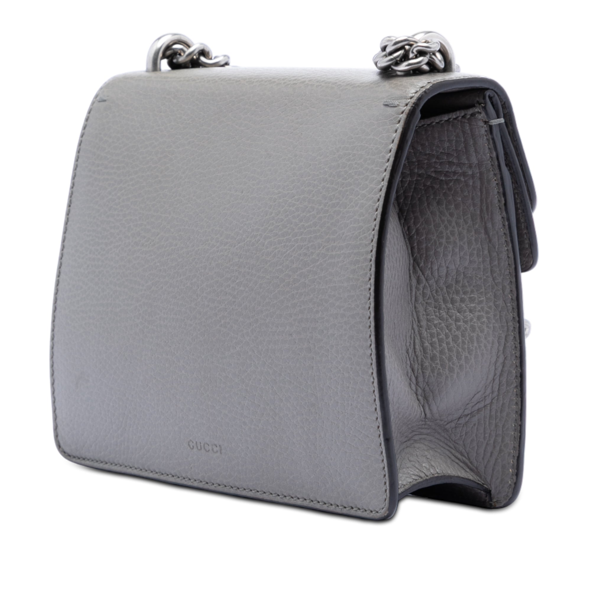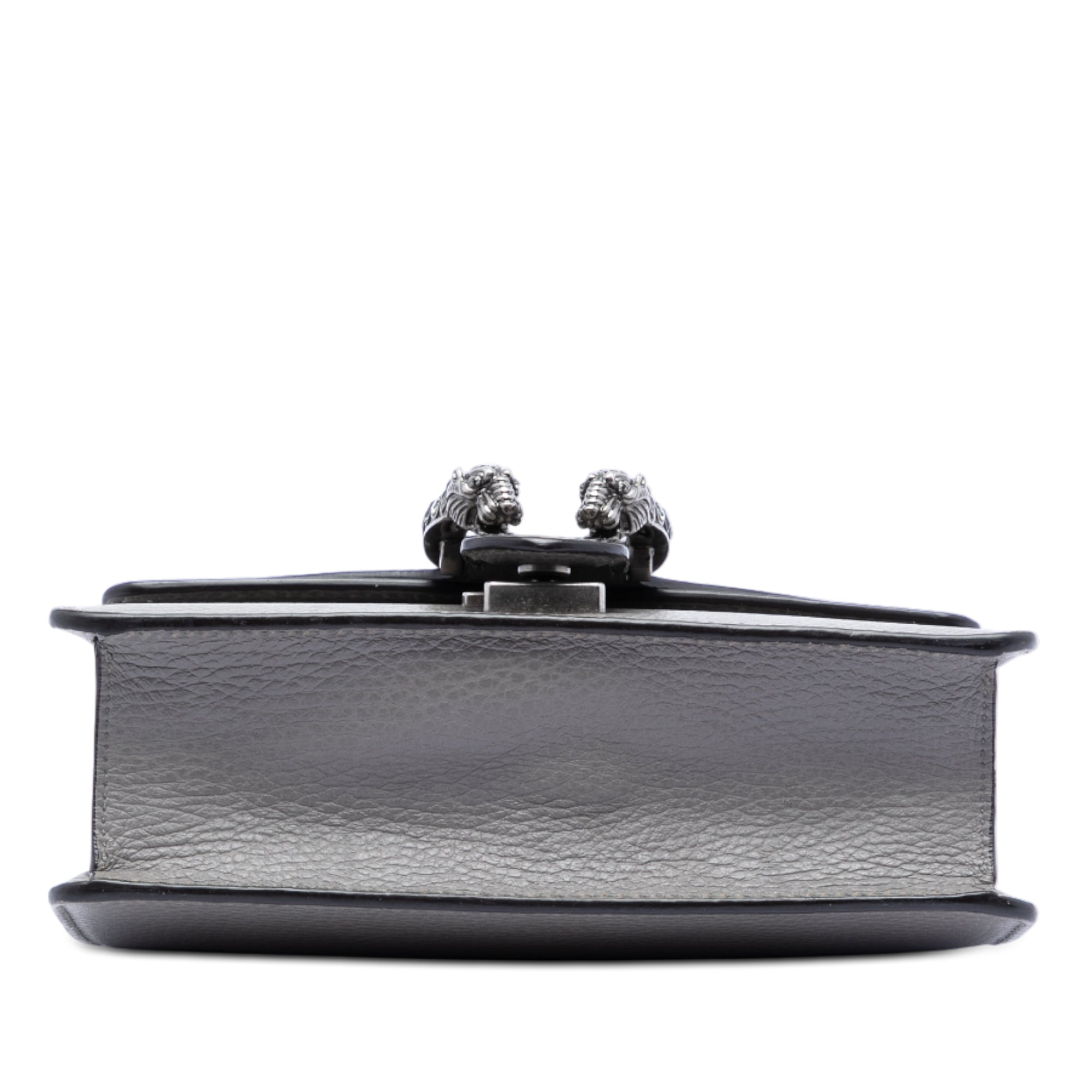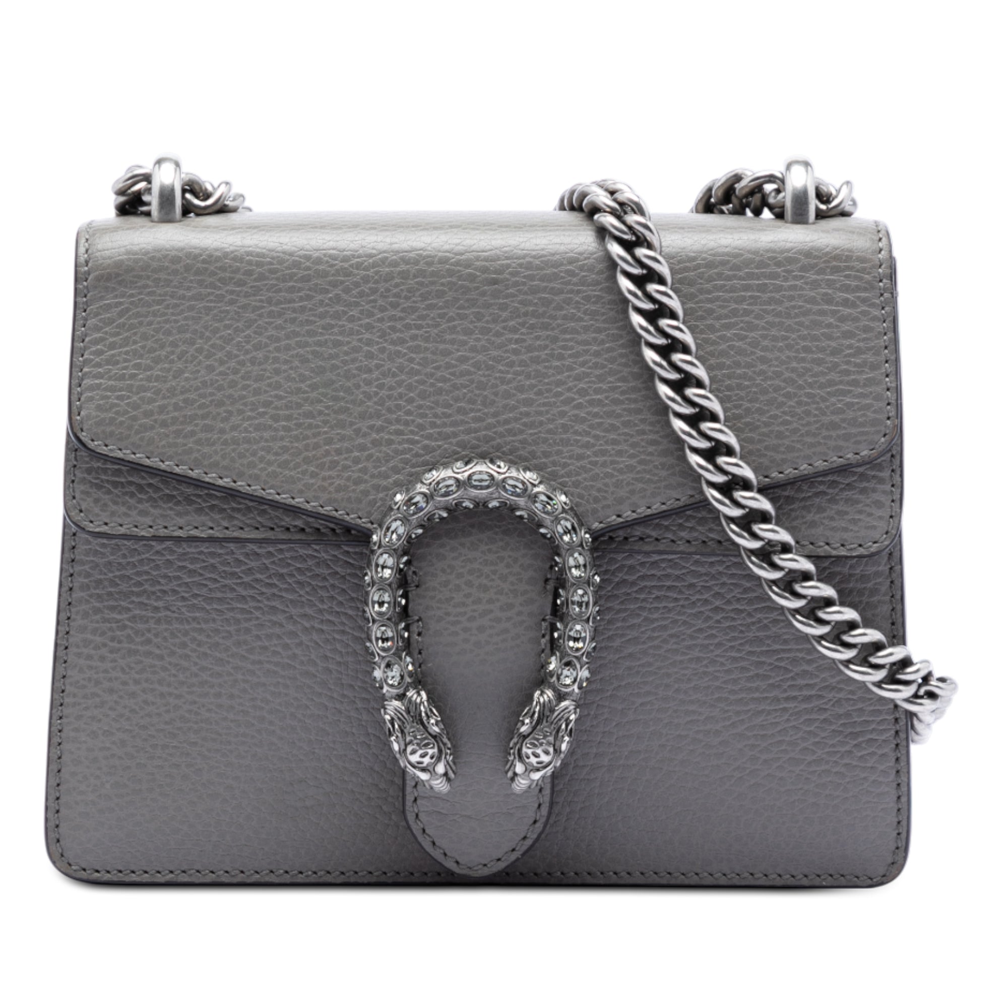 The Dionysus Crossbody bag features a leather body, a silver-tone chain link strap, a top flap with a magnetic snap button closure. Retail Price: 2180.00