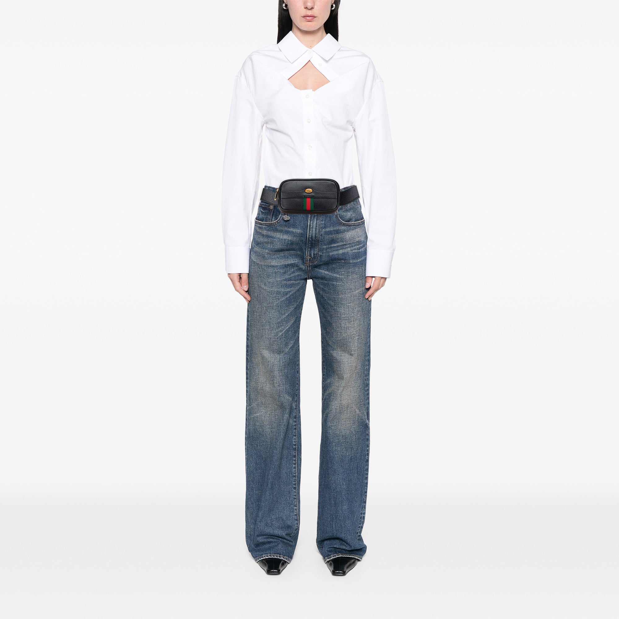 The Ophidia belt bag features a leather body with web detail, a flat leather waist strap, a top zip closure, and interior slip pockets. Inclusion: Dust bag. Retail Price: 1350.00