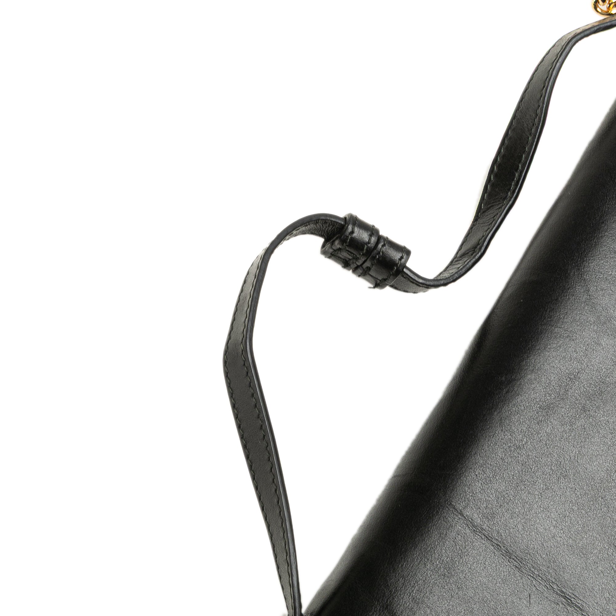 The Zumi satchel features a leather body, a flat leather top handle, a detachable gold-tone chain link strap, a front flap with magnetic snap closure, an exterior slip pocket, and an interior slip pocket. Retail Price: 4900.00