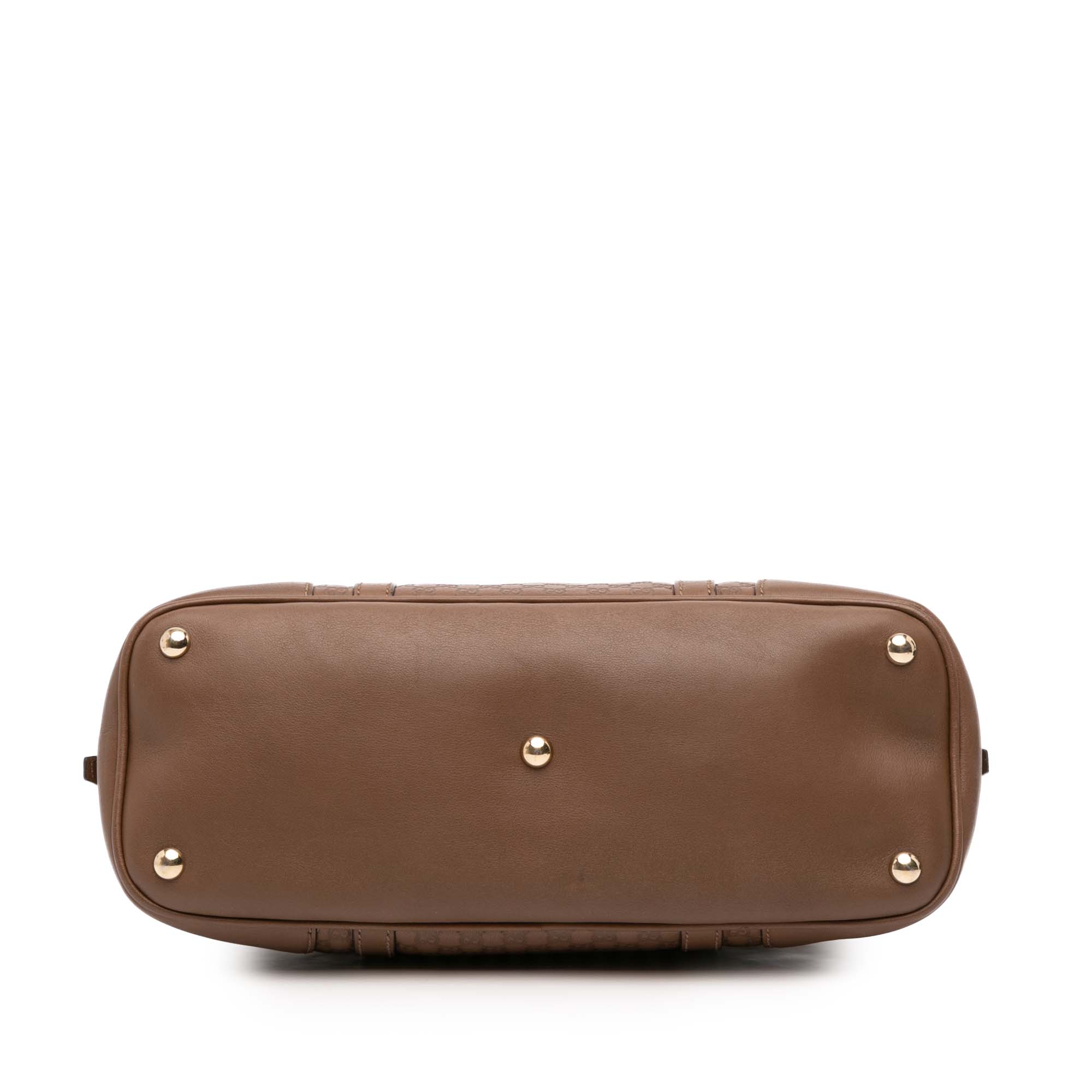 The Dome satchel features an embossed leather body, flat leather handles, a top zip closure, and an interior zip and slip pockets. Retail Price: 1255.00