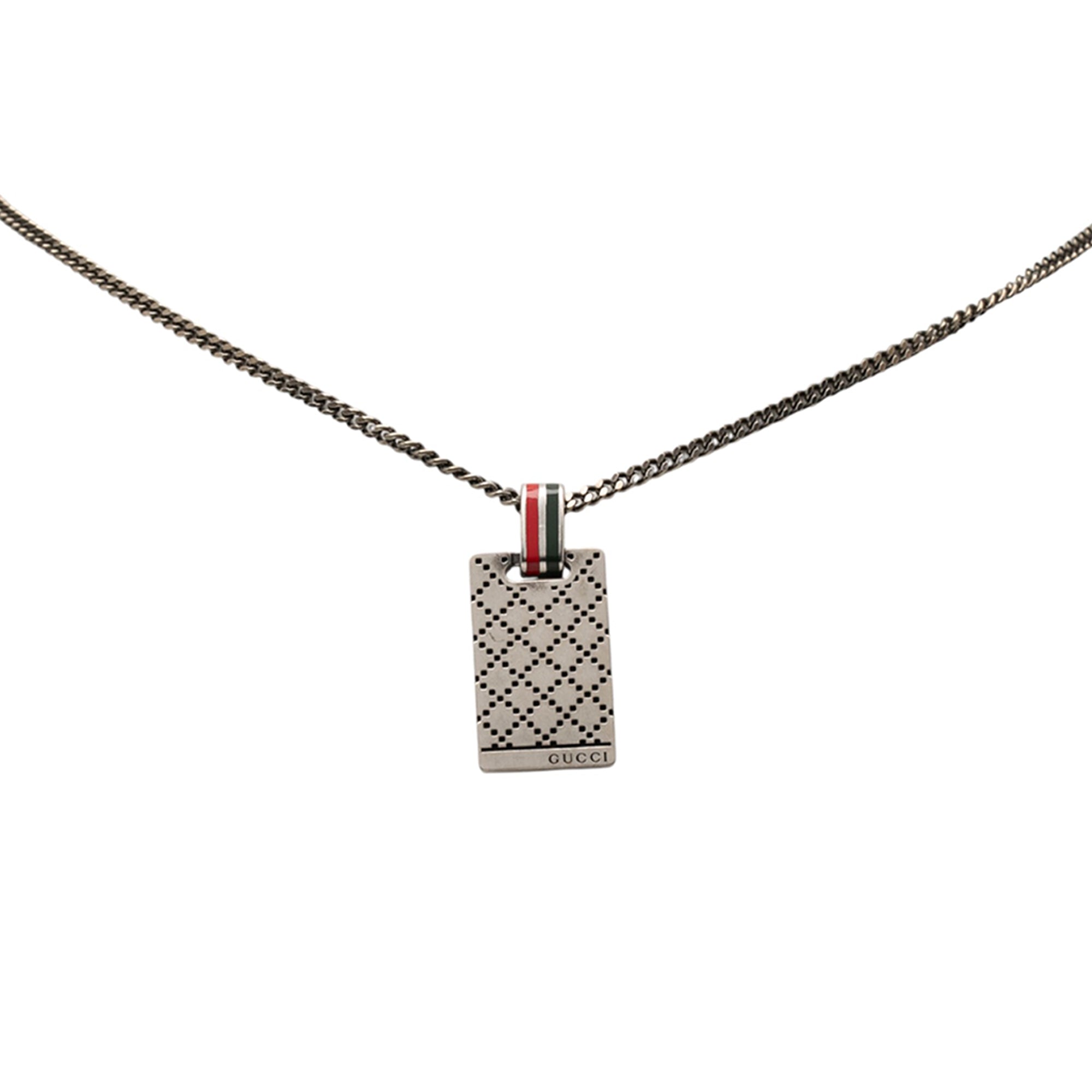 Gucci Sterling Silver and Enamel Diamante Dog Tag Necklace