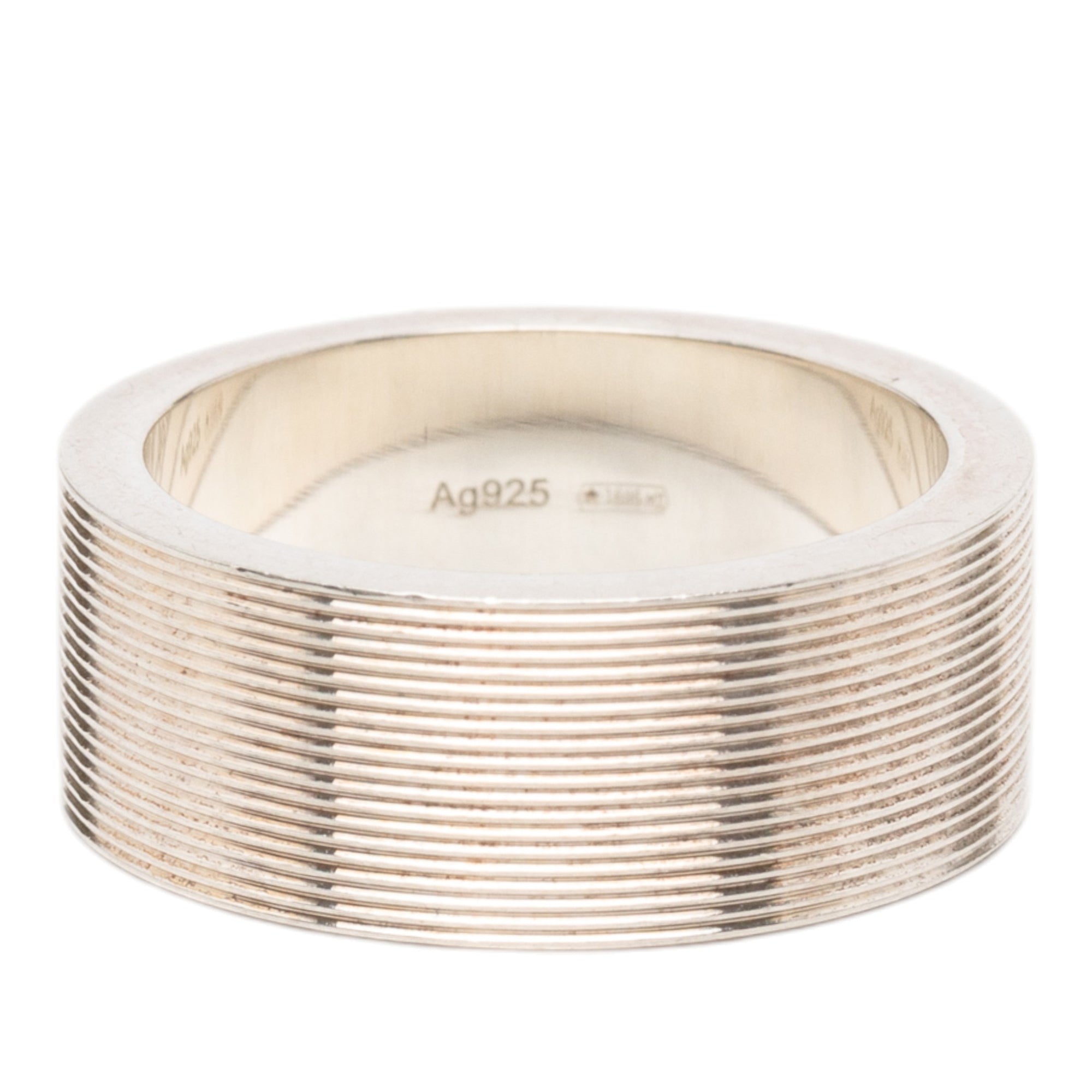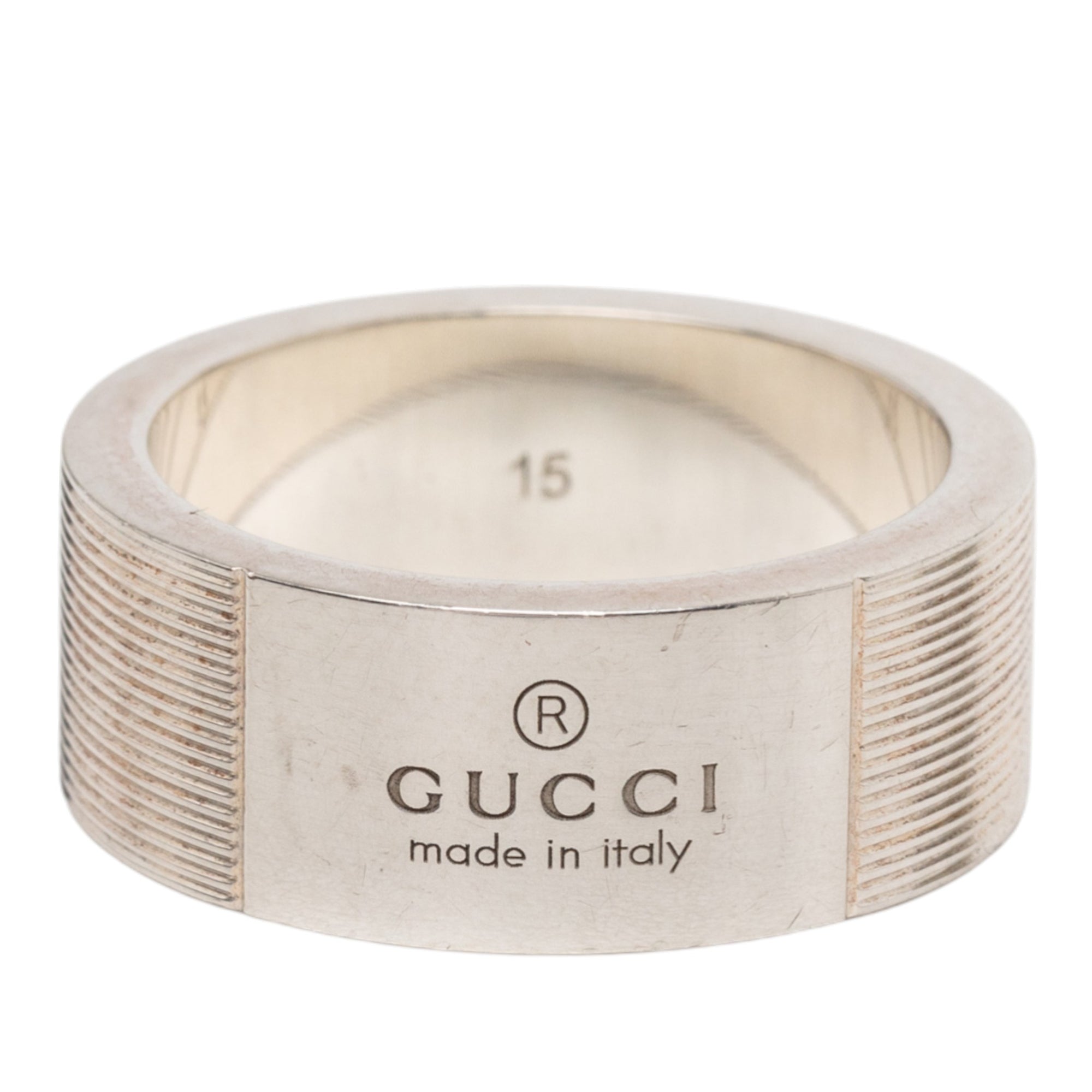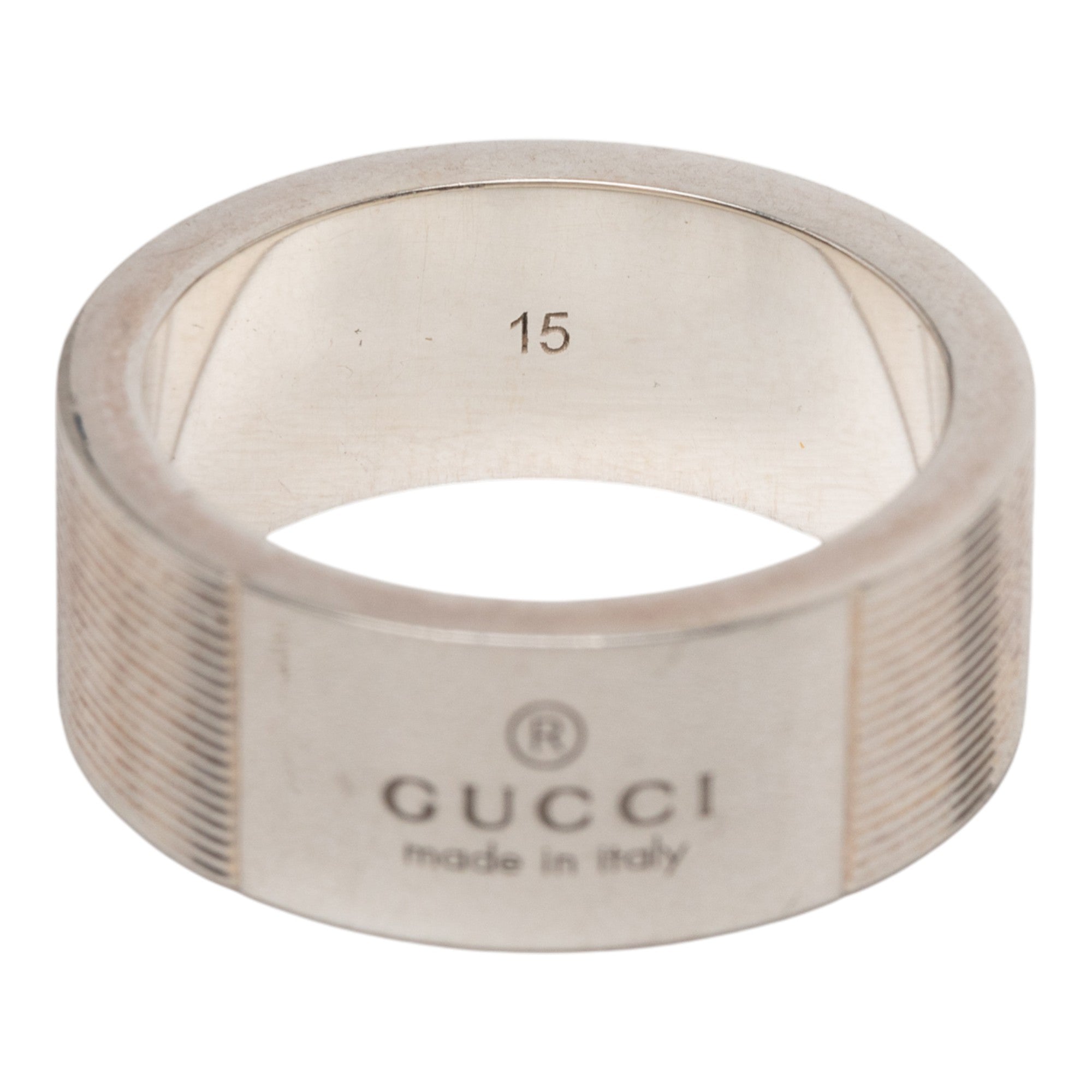 Gucci Sterling Silver Grooved Trademark Band Ring Secondhand