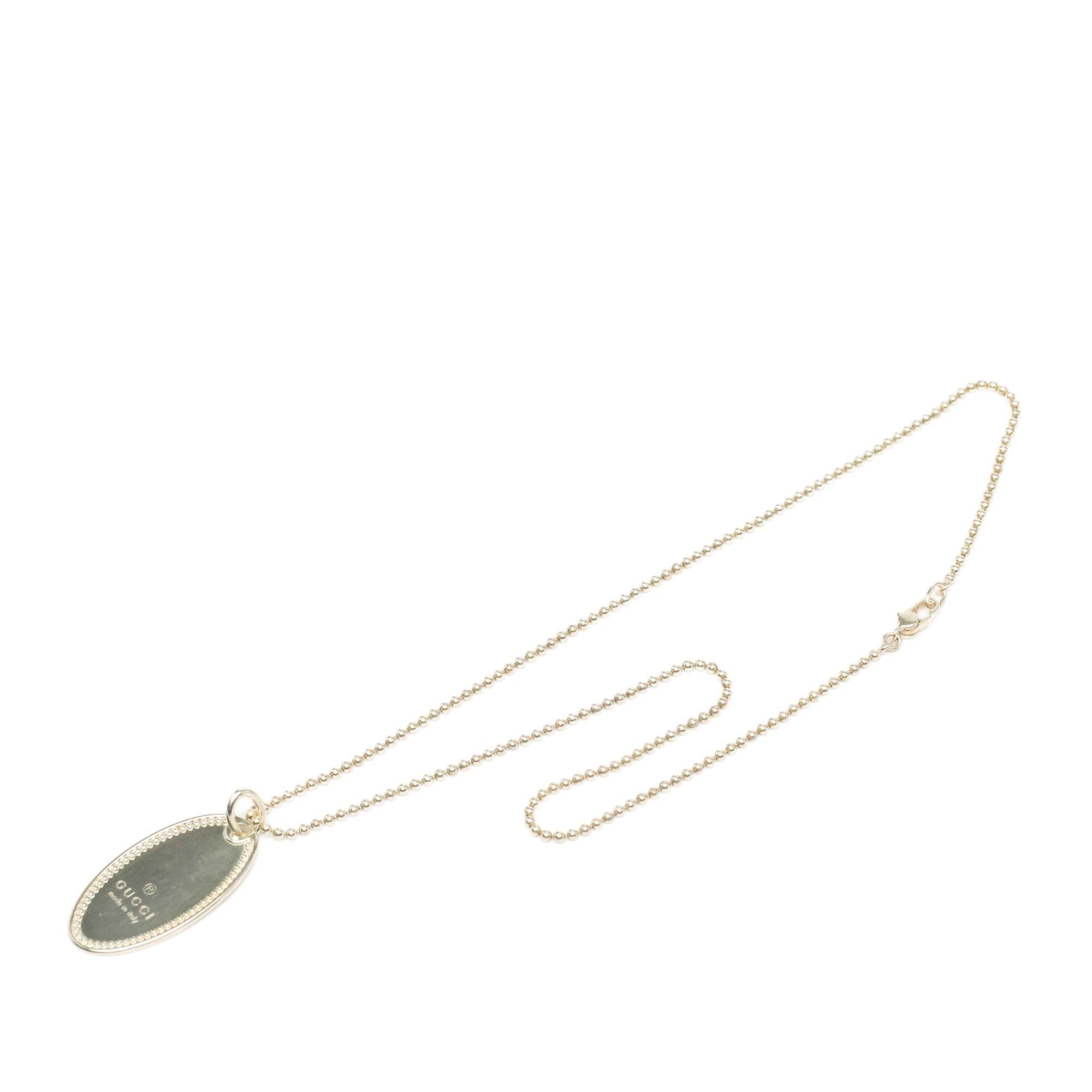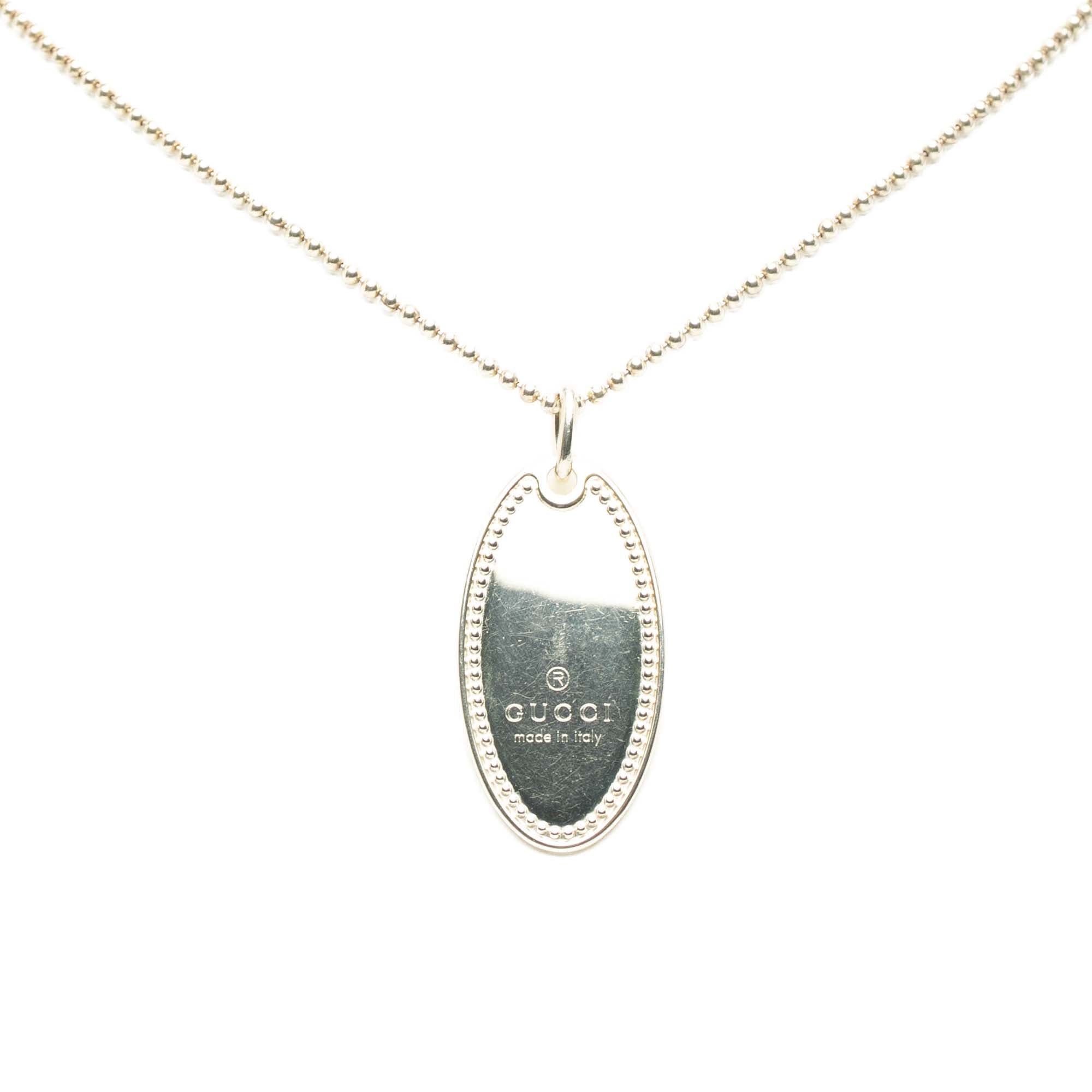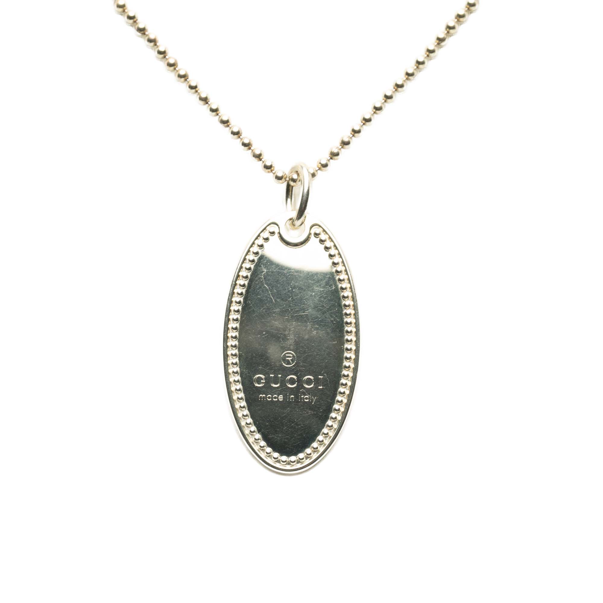 Gucci Sterling Silver Oval Plate Pendant Necklace