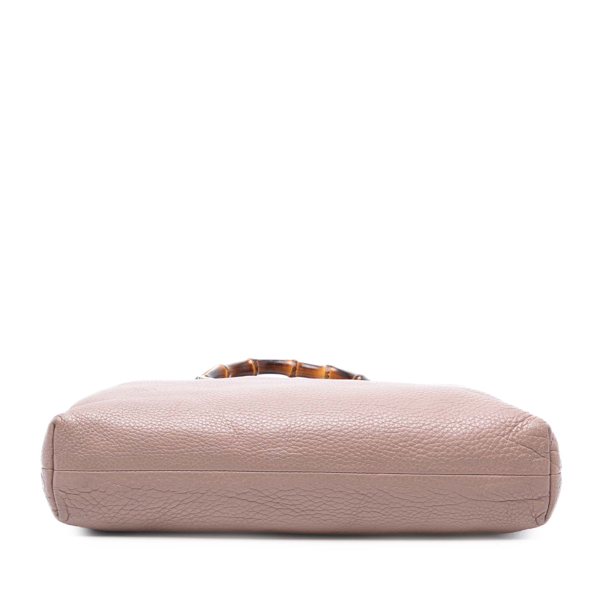 This satchel features a leather body, bamboo handles, an adjustable detachable flat leather strap, an open top with a magnetic closure, and interior zip and slip pockets. Retail Price: 1560.00