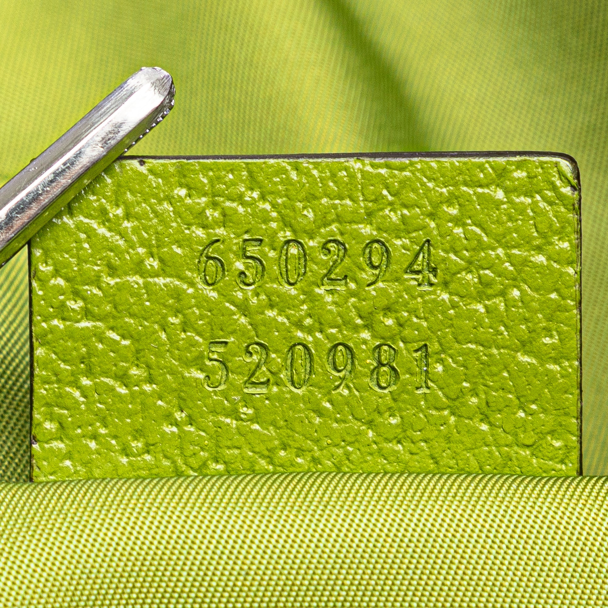 This backpack features a nylon body with leather trim, a flat top handle, a front flap and drawstring closure, flat back straps, and an interior zip pocket. Inclusion: Dust bag. Retail Price: 3600.00