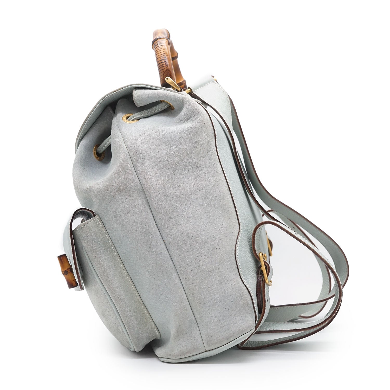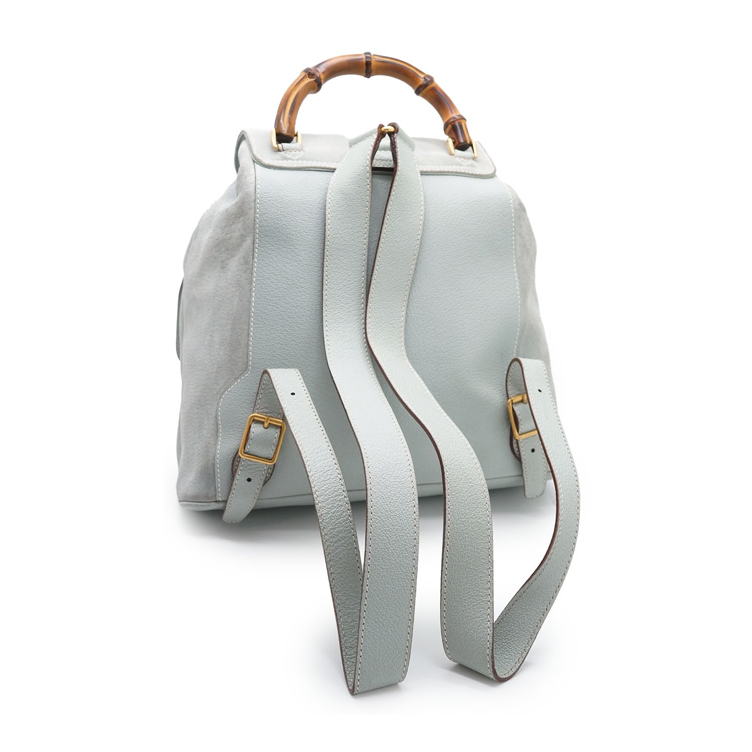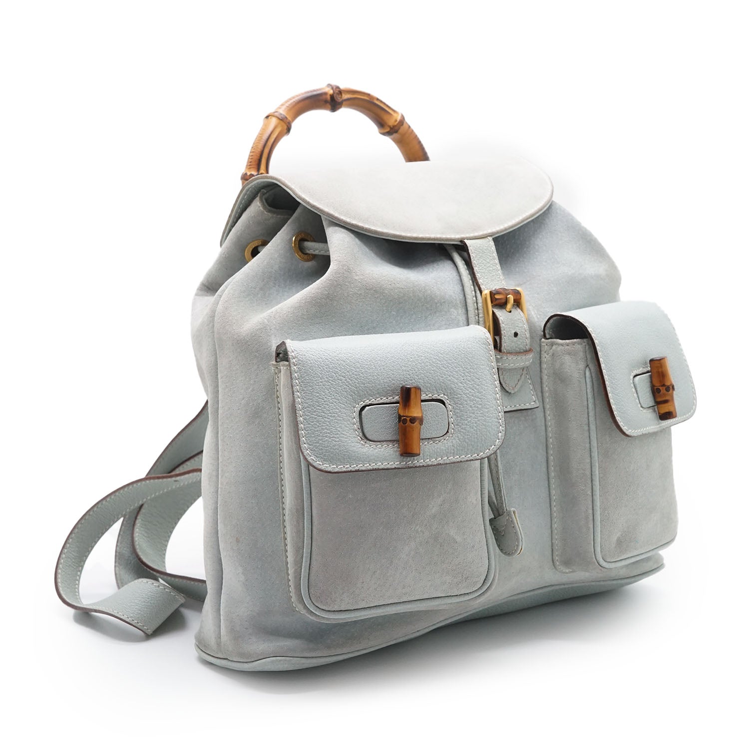 Vintage Bamboo Suede Backpack GM Light blue Suede, LeatherDepth: 9.5cmHeight: 30cmWidth: 30cmShoulder Drop: 36cmBOutside Rank: BInside Rank: ABStain: Faint dark discoloration on the outside (near the front pocket)Discoloration: Slight suede discolorationWorn: No visible signs of wearOdor: No odor presentSerial code: 003.2058.0016SKU: 7070072