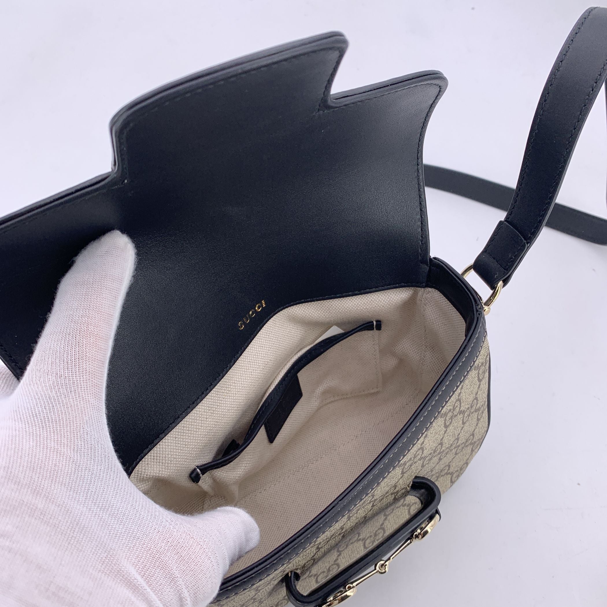 This Beautiful Bag Will Come With a Certificate Of Authenticity Provided By Entrupy. The Certificate Will Be Provided At No Further Cost. A Modern Homage To Gucci's Storied Past, This Beautiful 1955 Horsebit Soft Shoulder Bag Reinterprets a House Icon First Introduced In The Mid-20th Century. Crafted In Beige Monogram Canvas With Sleek Black Leather Trim, It Strikes The Perfect Balance Between Heritage And Contemporary Style. The Signature Gold Metal Horsebit Shines On The Front, While Half-horsebit