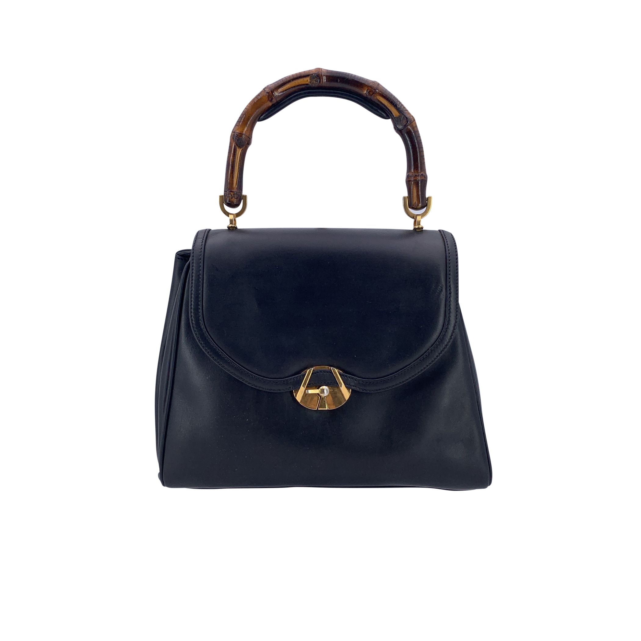 A Timeless Piece From Gucci's Storied Past, This Vintage Black Leather Handbag Captures The House's Signature Elegance. Its Sculptural Bamboo Handle-an Iconic Detail First Introduced By Gucci Artisans In The 1940s-sets It Apart With Understated Sophistication. The Smooth Flap Closes With a Sleek Twist Lock, Opening To Reveal a Striking Red Suede Lining That Speaks Of Quiet Luxury. Inside, Thoughtful Organization Awaits: Three Side Open Pockets And One Secure Zip Pocket, Perfect For Keeping Essentials Close At Hand. Stamped Discreetly With "Made In Italy By Gucci", This Handbag Is Both a Testament To Italian Craftsmanship And a Collector's Piece For Lovers Of Enduring Style.