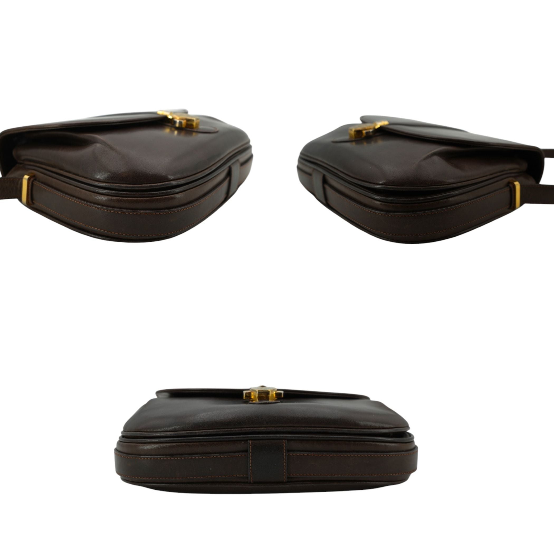 Step Back Into The Sophisticated Era Of The 1980s With This Exquisite Gucci Vintage Crossbody Messenger Bag. A True Treasure For Any Second-hand Enthusiast, This Medium-sized Piece Is Masterfully Crafted From Smooth Brown Leather In France, Showcasing a Minimalist Plain Pattern That Radiates Timeless French Elegance. Its Structured Flap Closure Opens To Reveal a Well-organized Interior Featuring Dedicated Compartments And a Pocket, Perfect For Keeping Your Daily Essentials Secure. While This Specific Model Is An Unsigned Piece, Its High-quality Leather Construction And Gleaming Gold Metal Hardware Speak To The Enduring Luxury Of The House Of Gucci. The Adjustable Shoulder Strap Provides Effortless Versatility, Allowing You To Transition From a Classic Shoulder Bag To a Practical Crossbody Style. Despite The Absence Of a Modern Datacode, Its Authentic Vintage Character And 1980s Heritage Make It a Unique Staple For Any Curated Collection.