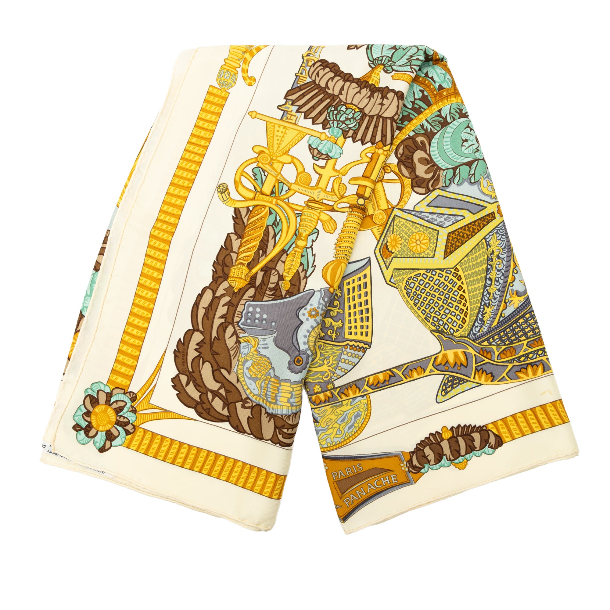 This scarf features the Armets en Panache print on 100% silk. Retail Price: 590.00