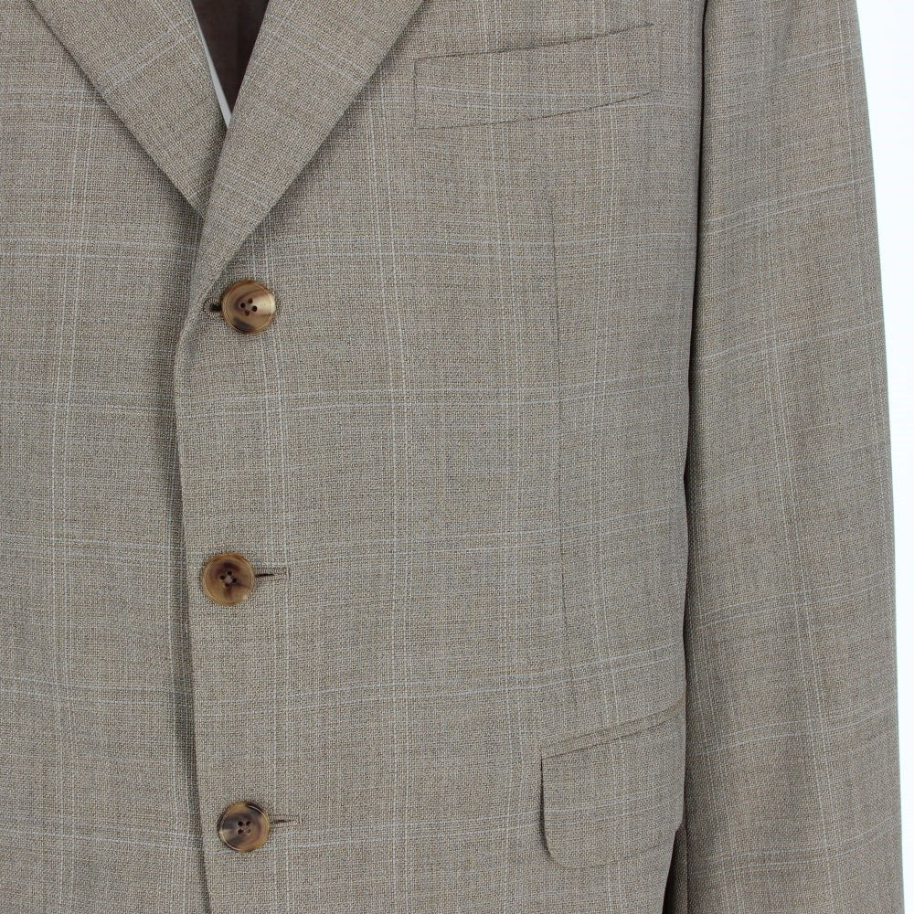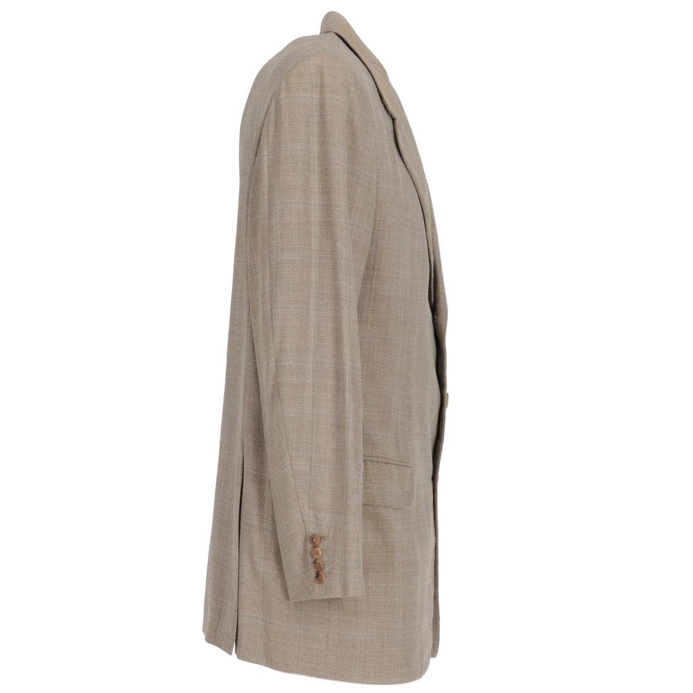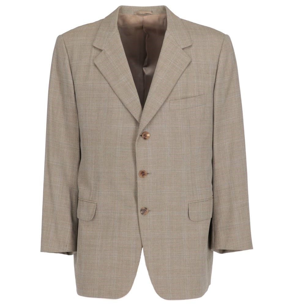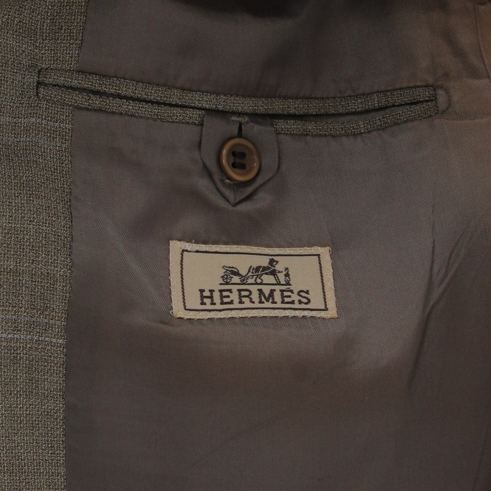 Hermès 90s beige herringbone wool jacket. Classic lapel collar, two front welt pockets and closure with buttons. The item shows a front spot, as shown in the pictures.
