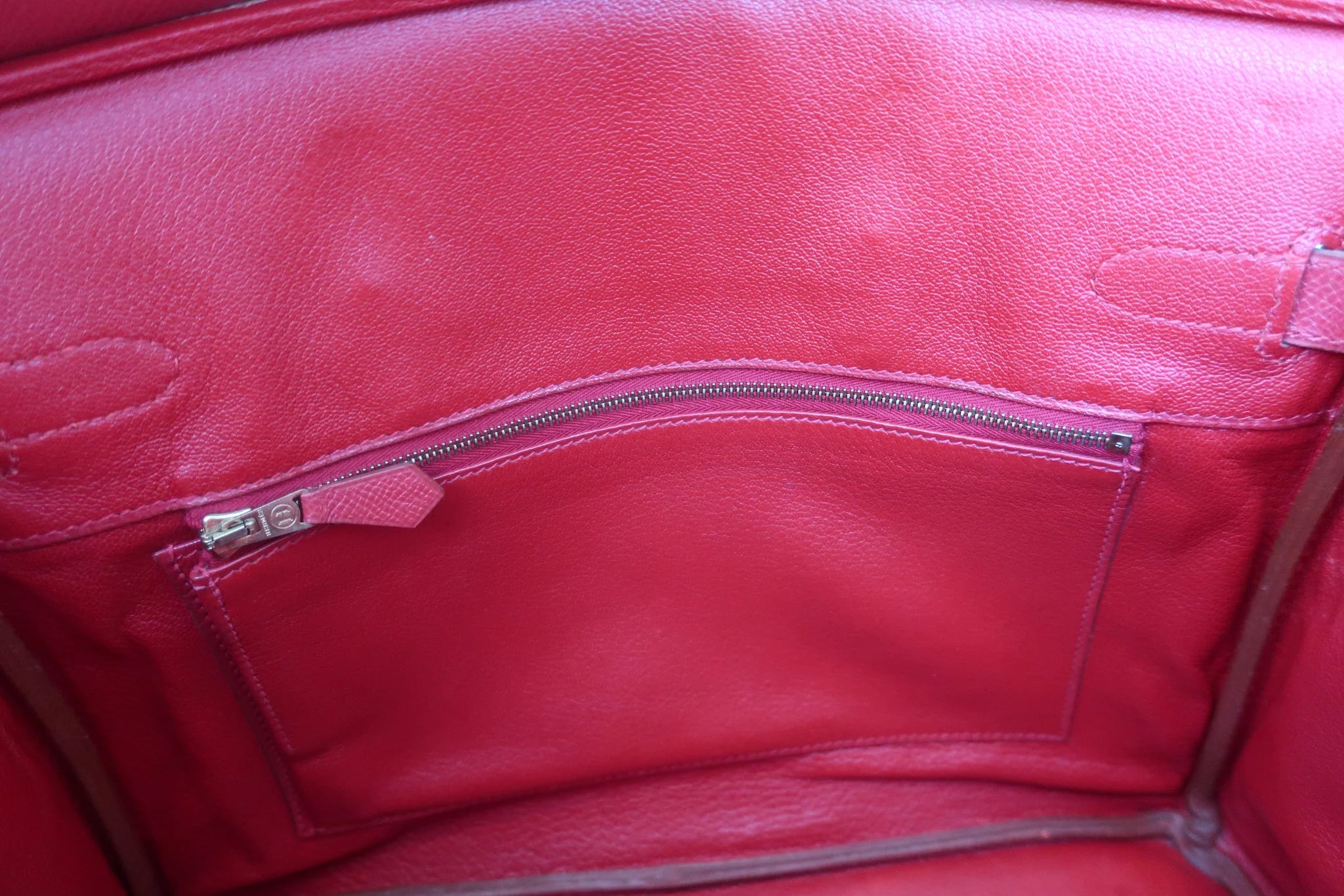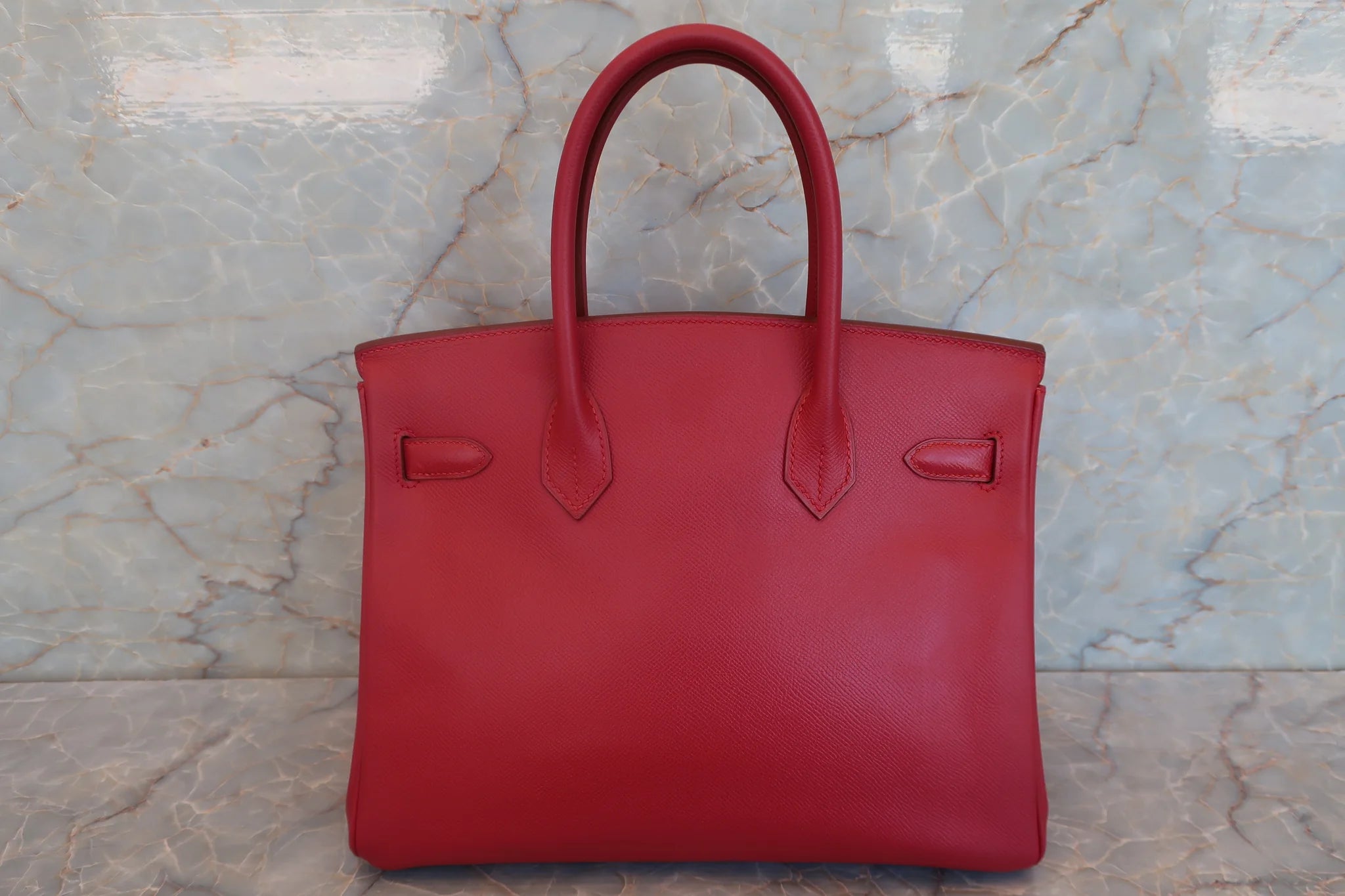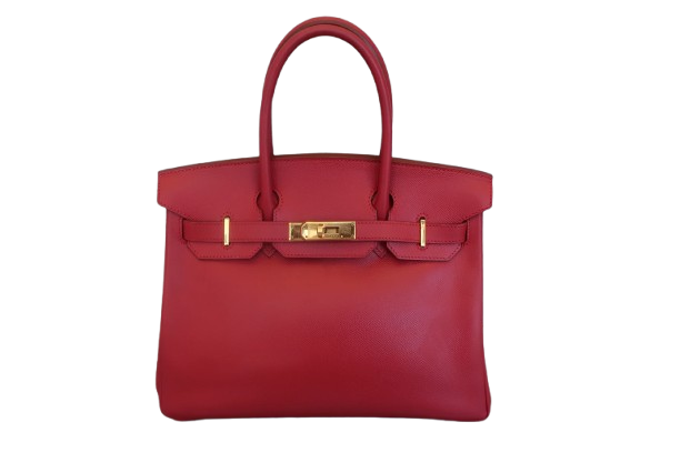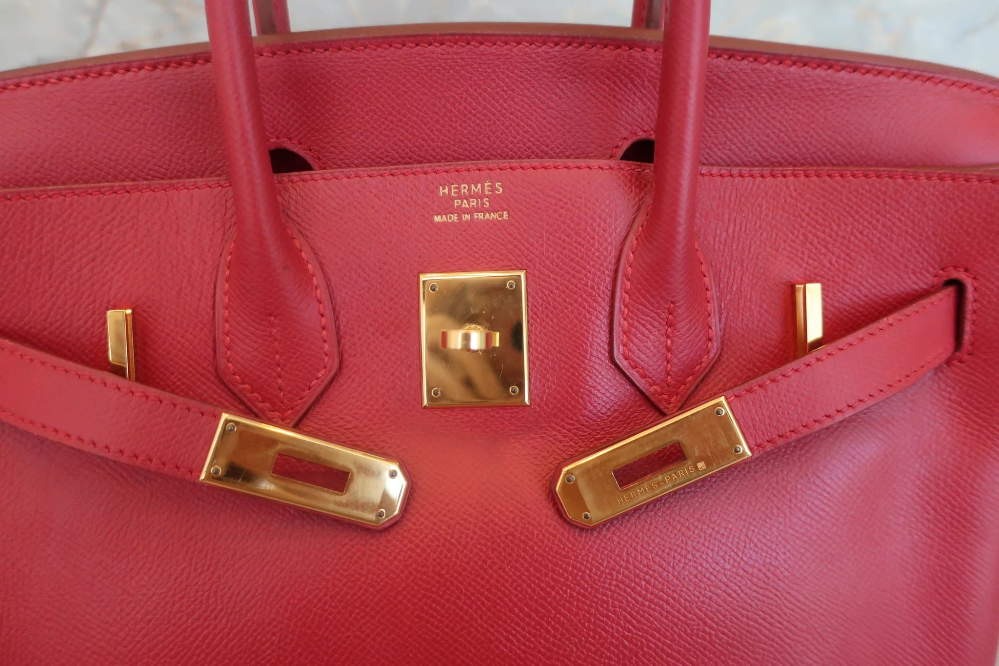 Brand : Hermes Model : Birkin handbag Style : Red courchevel with gold hardware Dimensions (W x H x D) : 30cm x 22cm x 16cm Serial number : A Inclusions : Dust bag,padlock,clochette,key