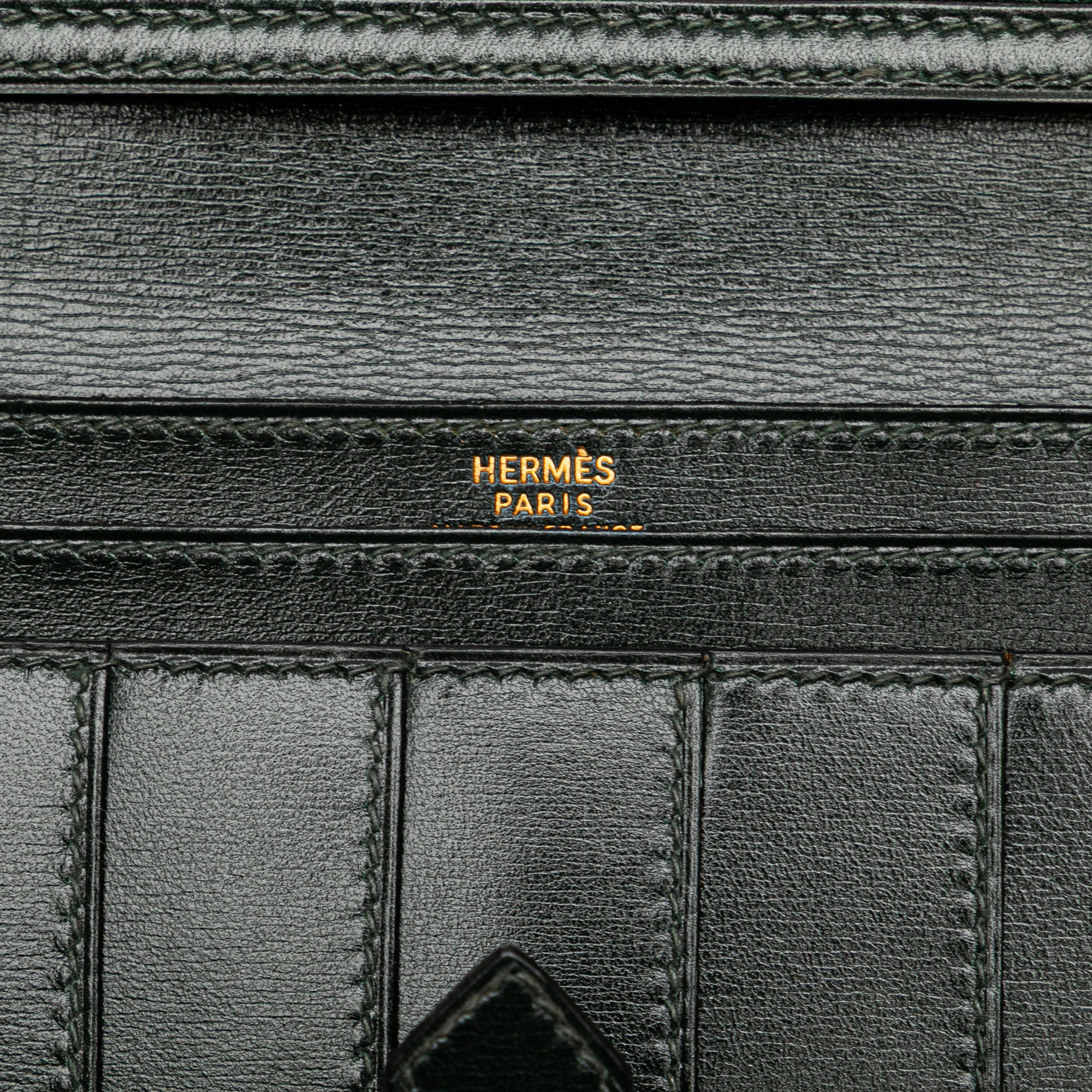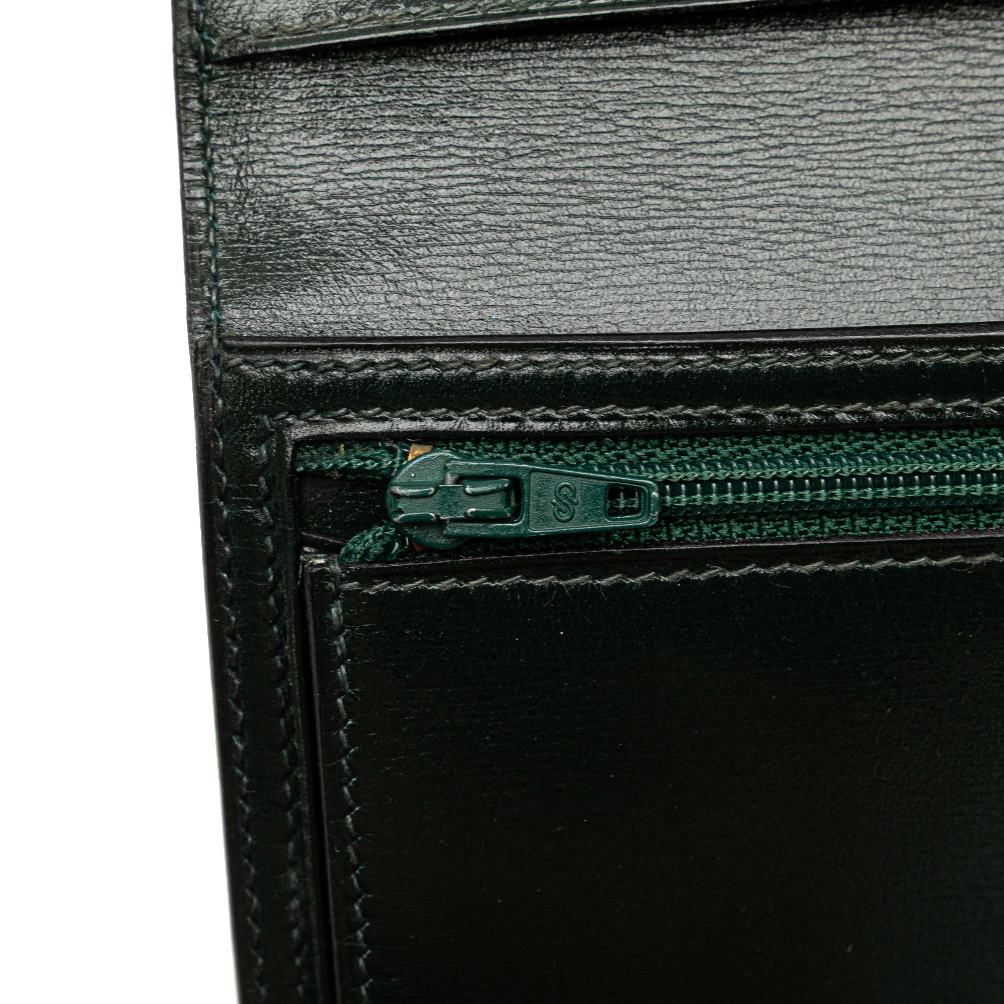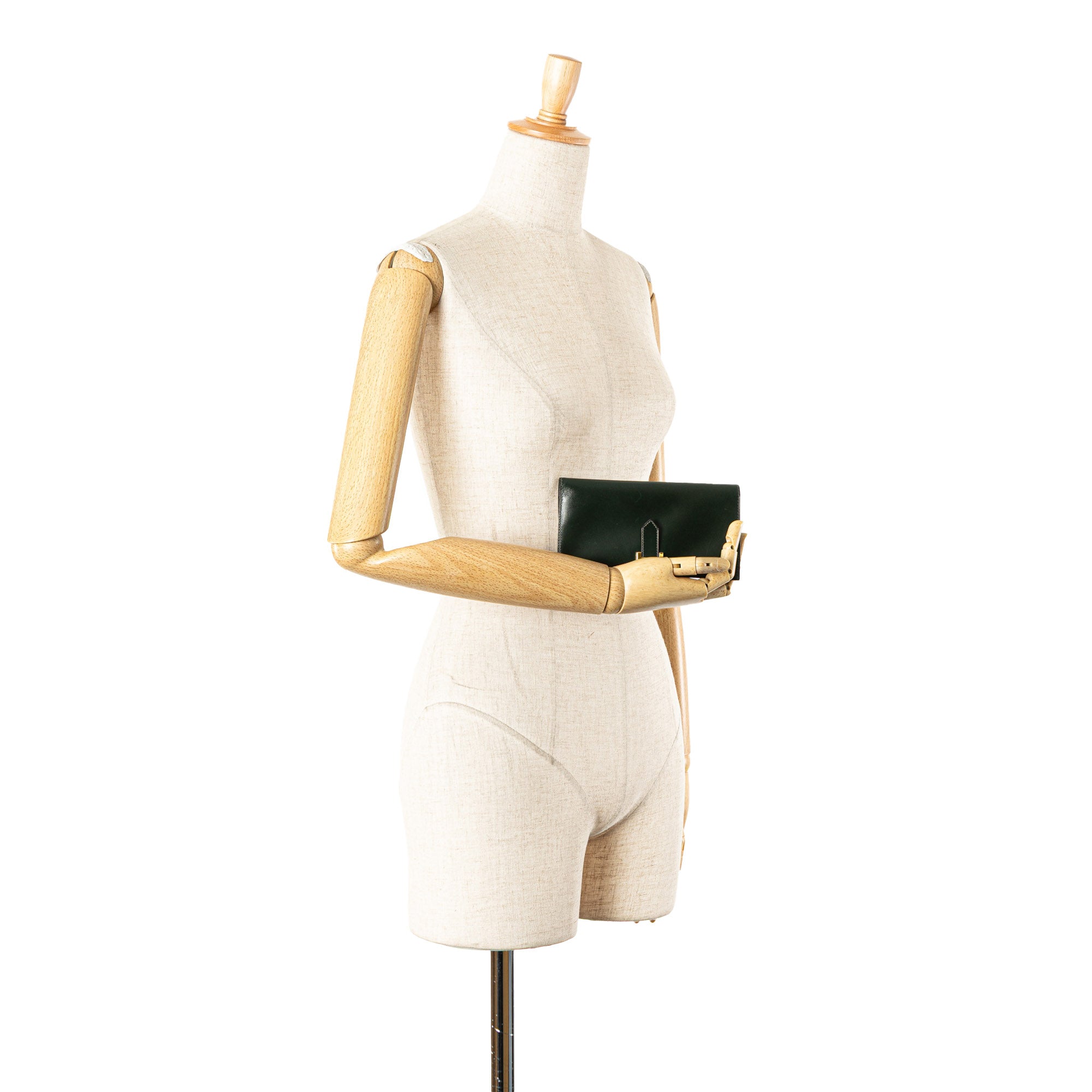 The Bearn features a box calf leather body, a flat leather strap with pull through closure, and interior zip and slip pockets. Retail Price: 2650.00