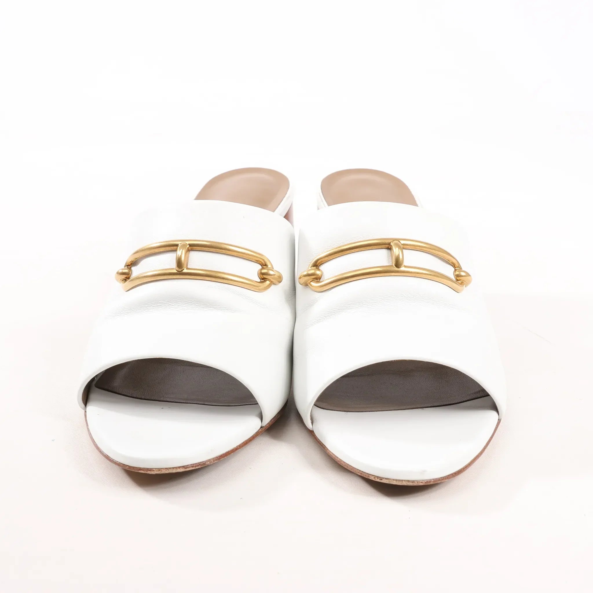 Hermès Camilla Leather Louris Buckle Mule Sandals in White, Size 37.5 EU