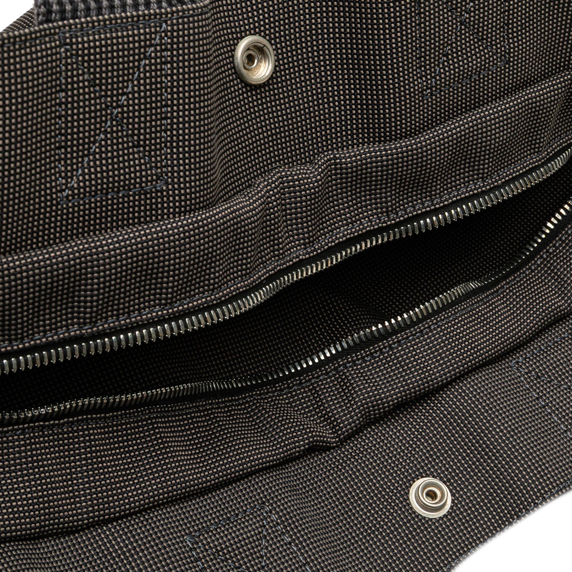 The Herline Tote MM features a canvas body, exterior front and back slip pockets, flat handles, a top zip closure, and an interior slip pocket. Retail Price: 562.00