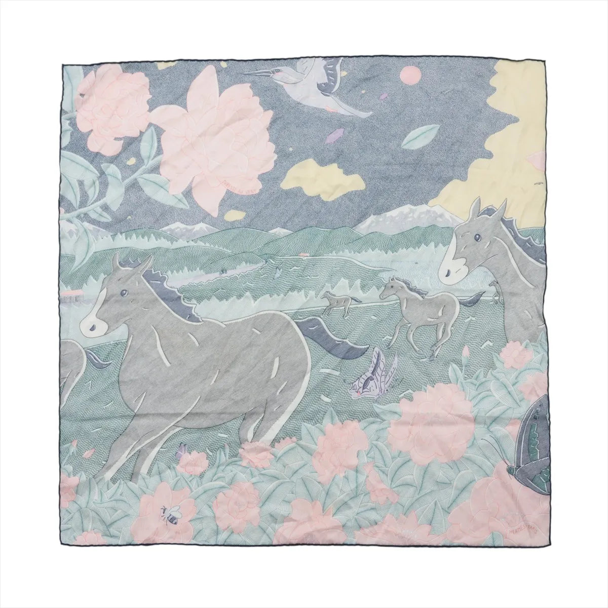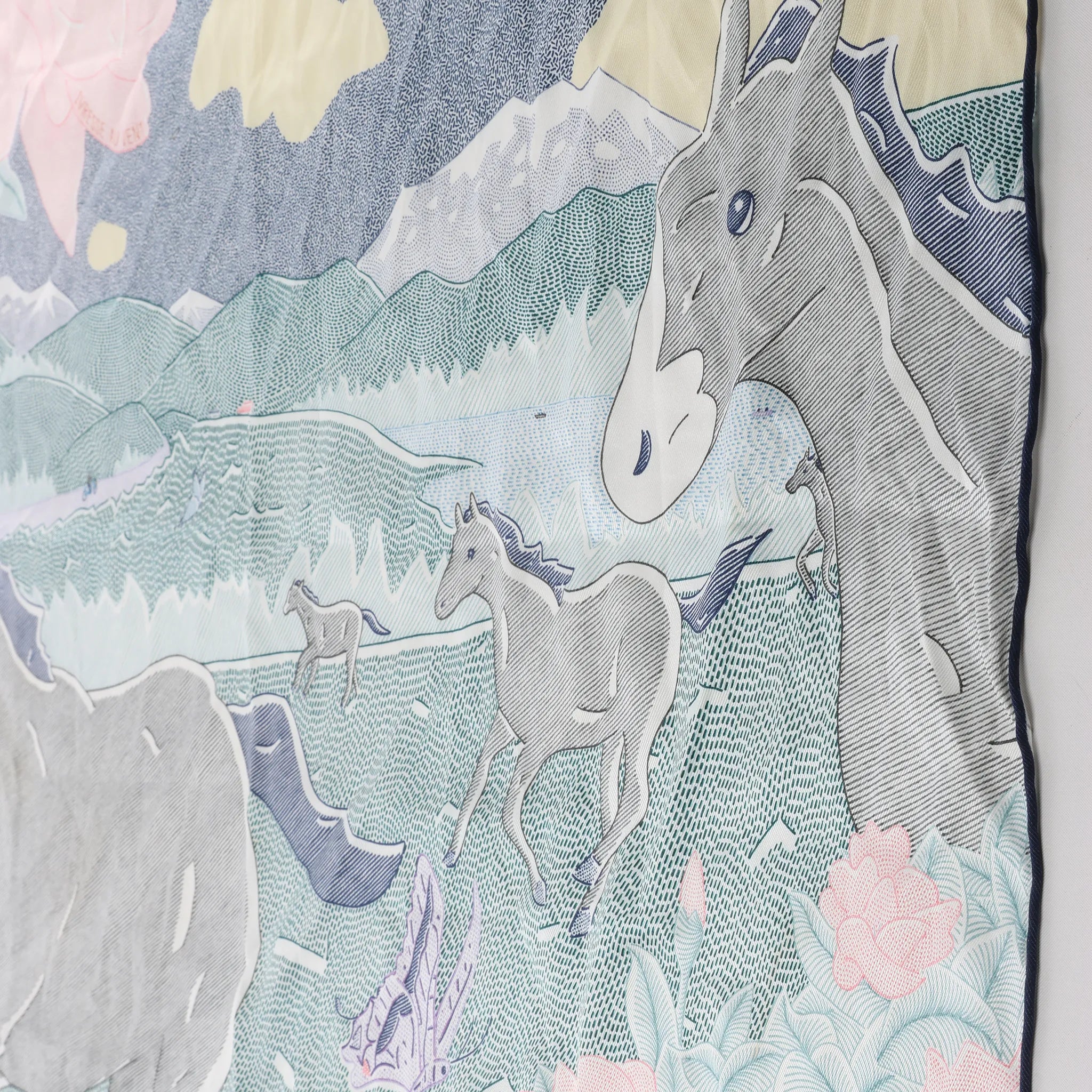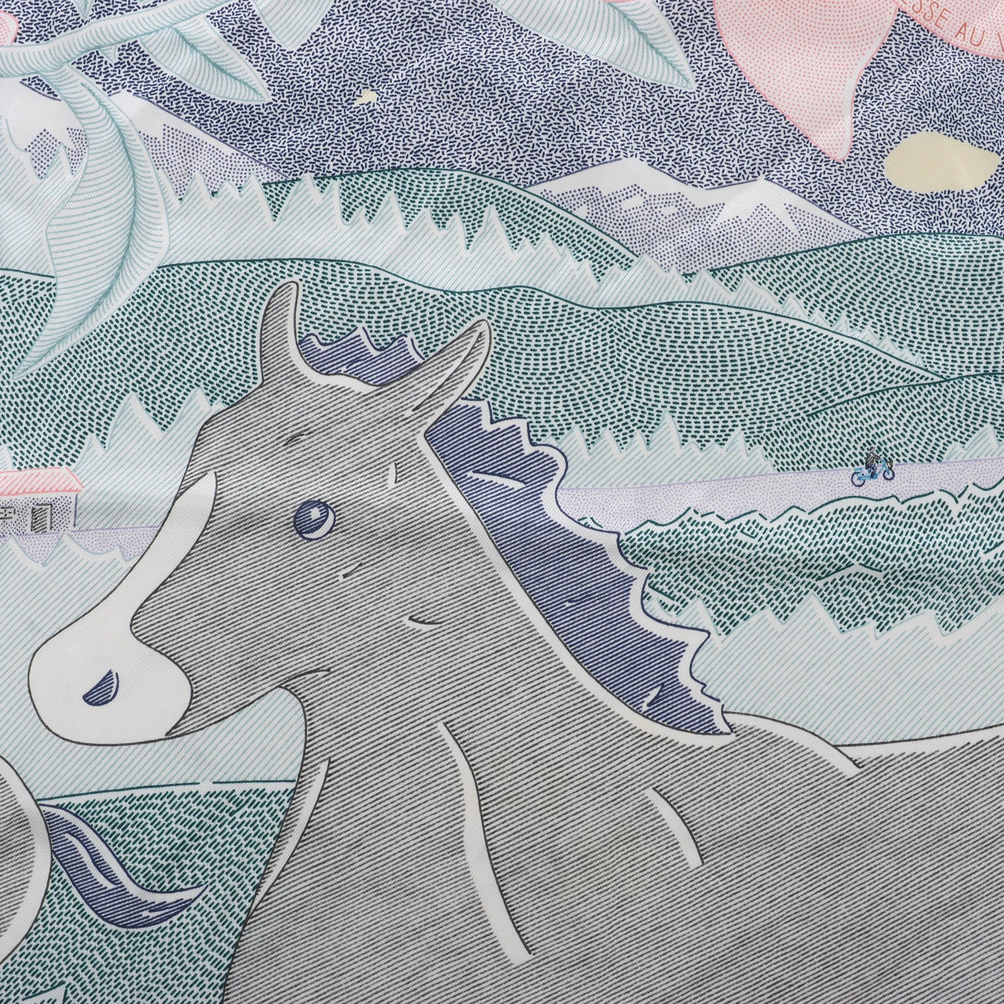 Hermès Carré 70 "Drunk by the wind" Silk handkerchief in Gray