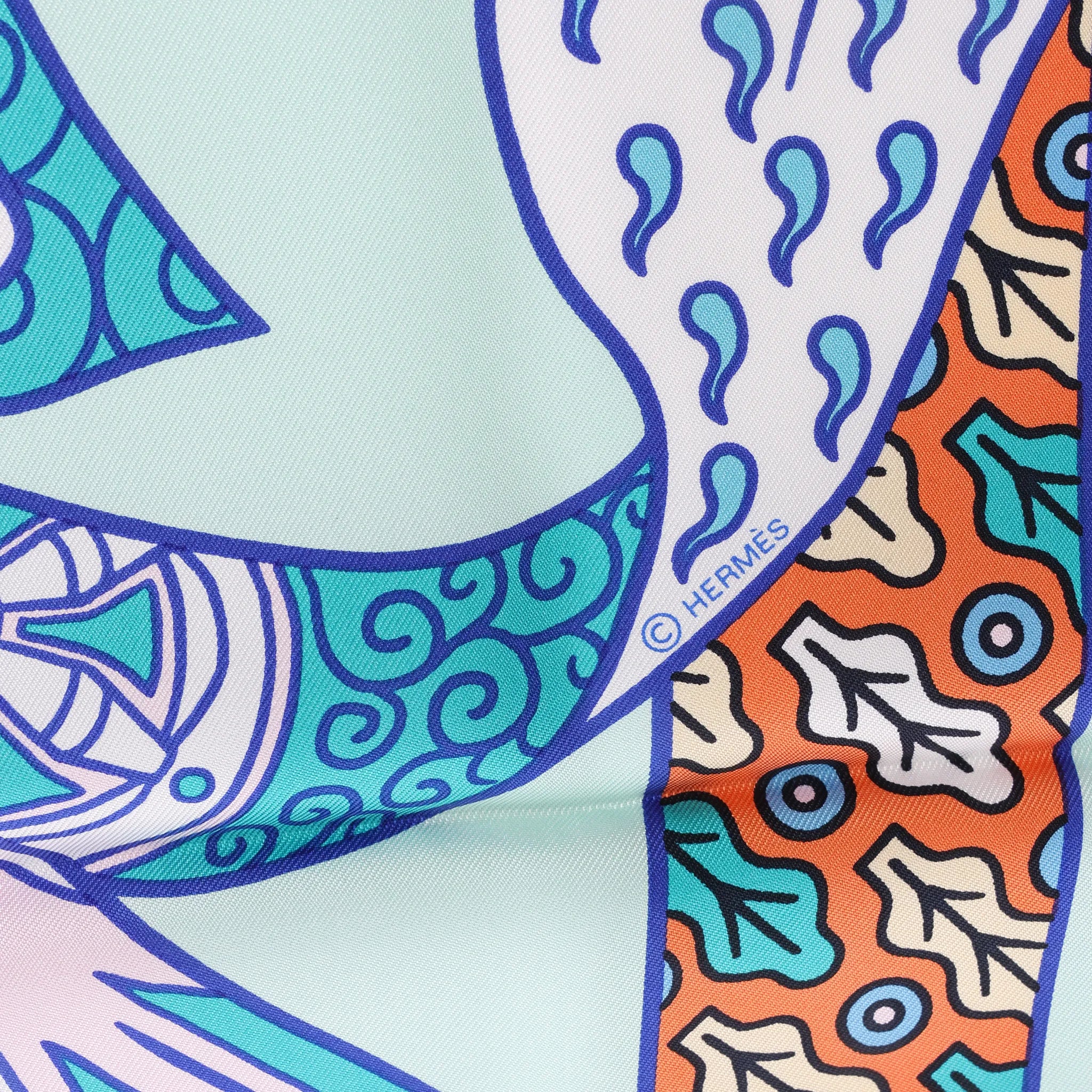 Hermès Carré 90 "DUELS ONIRIQUES" Silk handkerchief in Blue