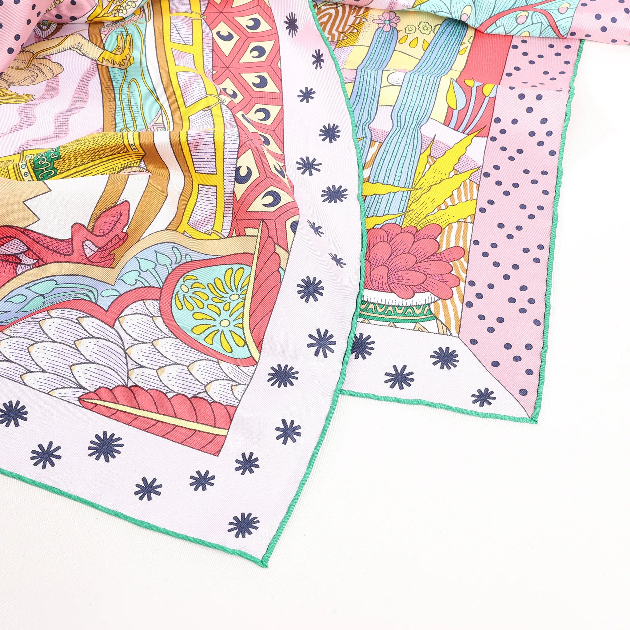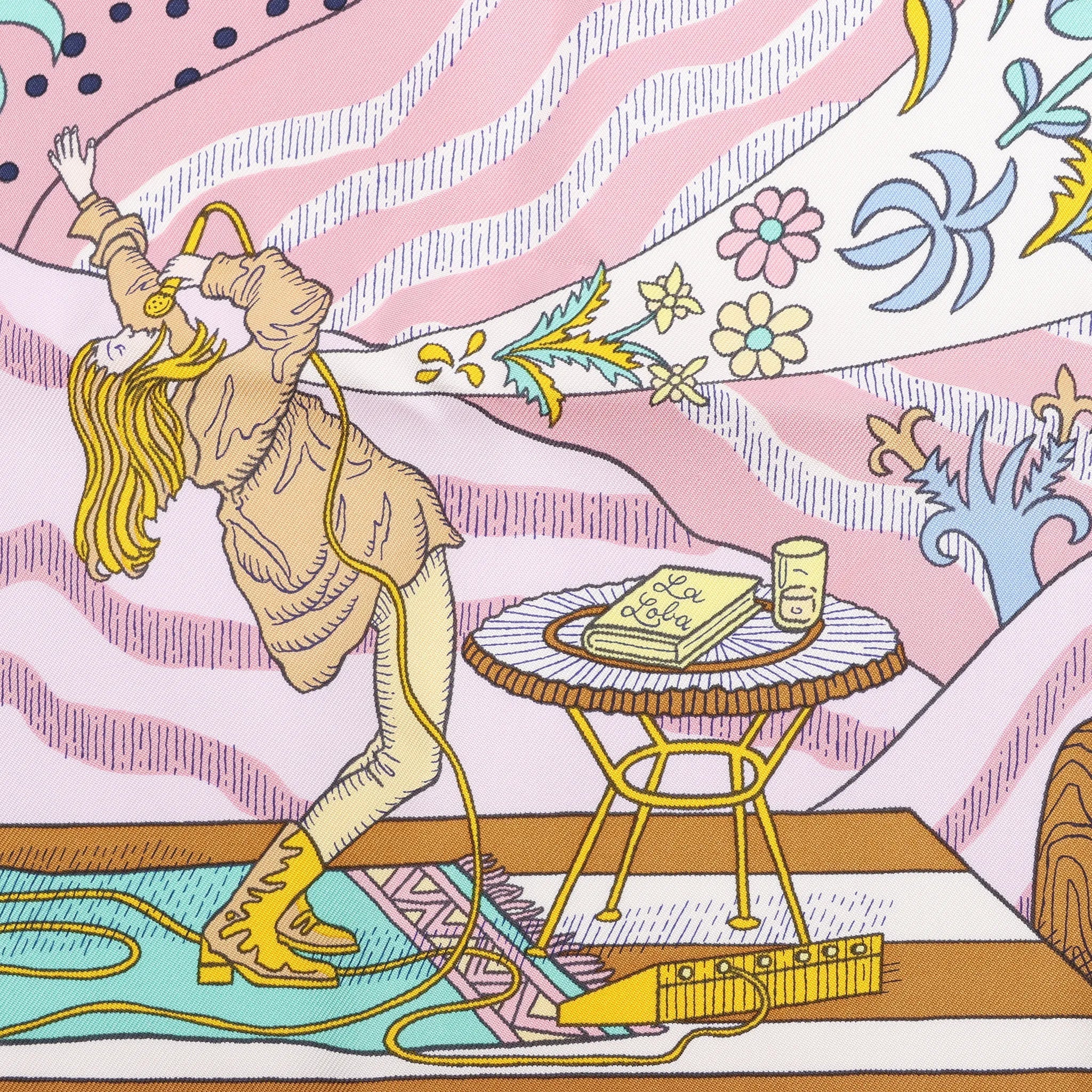 Discover the Hermès Carré 90 "Le Premier Chant" in Pink, a luxurious silk scarf showcasing a whimsical, storybook-inspired design with vibrant colors and intricate detail - an artistic piece that adds elegance and character to any ensemble.