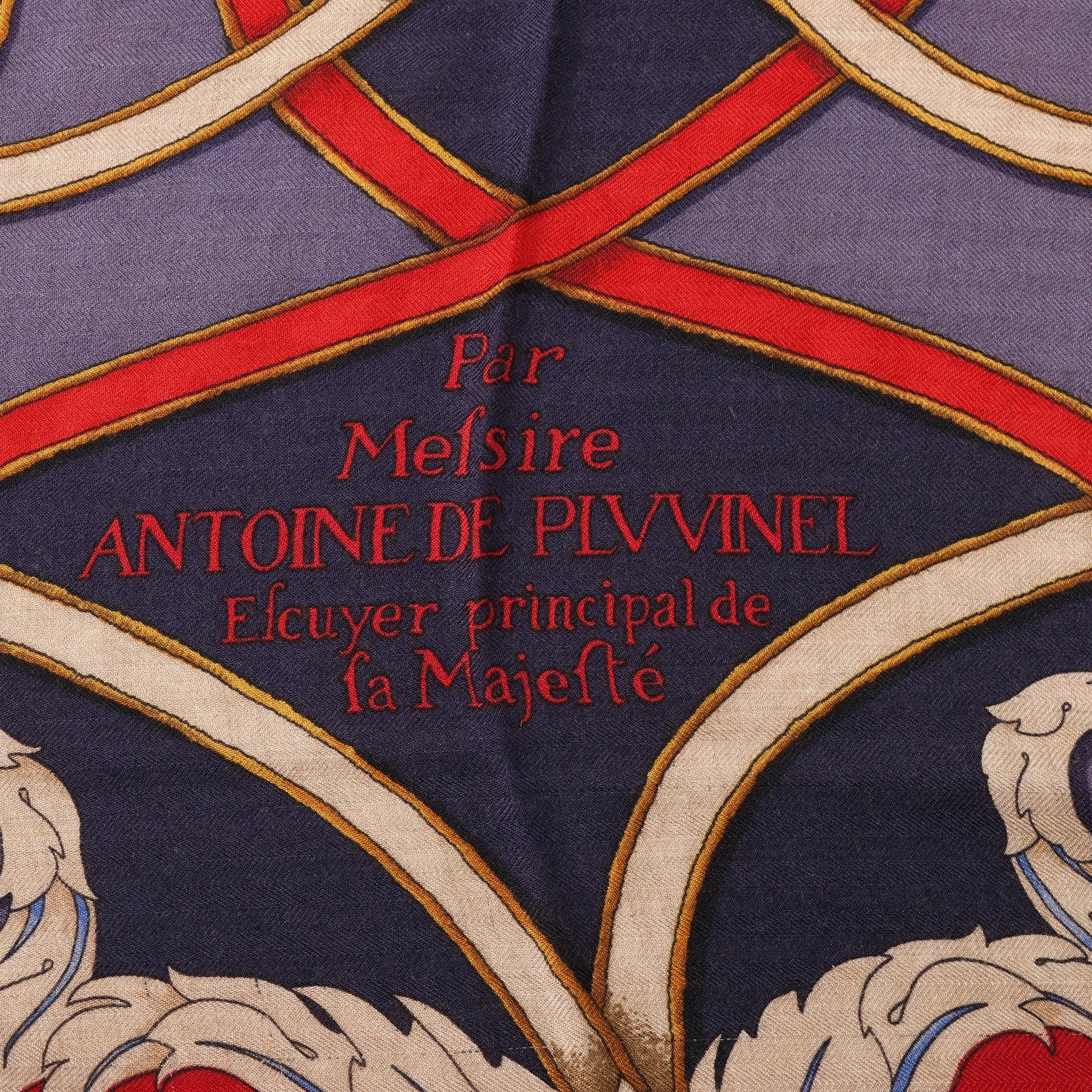 Hermès Carré Géant "L'INSTRUCTION DUROY" Cashmere & Silk Scarf in in Navy Blue x Red