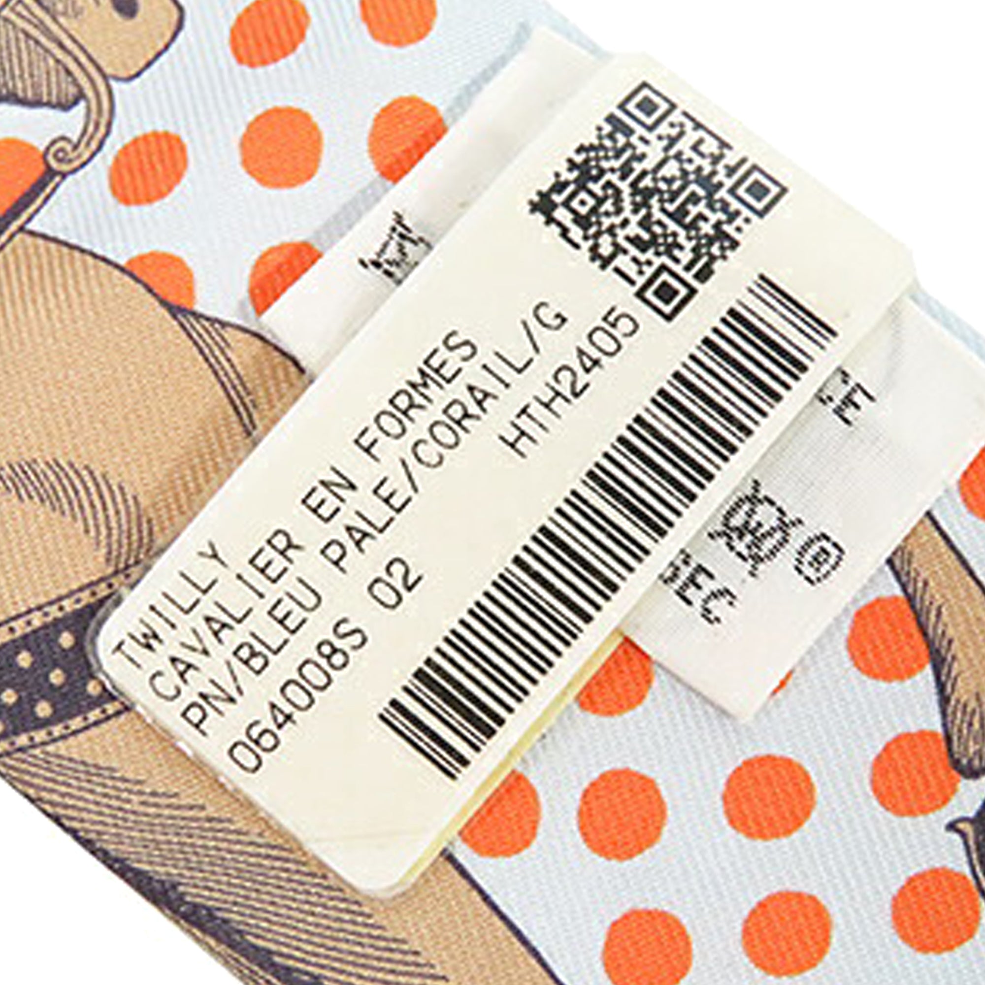 This twilly scarf features a Cavalier en Formes print on 100% silk. Inclusion: box. Retail Price: 387.00