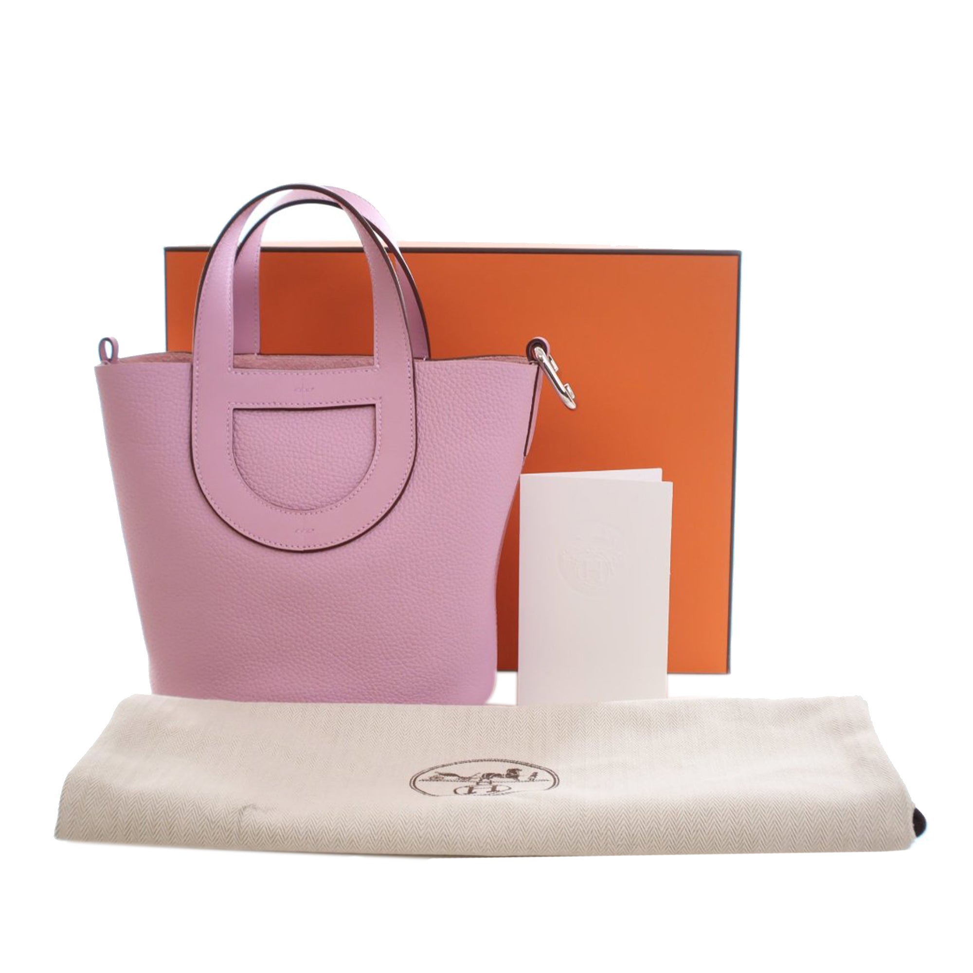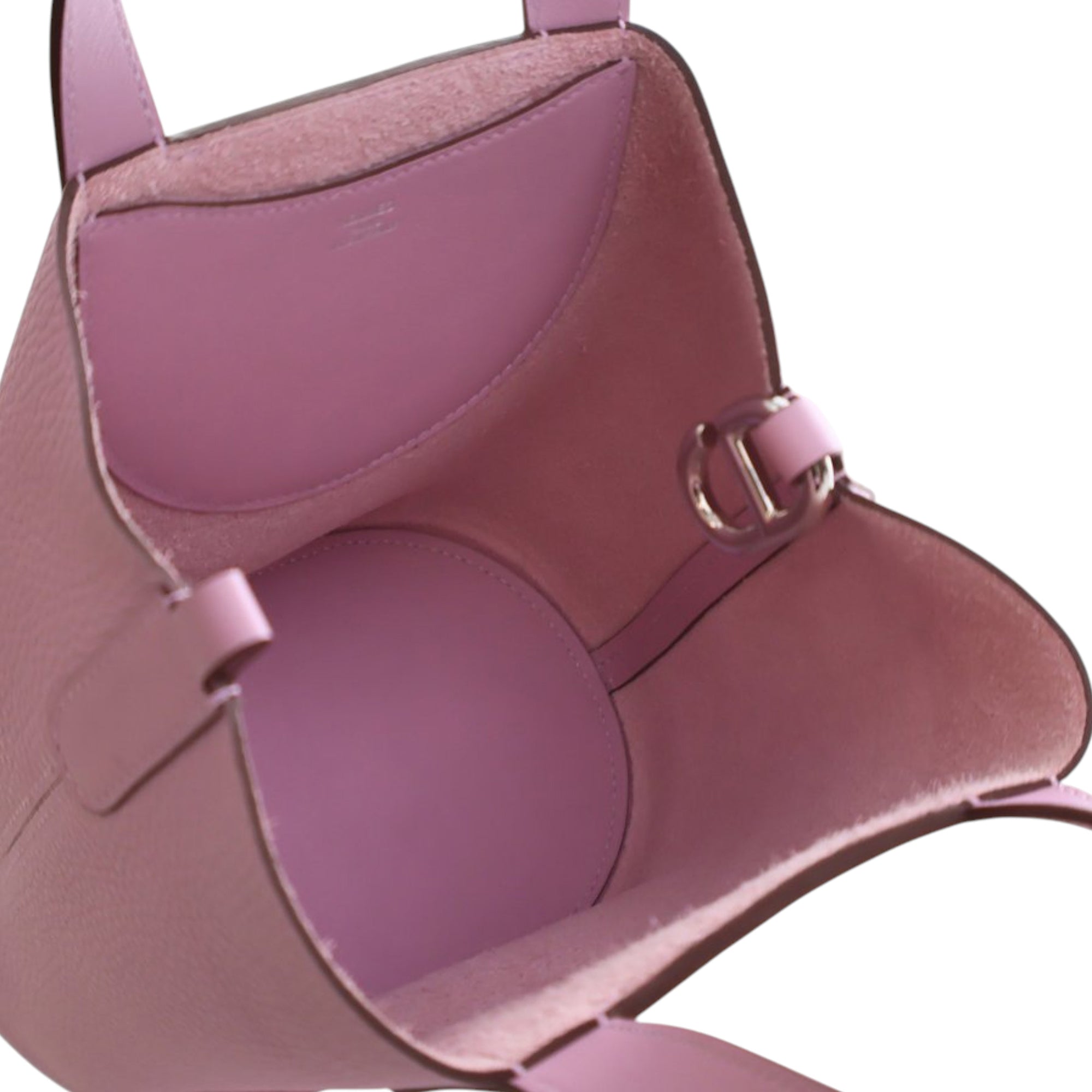 This handbag features a Clemence and Swift leather body in Mauve Sylvestre color, flat leather handles, an open top with hook closure, and an interior slip pocket. Inclusion: Dust bag, box. Retail Price: 5250.00