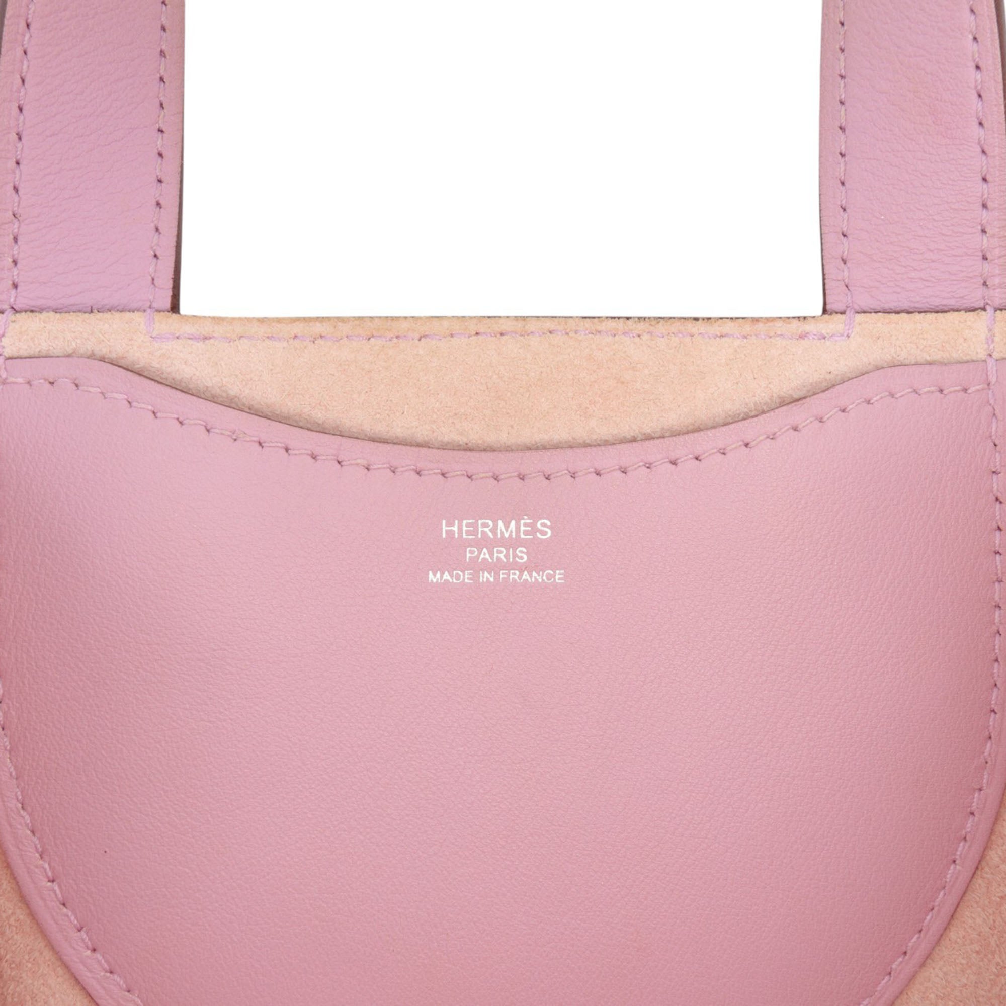 This handbag features a Clemence and Swift leather body in Mauve Sylvestre color, flat leather handles, an open top with hook closure, and an interior slip pocket. Inclusion: Dust bag, box. Retail Price: 5500.00