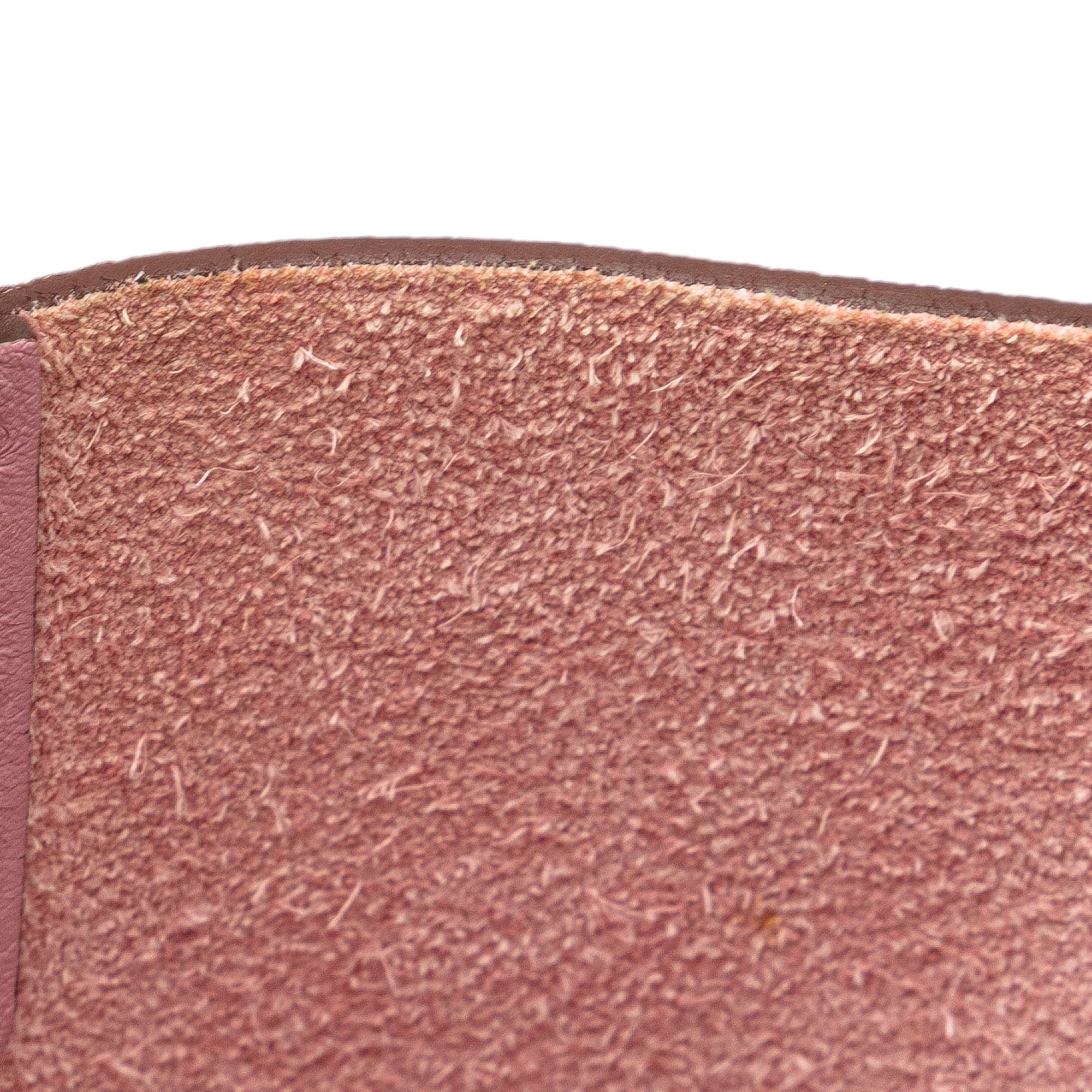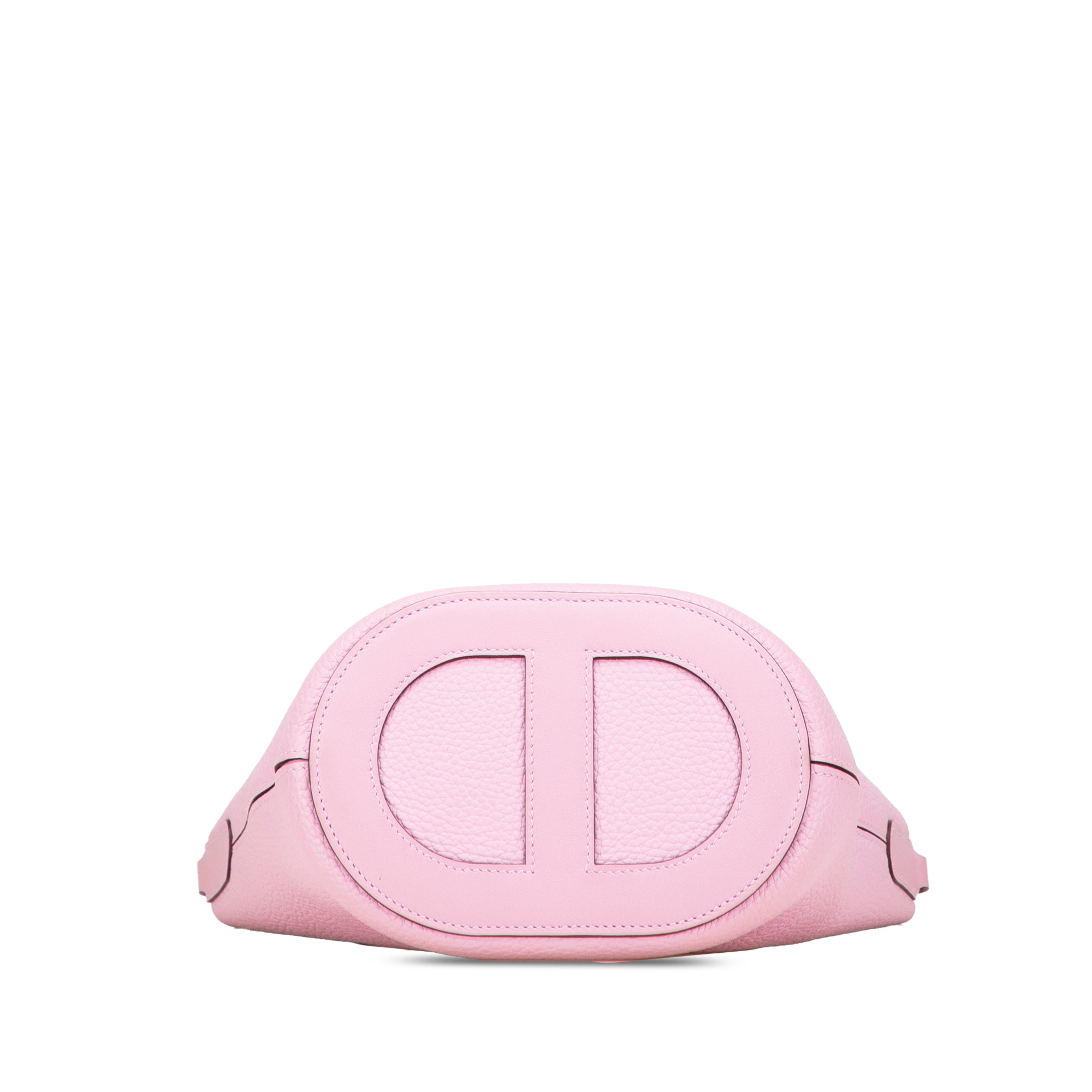 This handbag features a Clemence and Swift leather body in Mauve Sylvestre color, flat leather handles, an open top with hook closure, and an interior slip pocket. Retail Price: 5850.00