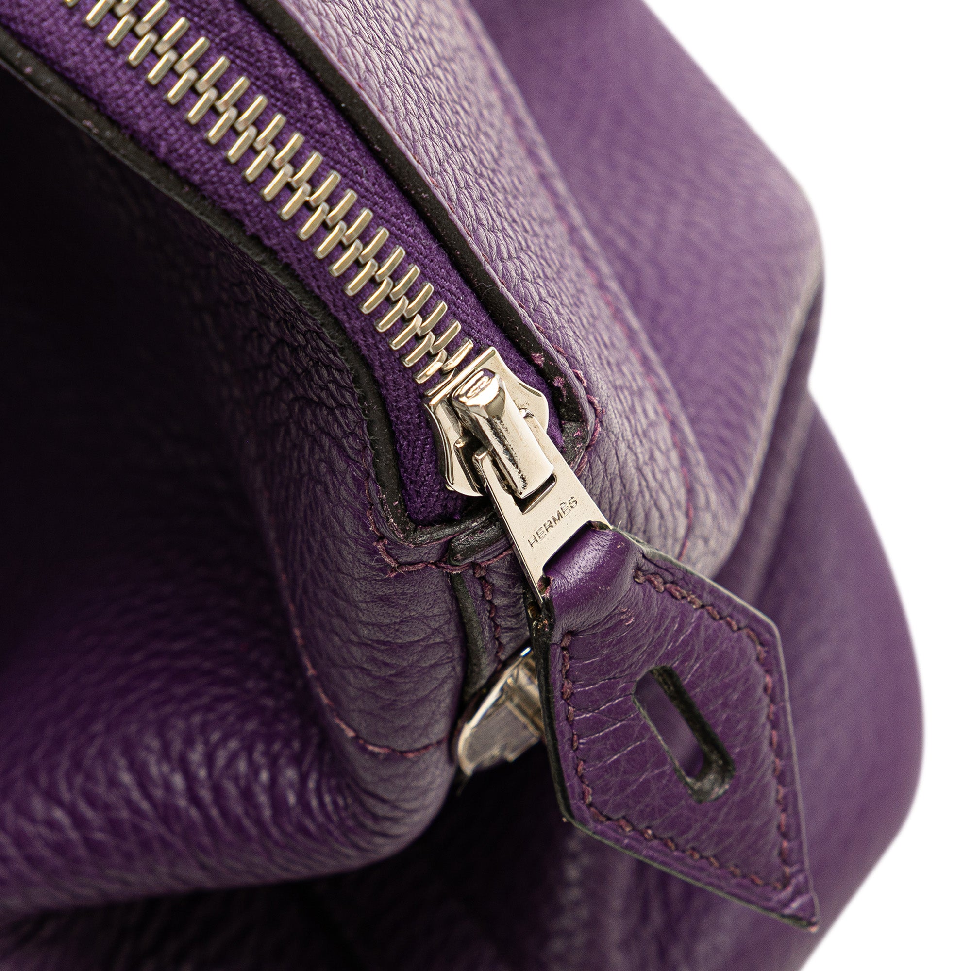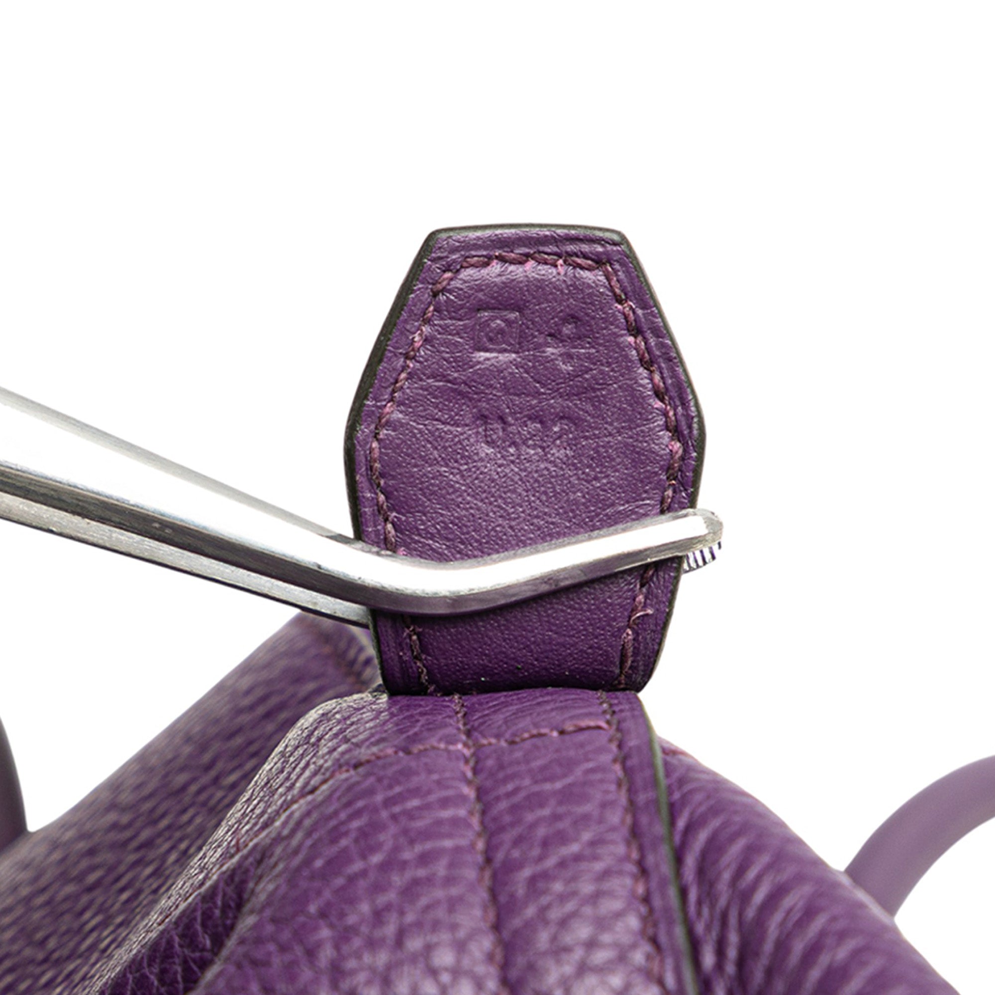 This Bolide 35 features a Clemence leather body in Ultraviolet color, a rolled leather handle, a detachable strap, a top zip closure, and an interior slip pocket. Retail Price: 7000.00