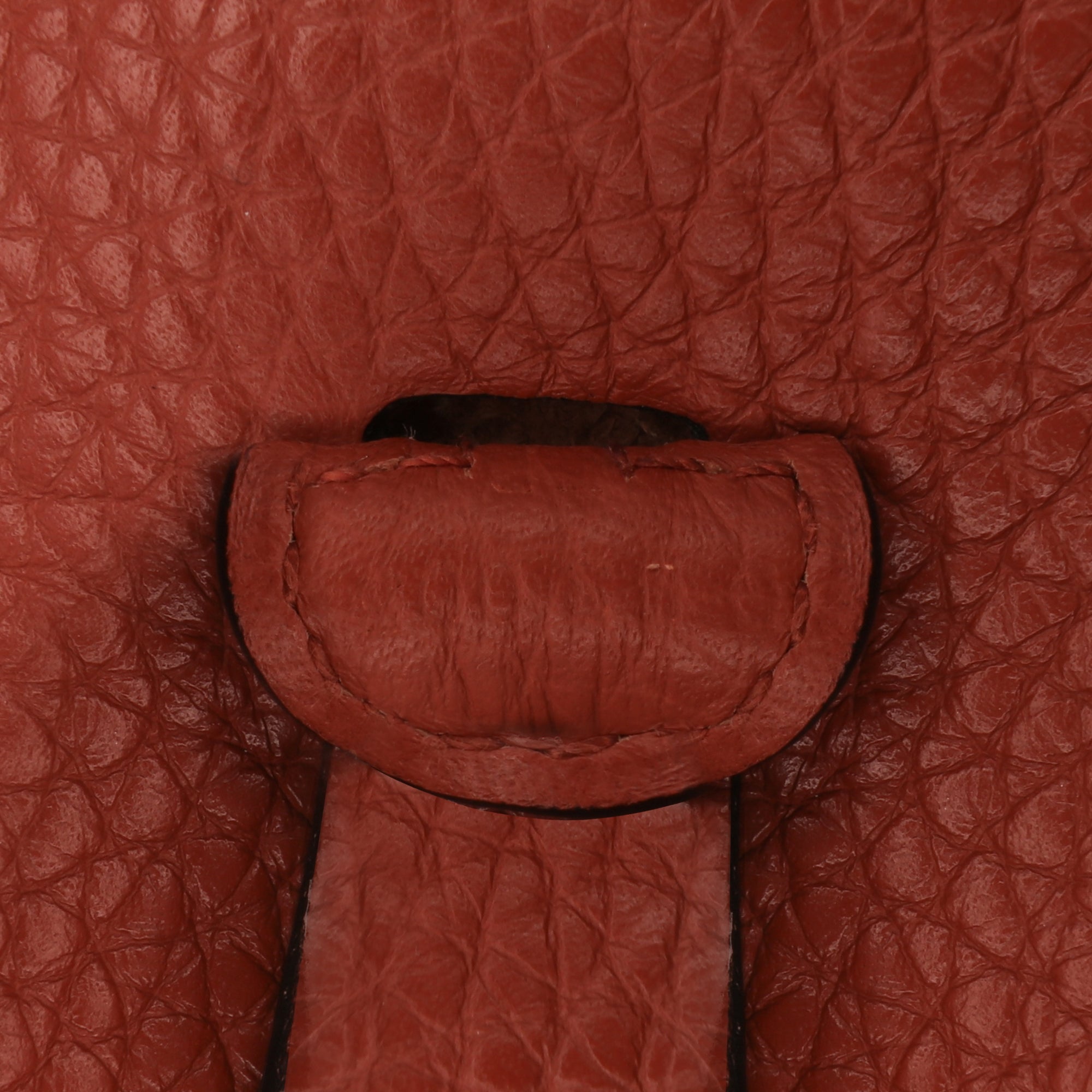 This Evelyne TPM features a Clemence leather body in Cuivre color, a detachable flat strap, and an open top with a tuck closure. Retail Price: 5000.00