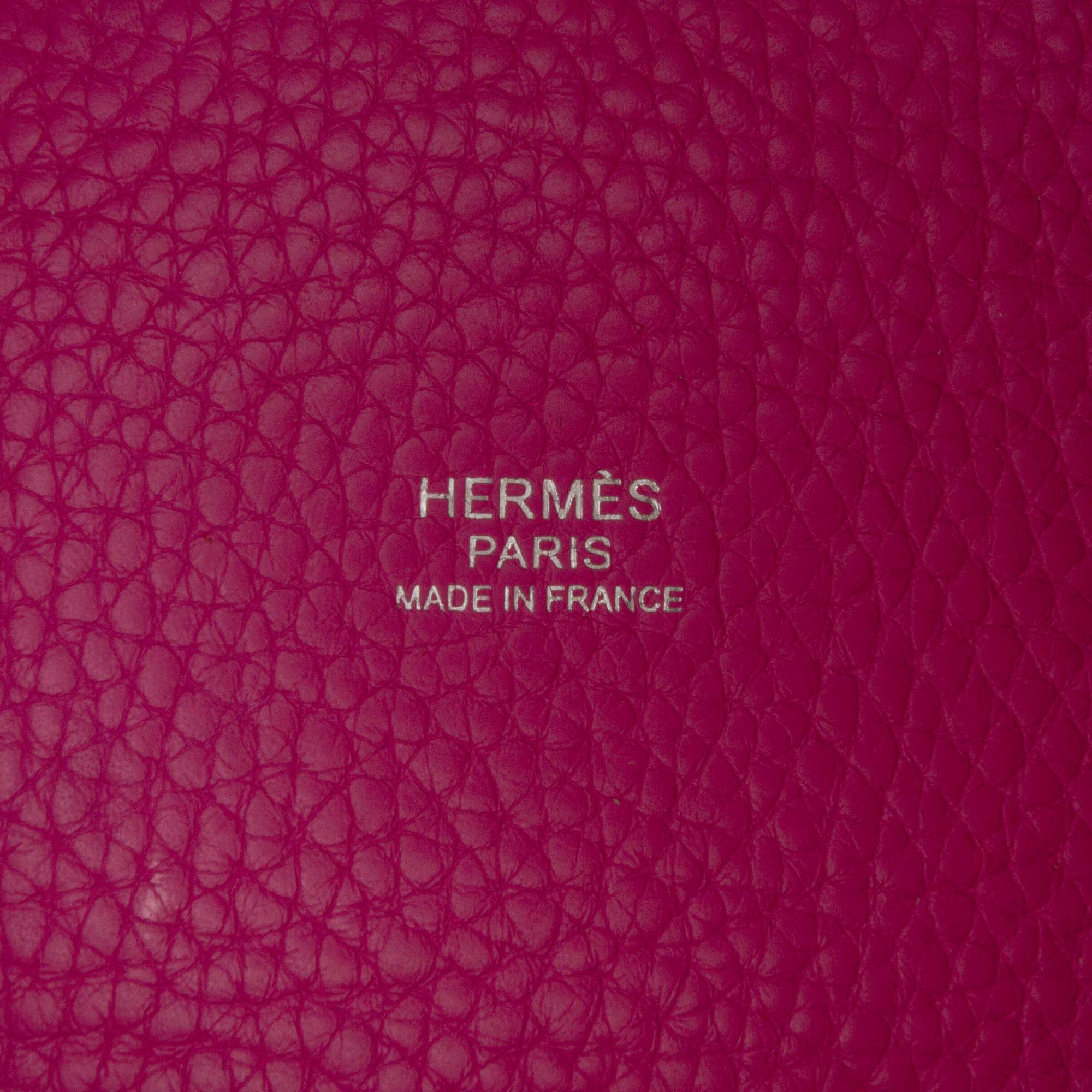 This Picotin Lock 18 features a Clemence leather body in Magnolia color, flat leather handles, and an open top with a pull through strap and lock closure. Retail Price: 4550.00
