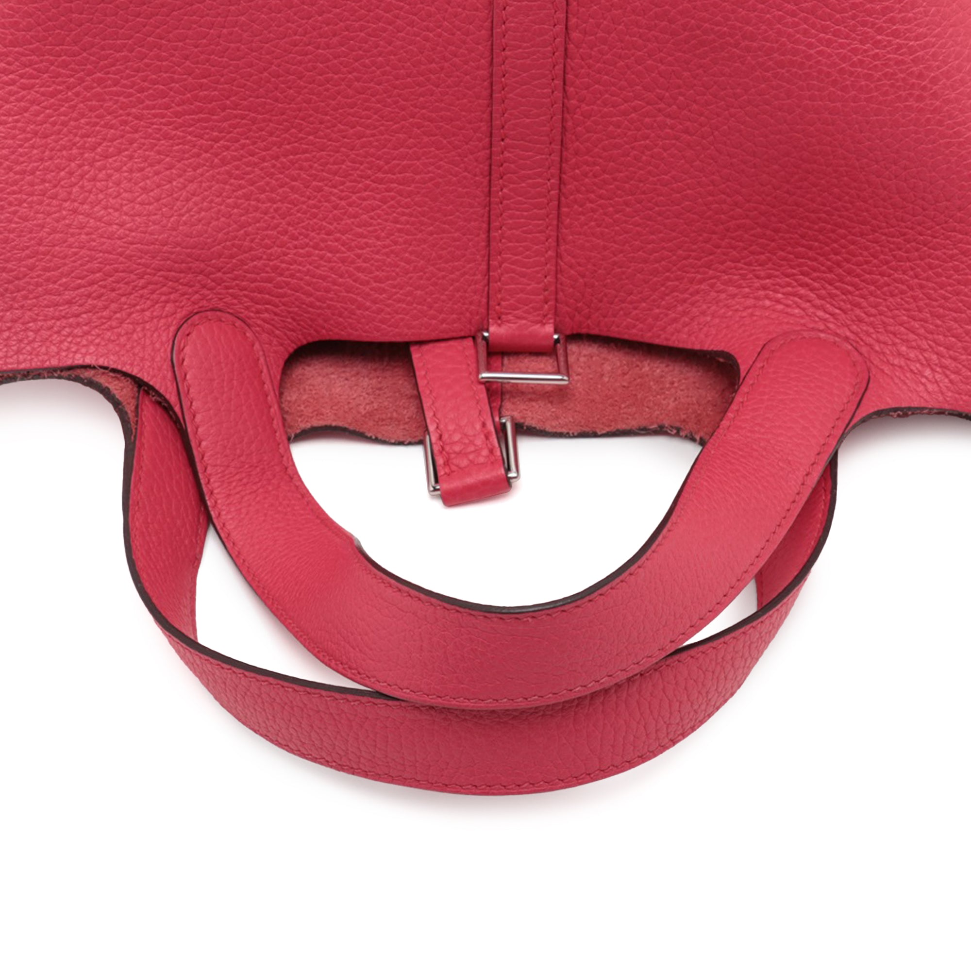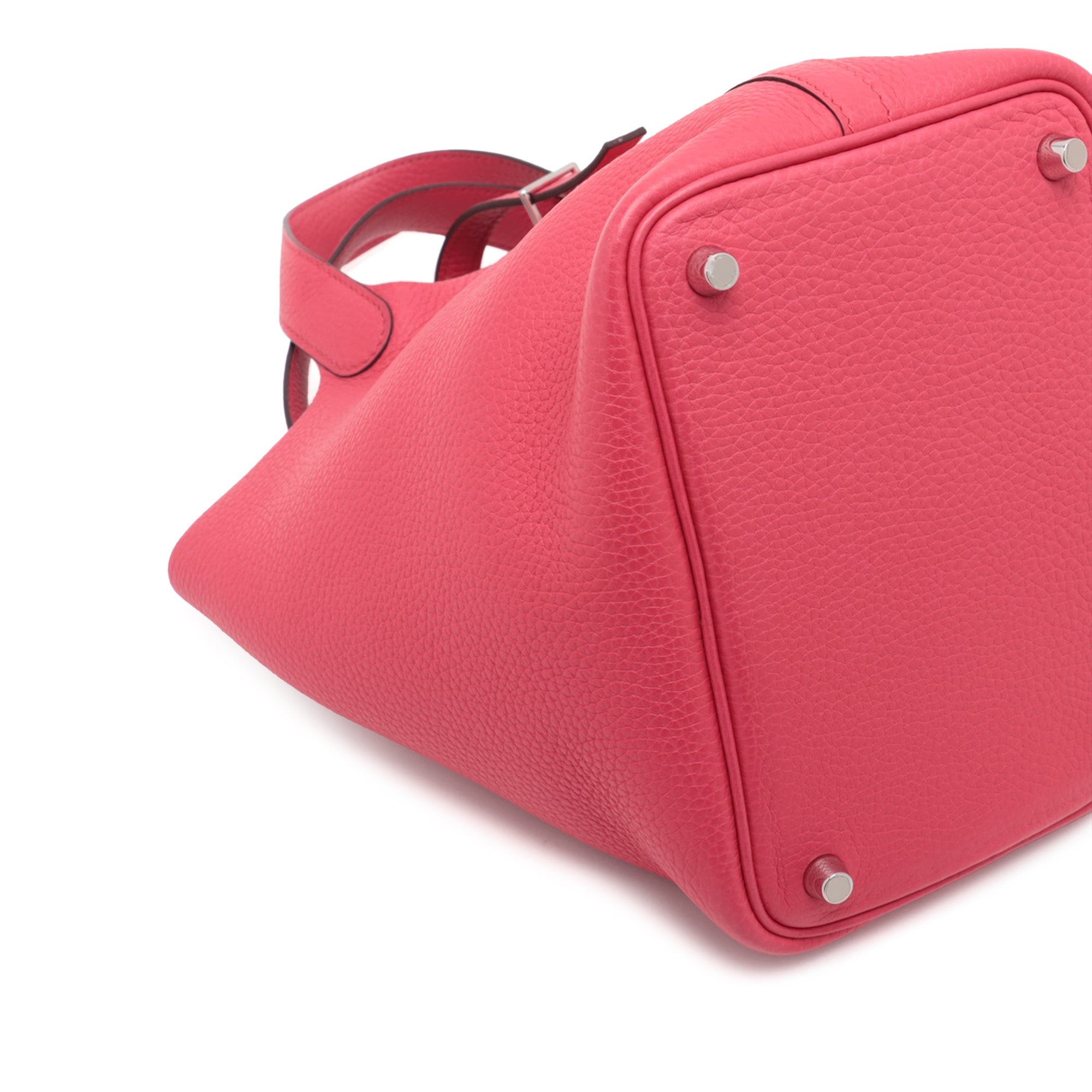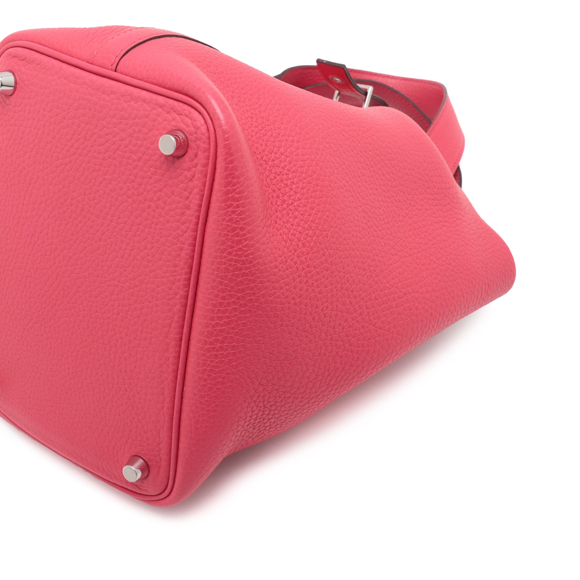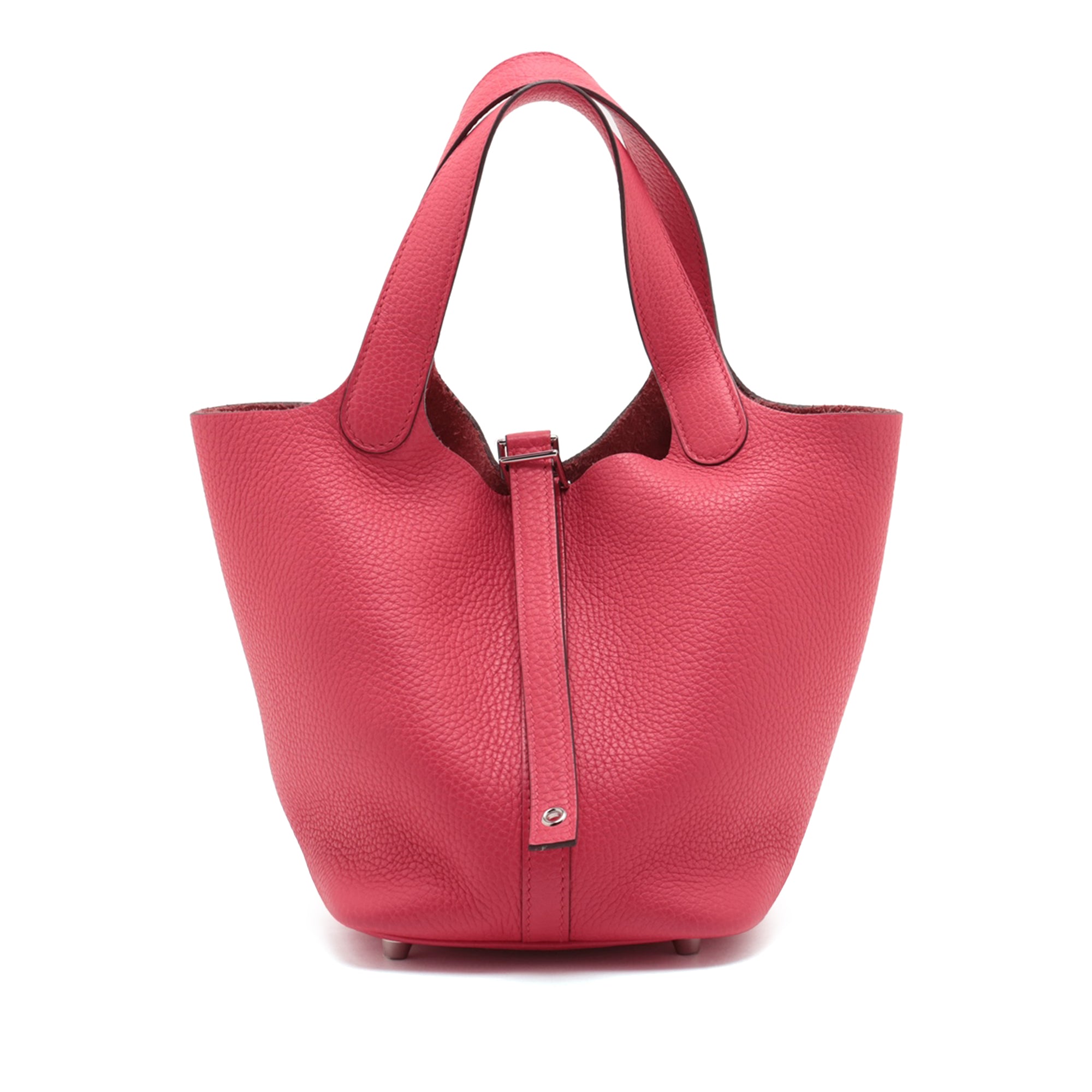This Picotin Lock 18 features a Clemence leather body, flat leather handles, and an open top with a pull through strap and lock closure. Retail Price: 3853.00
